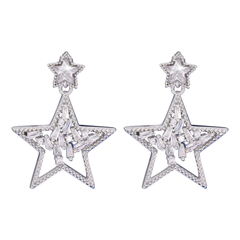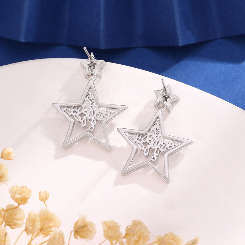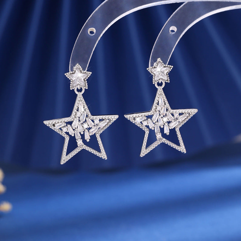 Micro Inlaid Zircon Hollow Pentagram Stud Earrings For Women