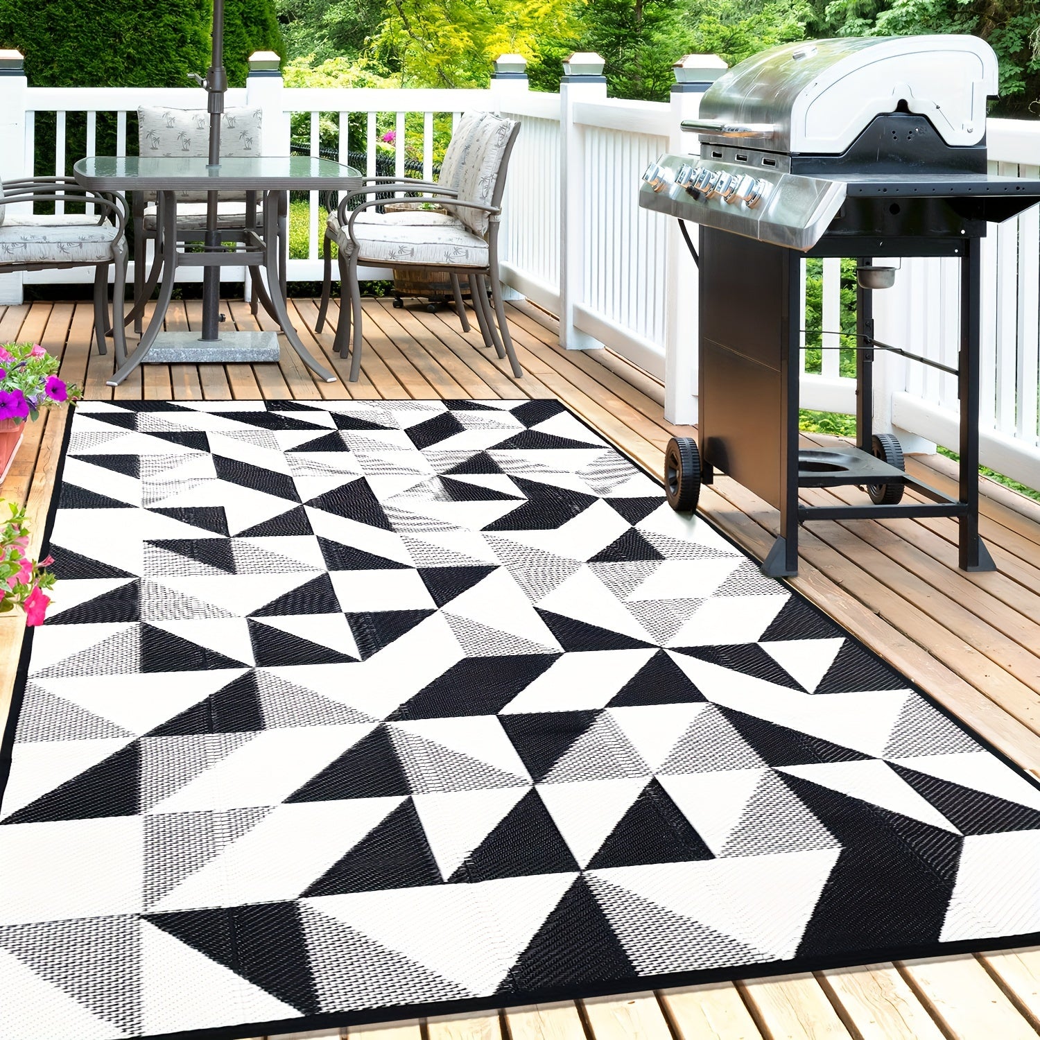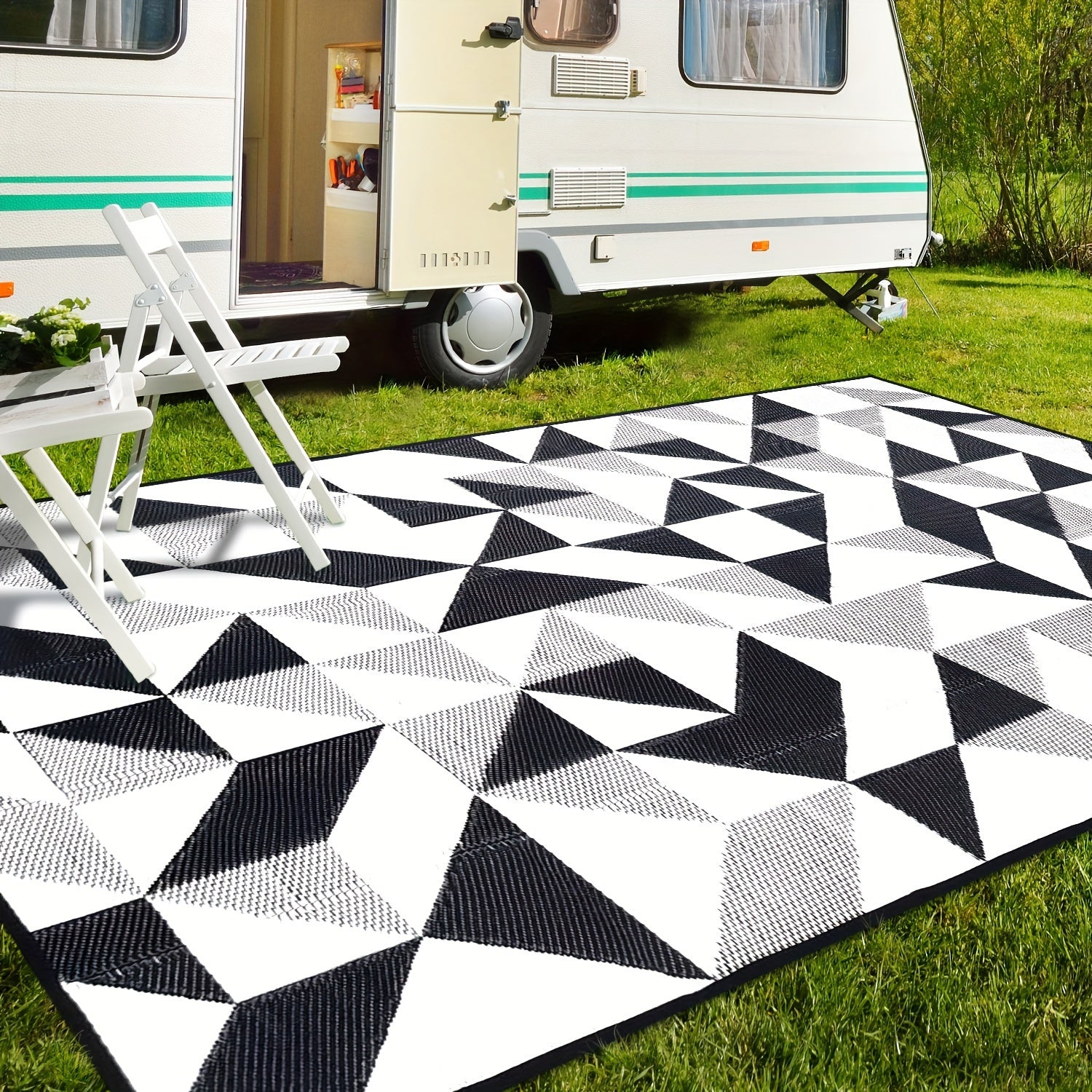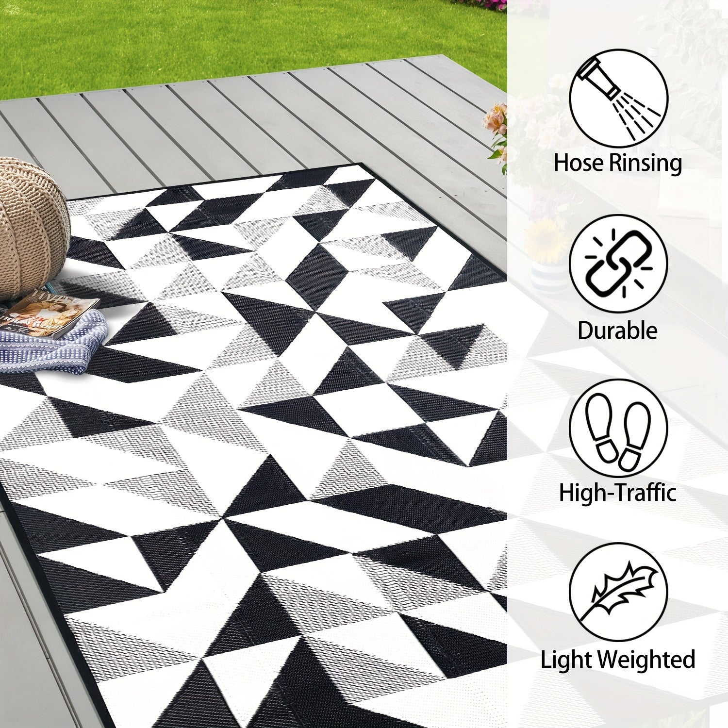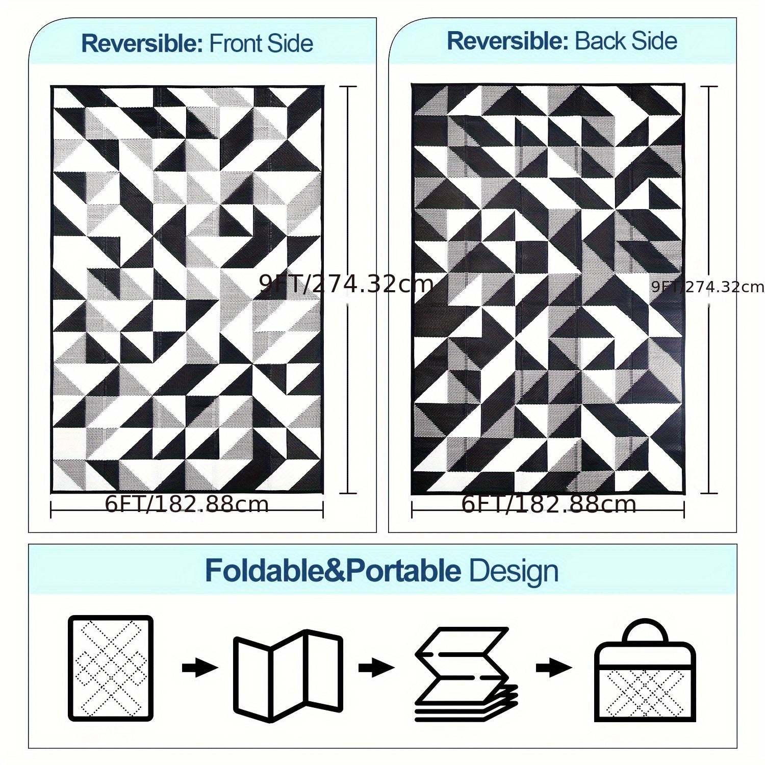 Outdoor Rug Mat For Patio, 6x9ft Waterproof Reversible Plastic Straw Rugs, Camping Carpet Area Mats For RV, Porch, Deck, Backyard, Balcony, Camper, Trailer, Black & White