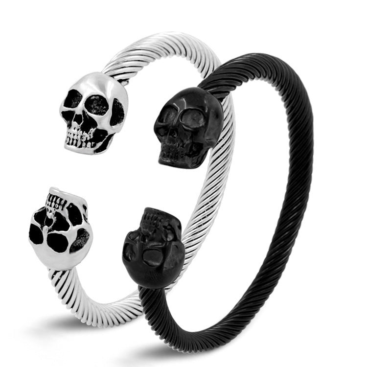 Skull Head Titanium Steel Bracelet Retro Steel Wire Rope Bracelet With Accessories