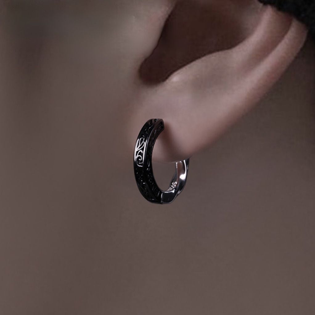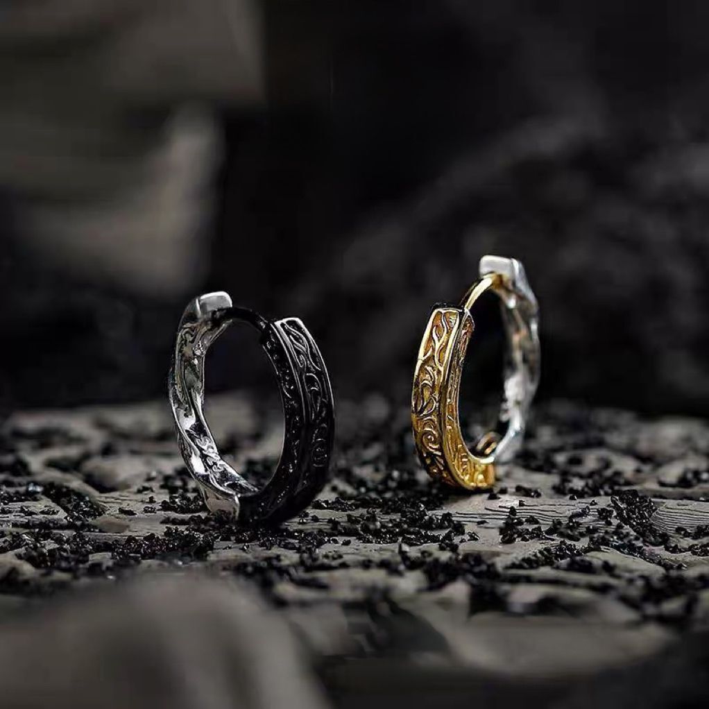 Tangcao Pattern Earrings Men's Niche Asymmetric