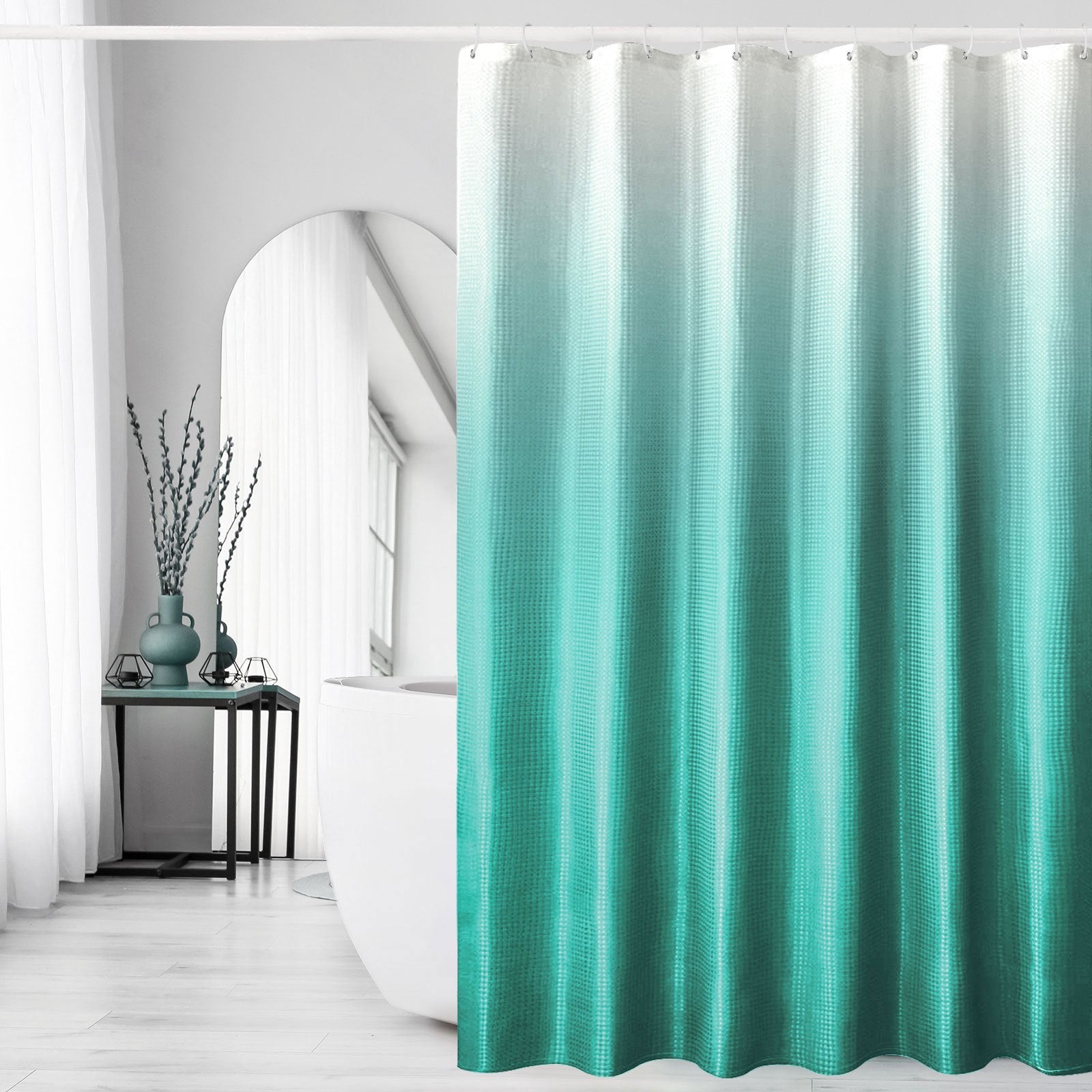 Waffle Weave Ombre Fabric Shower Curtain for Bathroom, Colorful Washable Cloth Bathroom Curtains Shower Set with Hooks