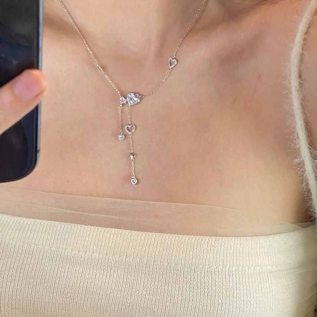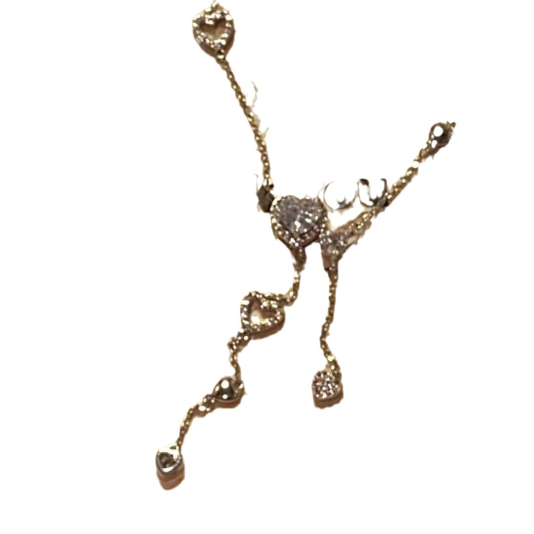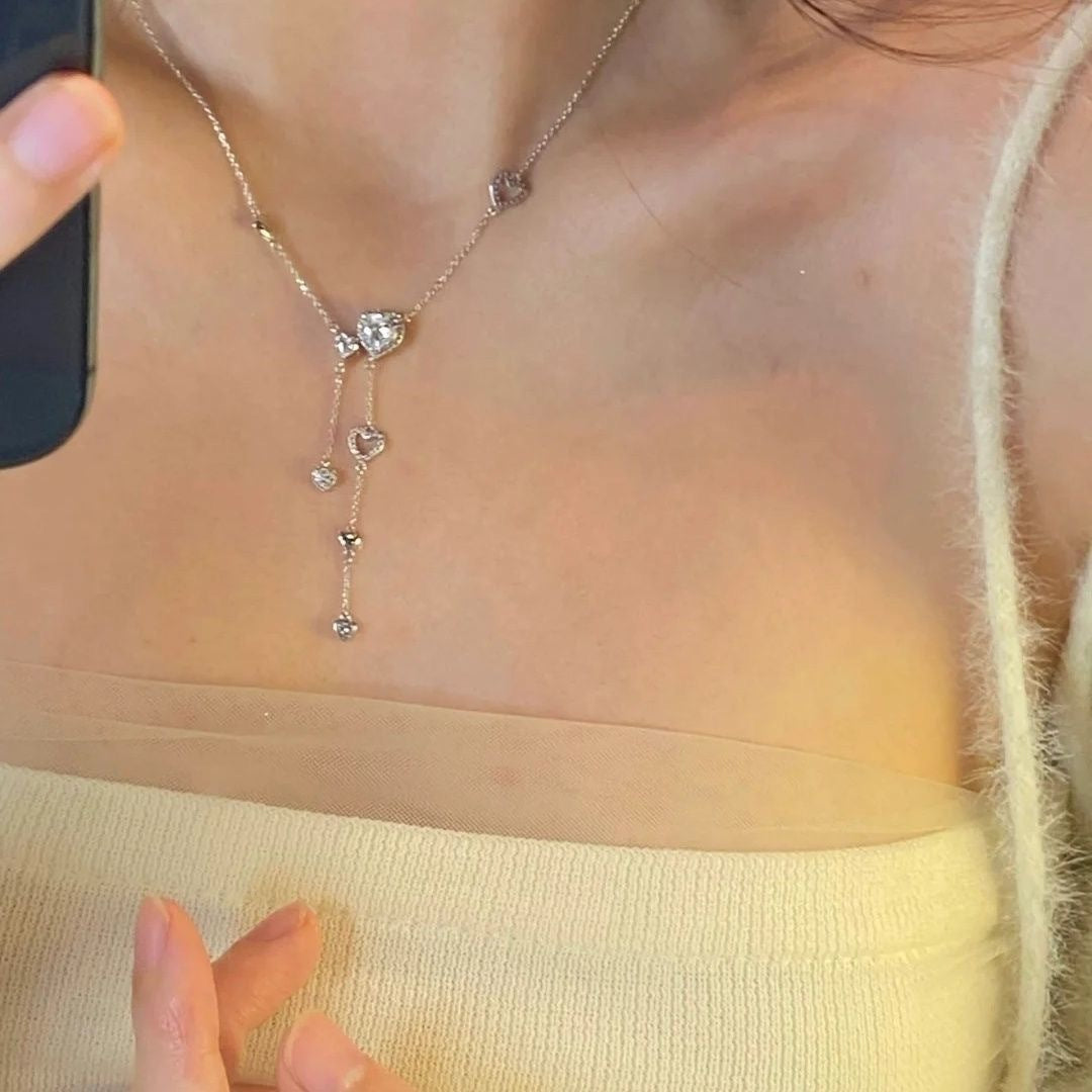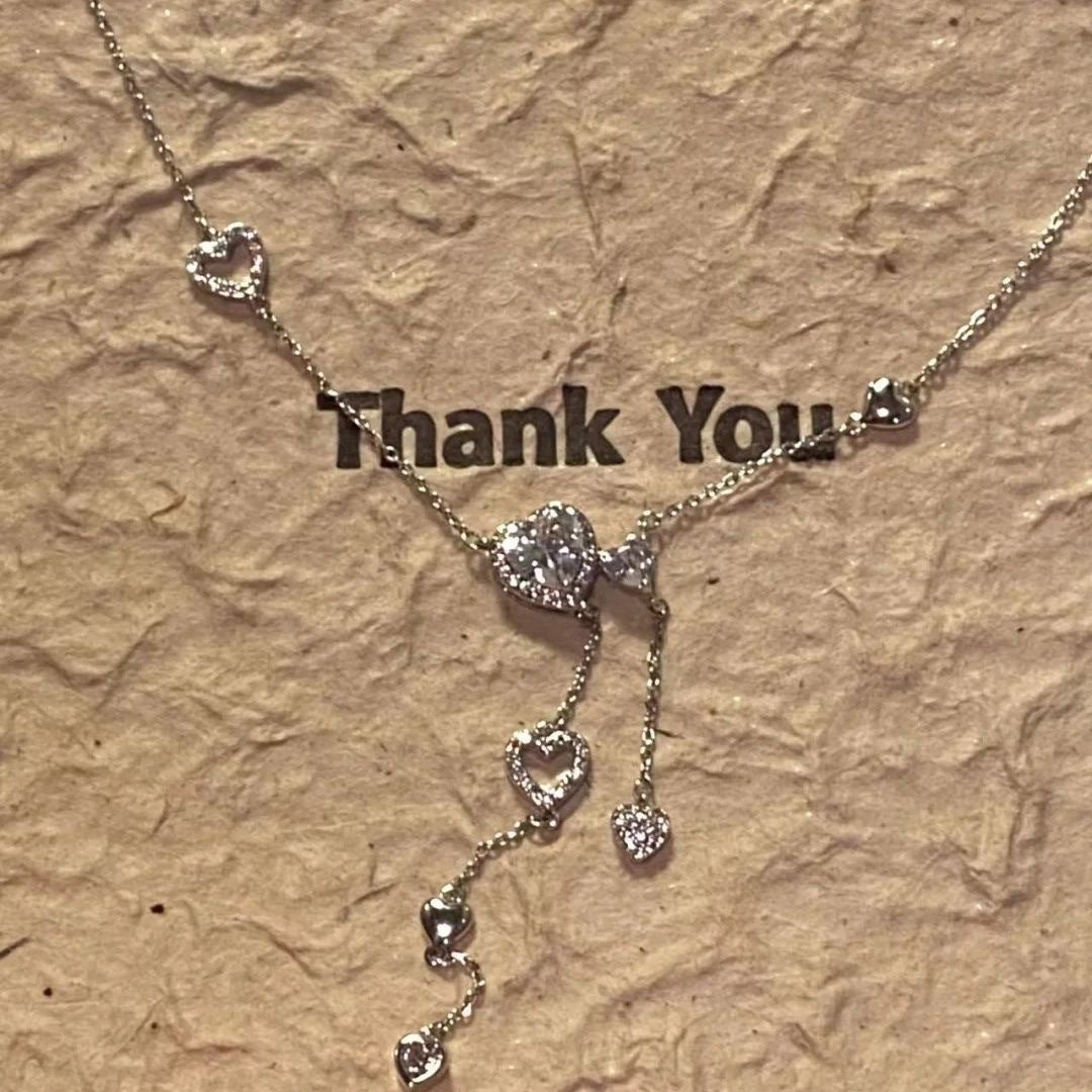 Color: 4658 heart-shaped full diamond tassel necklace