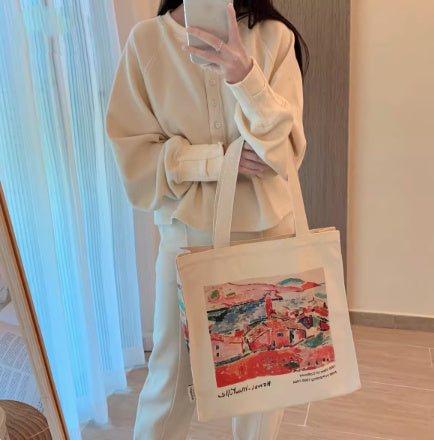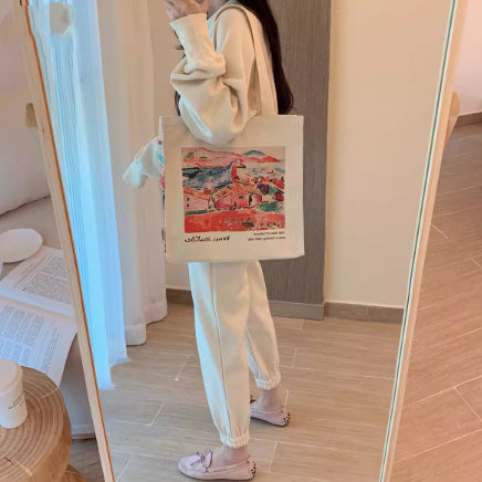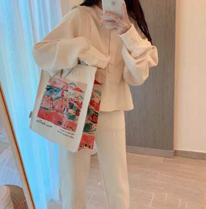 Male And Female Students Canvas Shoulder Tote Bag