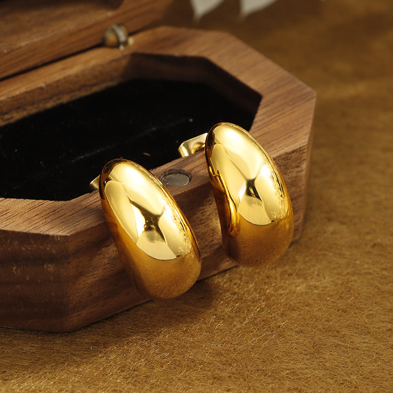 Crescent Glossy Water Drop Ear Studs Female Titanium Steel