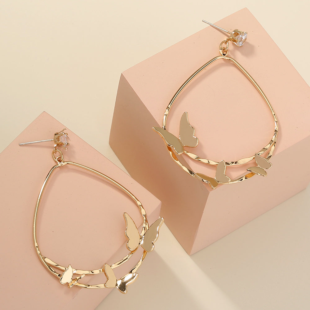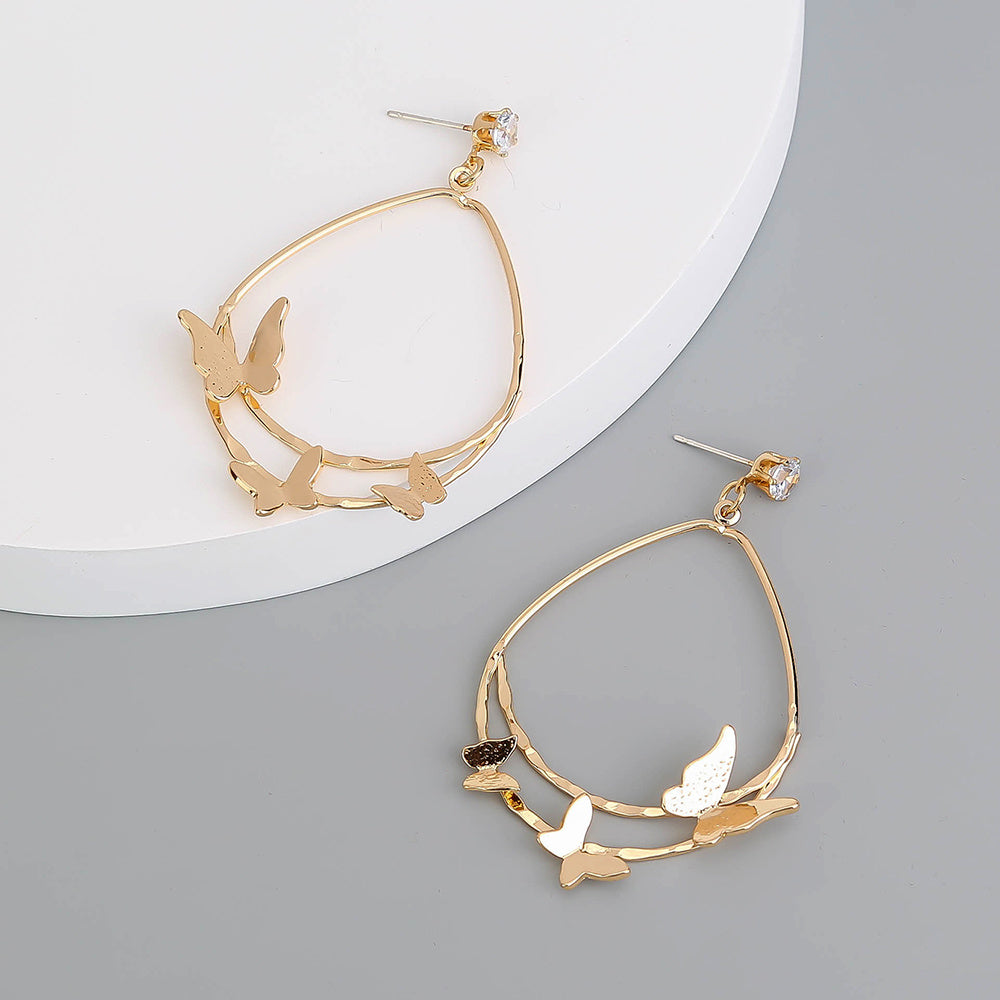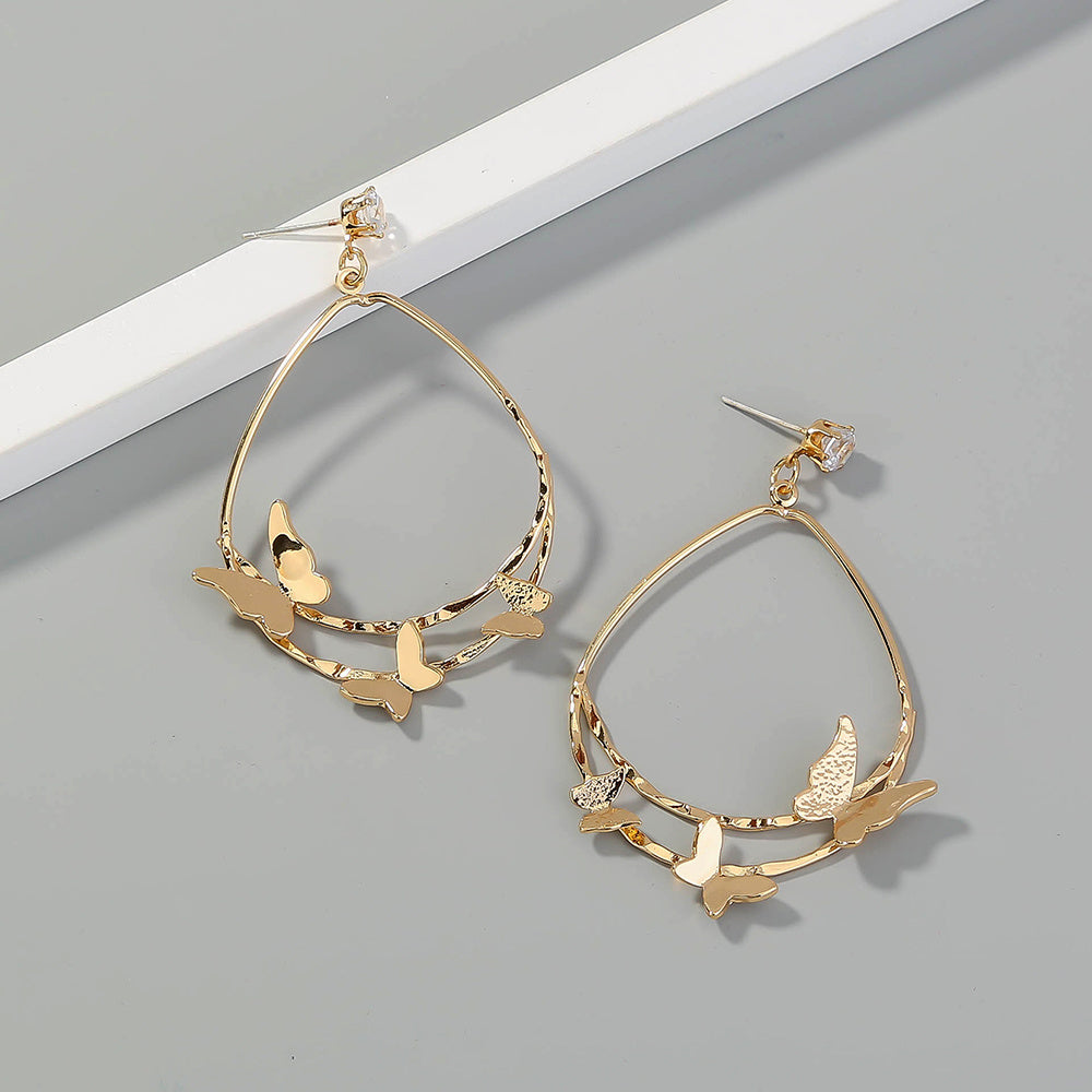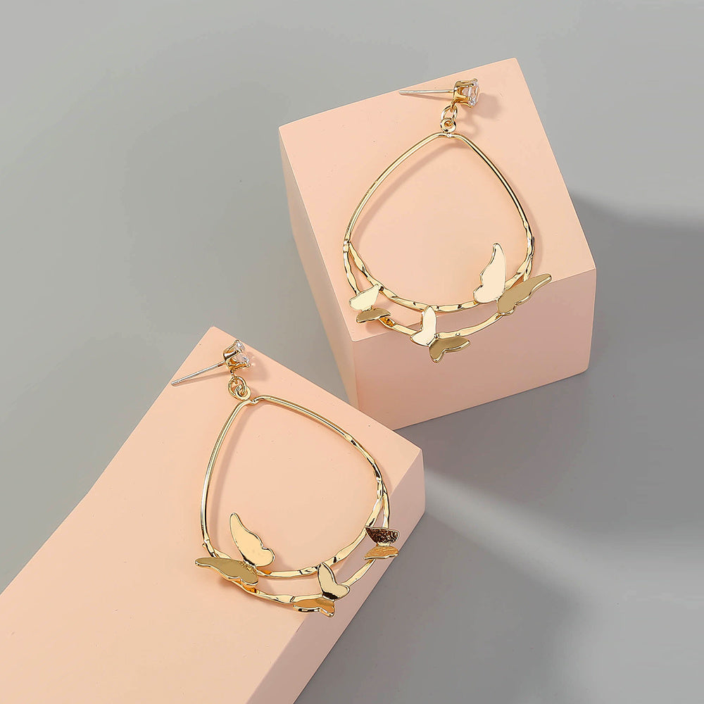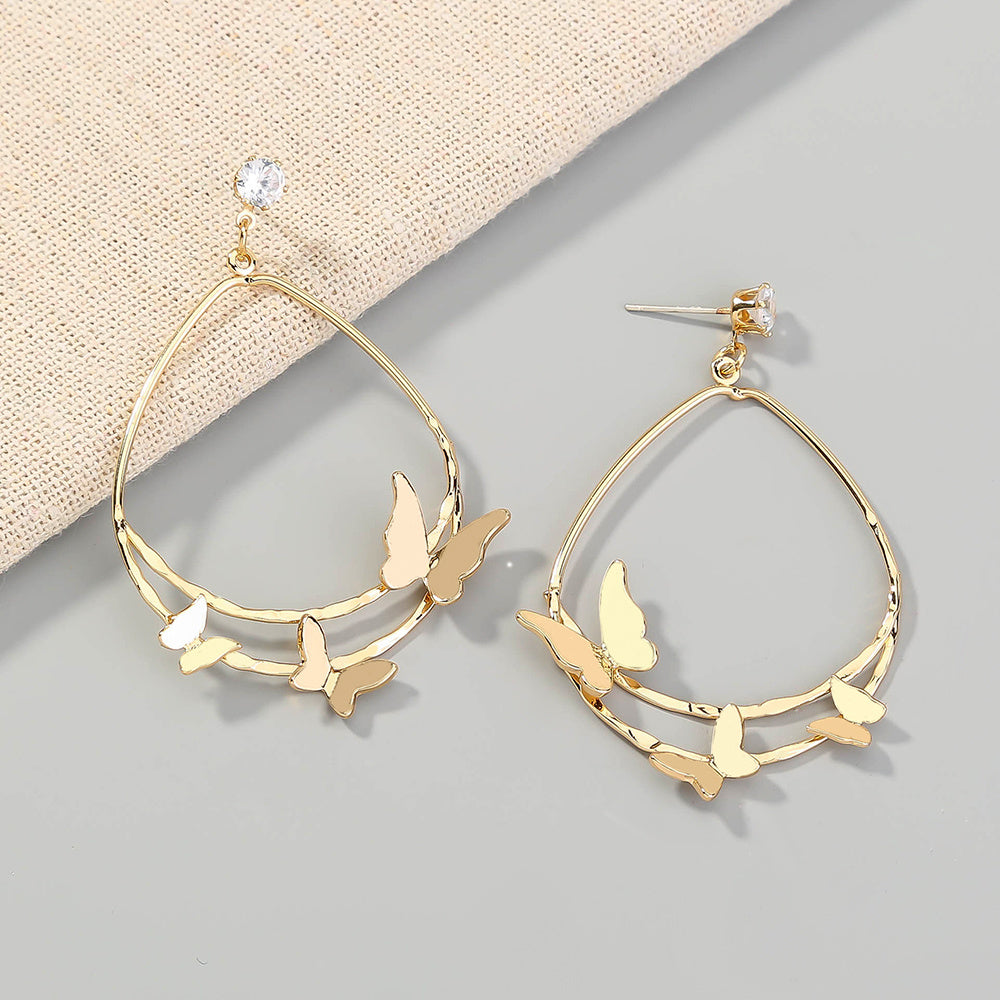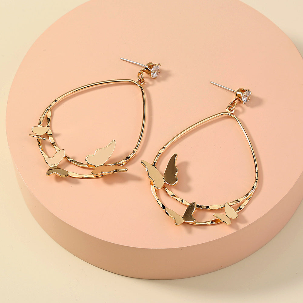 Fashionable metal double drop-shaped multiple butterfly earrings temperament earrings earrings