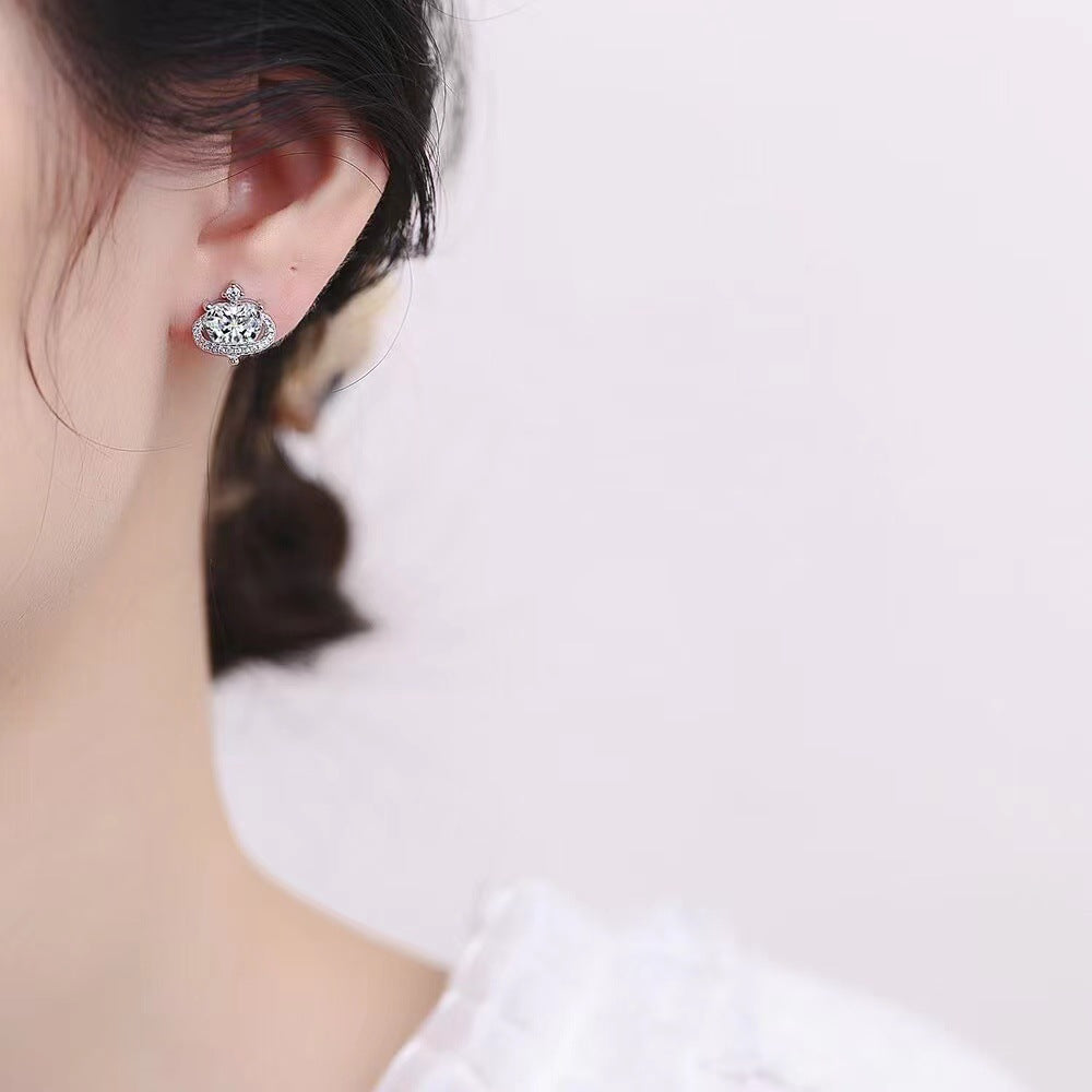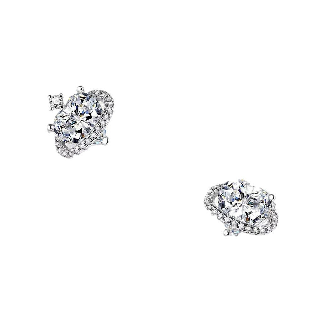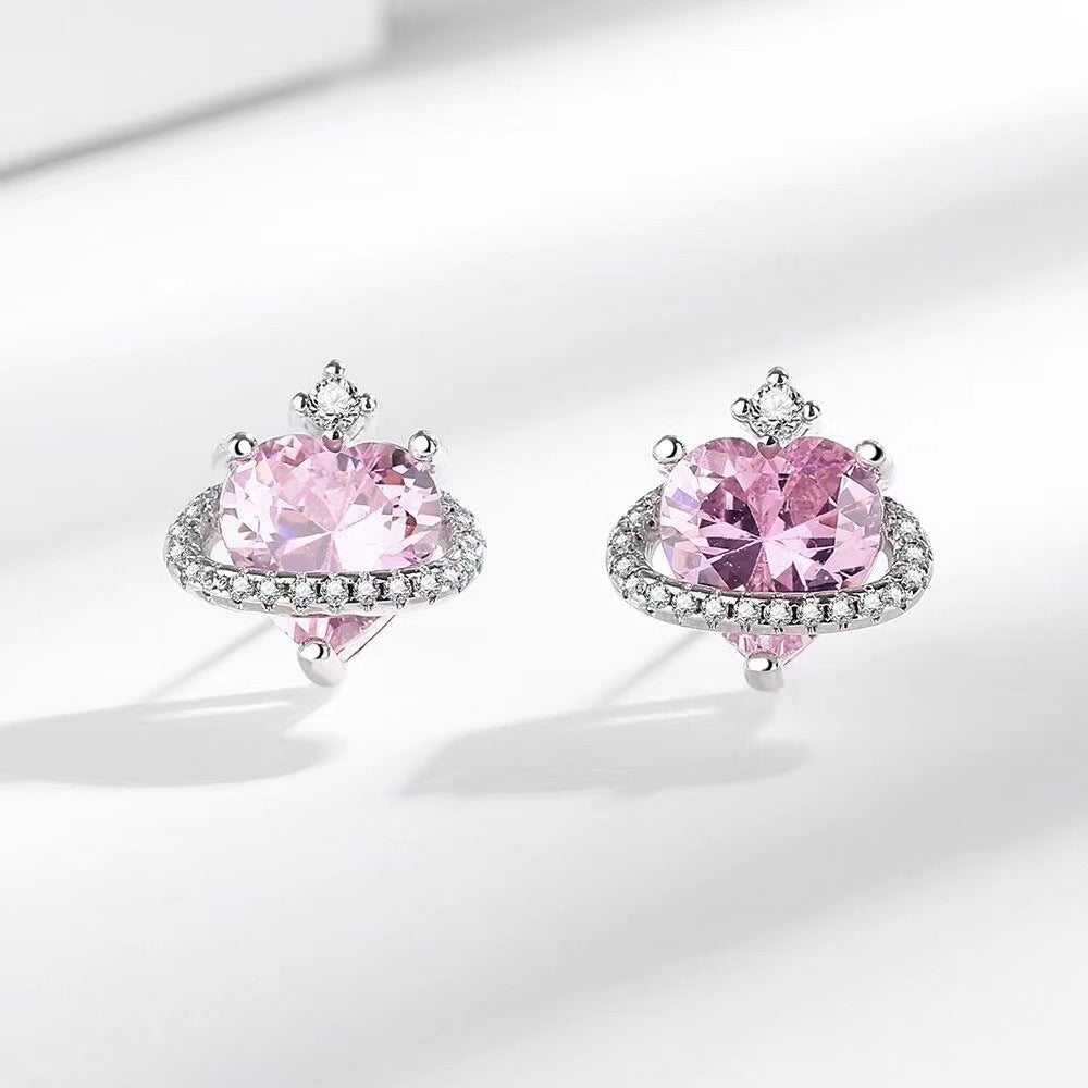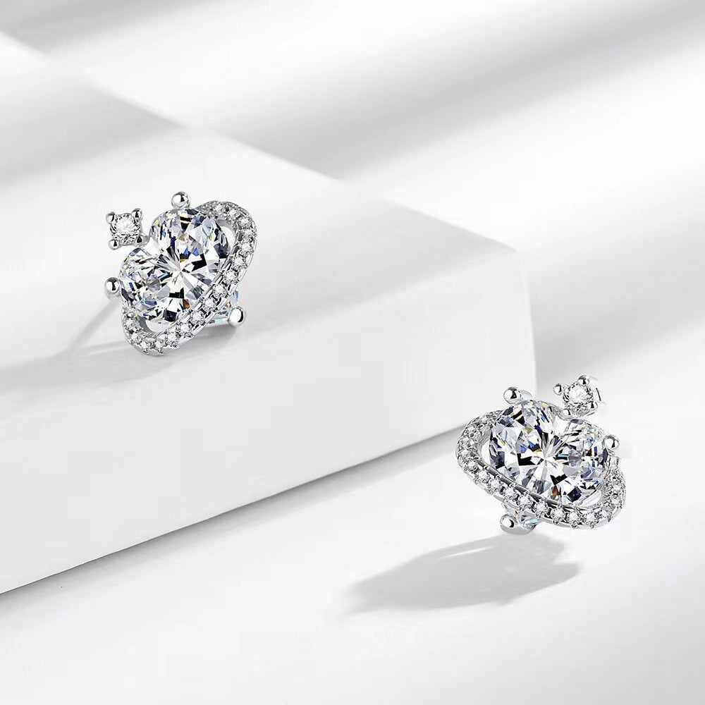 Heart Shape With Diamond Women's Zircon Earrings Silver Plated