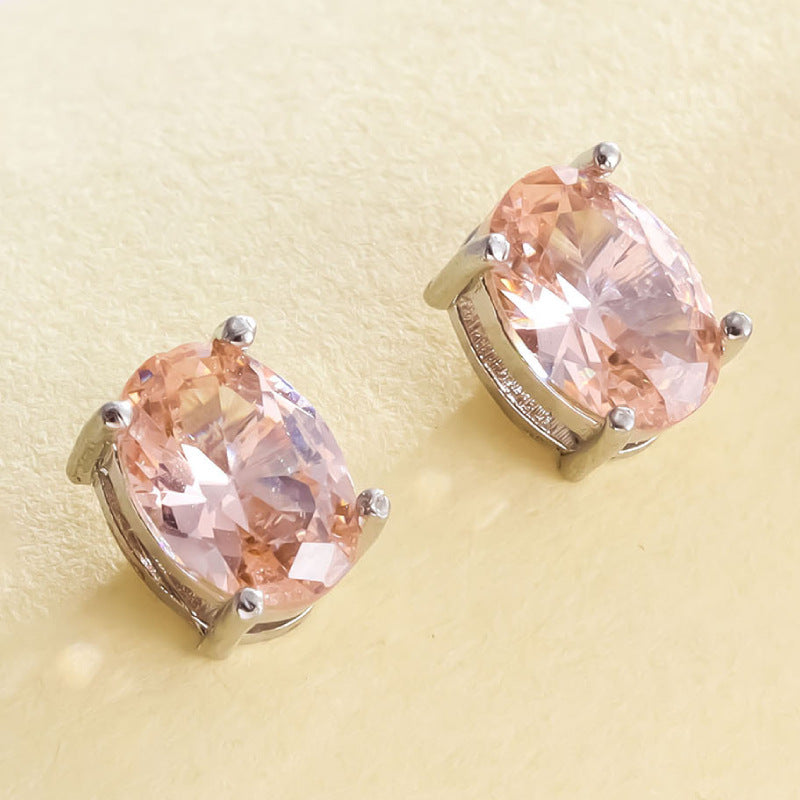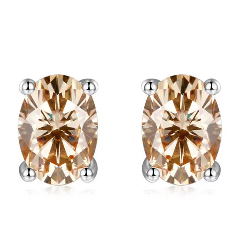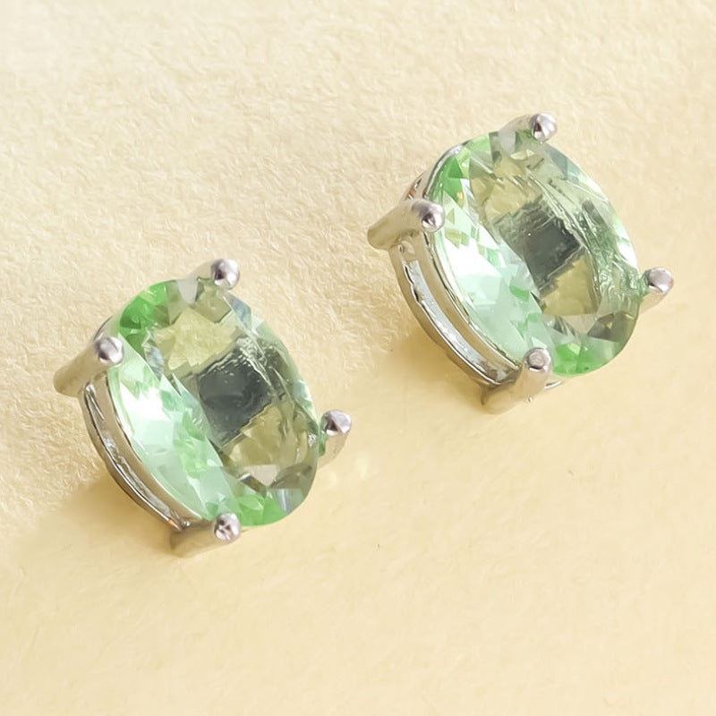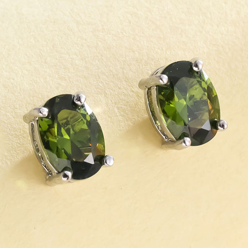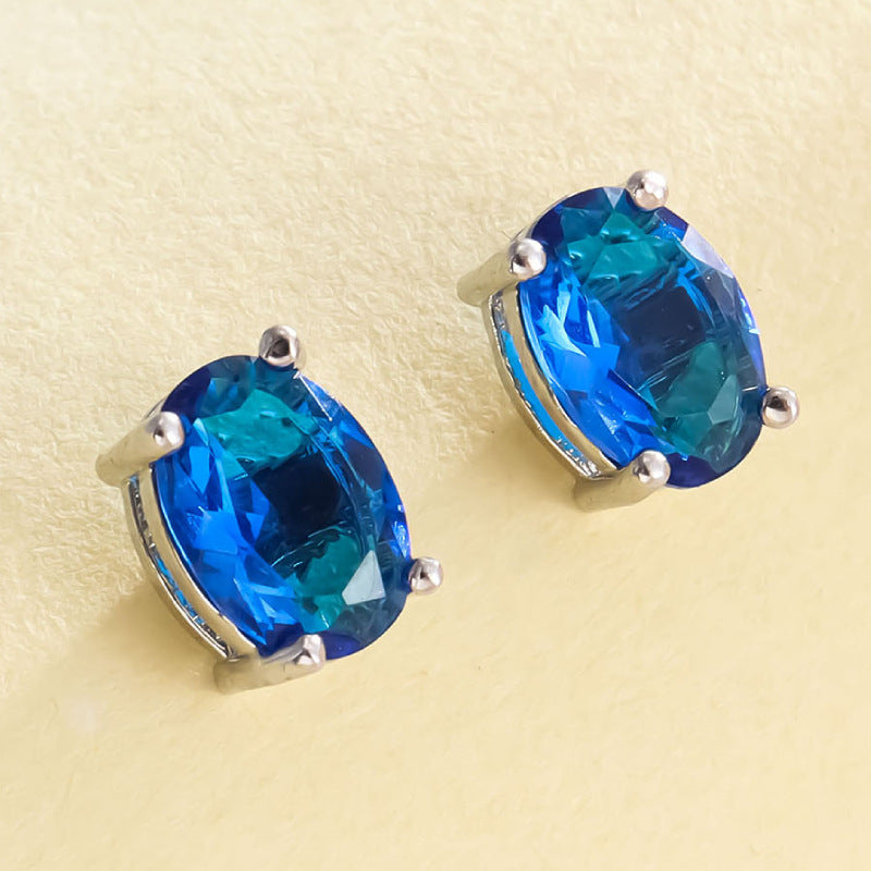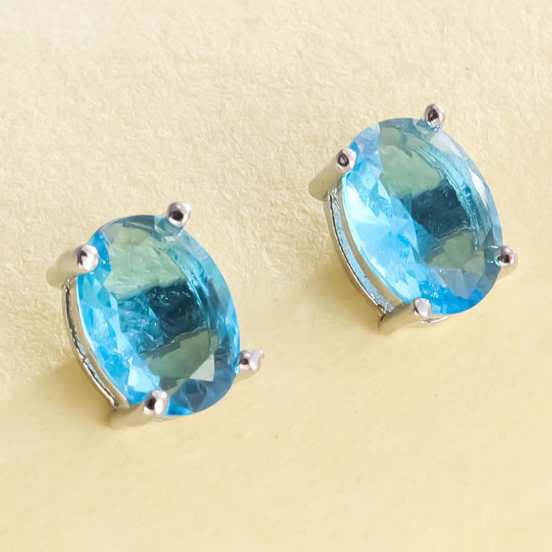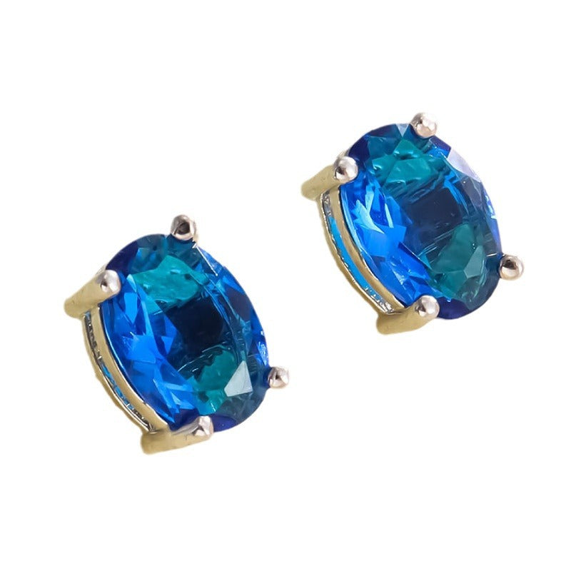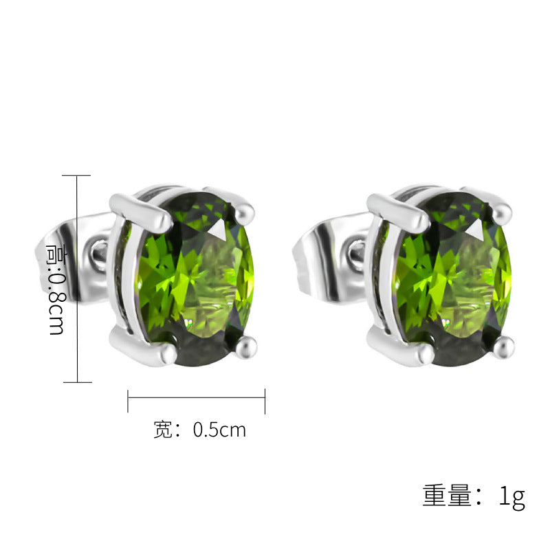 Color: oval white K four claw stud earrings-dark blue, oval white K four claw stud earrings-apple green, oval white K four claw stud earrings-light blue, oval white K four claw stud earrings-Rose Red, oval White K Four-claw stud earrings-olive green, oval white K Four-claw stud earrings-Champagne