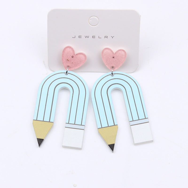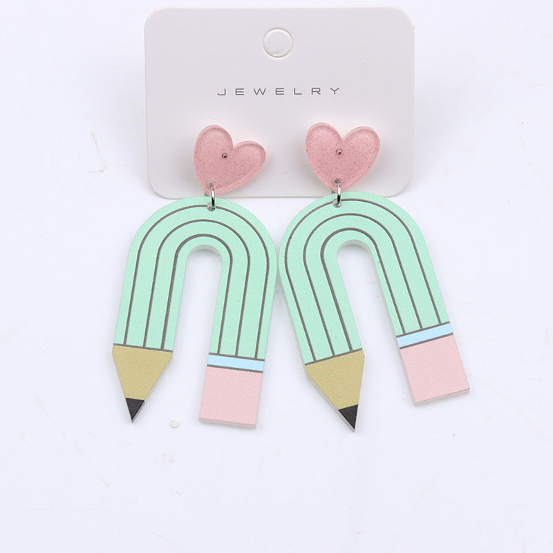 Printing Color Contrast Pencil Stud Earrings Acrylic Earrings