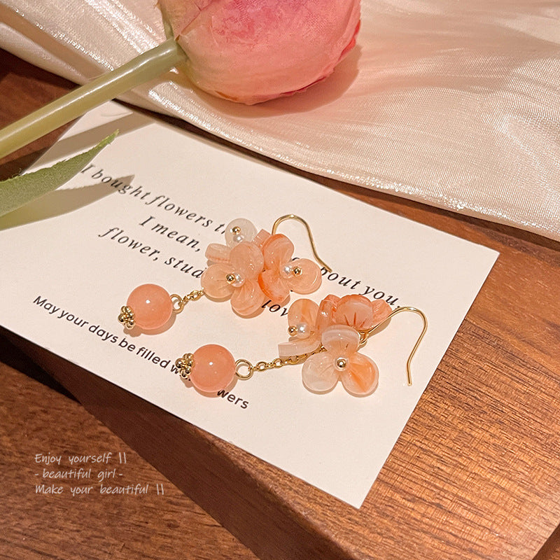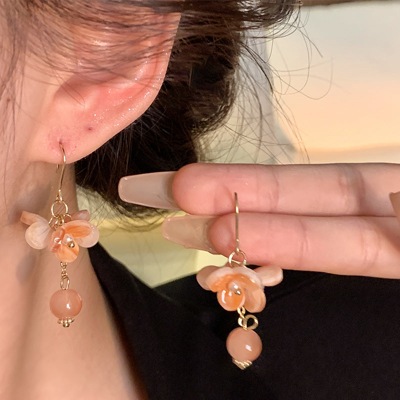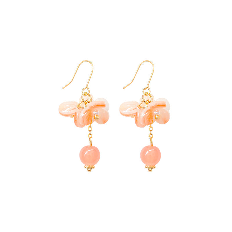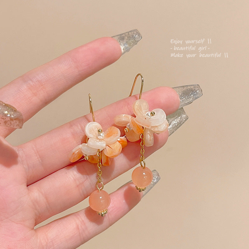 Silver Needle Vibrant Orange Bowl Flower Earrings Women's Retro