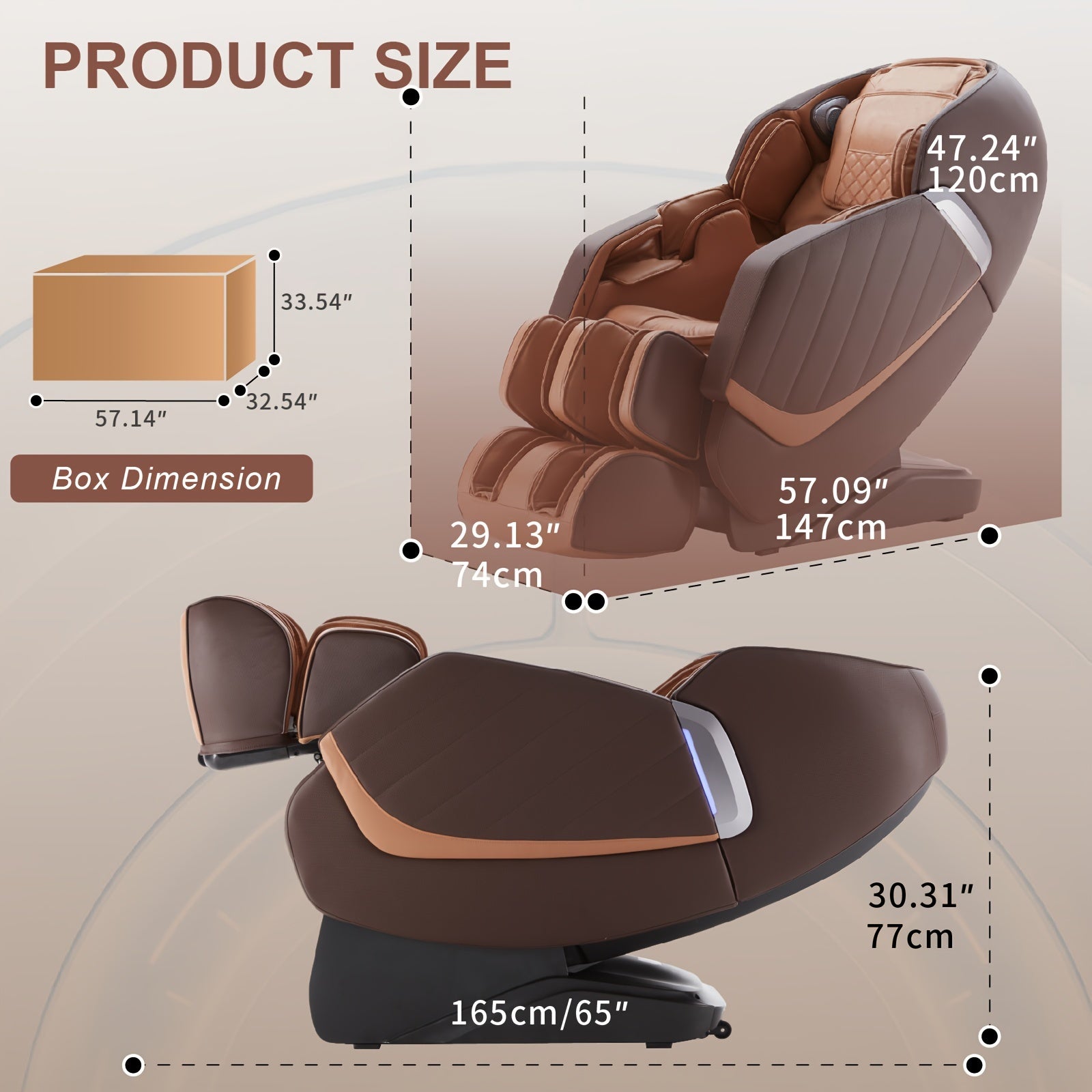 Brand:MeitFith Color:302-brown 302-Brown Product Dimensions:52"D X 24"W X 28"H Size :Large Special Feature:Arm Rest, Ergonomic, Heated, Rolling, Head Support Product Care Instructions:Wipe Clean Unit Count:1.0 Count Recommended :Uses For Product Relaxing Room Type:Office, Bedroom, Living Room, Library, Included Components:Caster Shape:S-Shape Surface Recommendation:Hard Floor Indoor/Outdoor Usage:Indoor Seat Depth:19 Inches Seat Length:19.7 Inches Item Weight:175 Pounds Country Of Origin:China