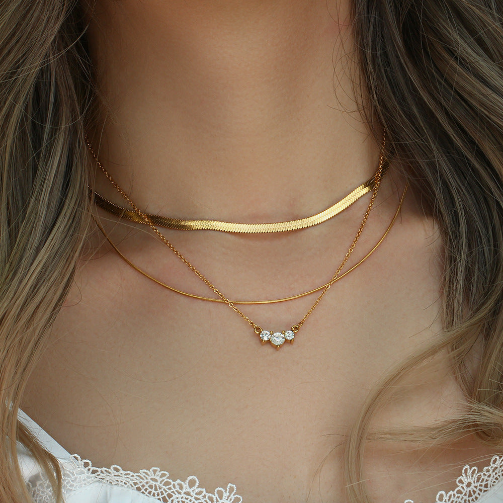 Color: three zircon petal pendant necklace