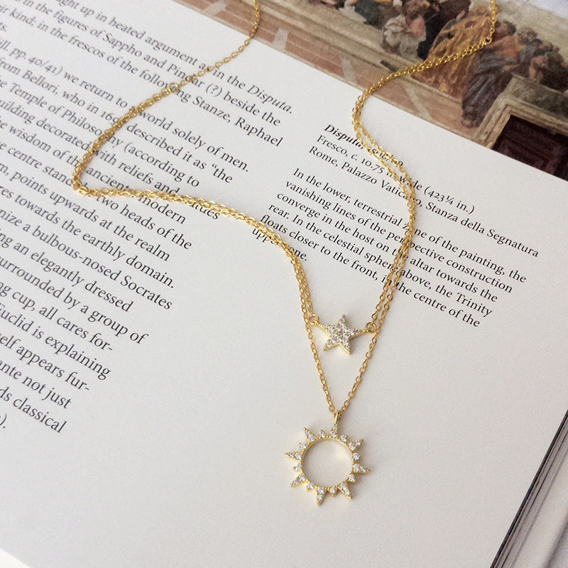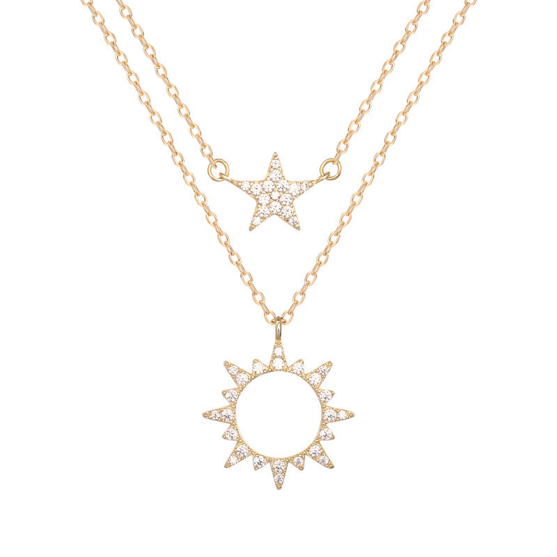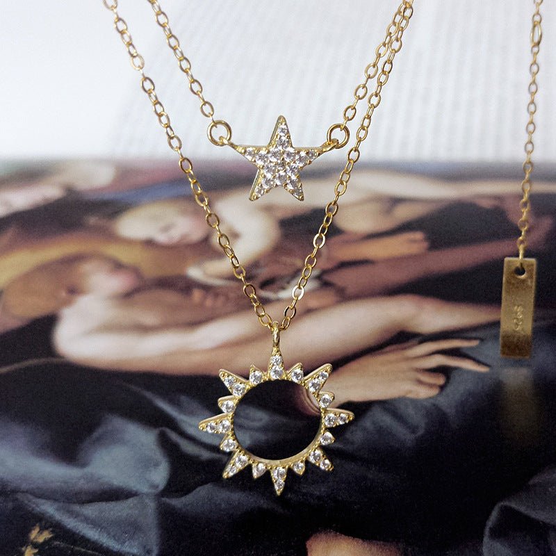 S925 Silver Double Layered Necklace Female Star Sun Necklace