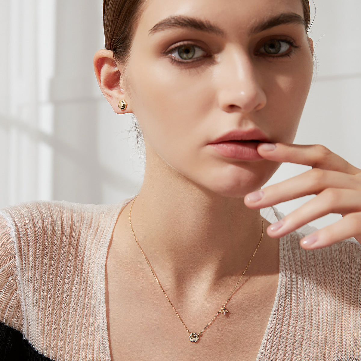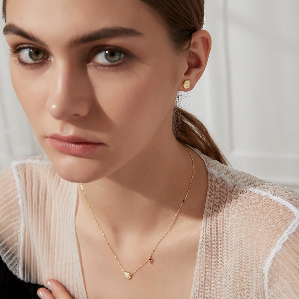 Silver Zircon Pendant Necklace Women Simple Hexagonal Diamond Necklace