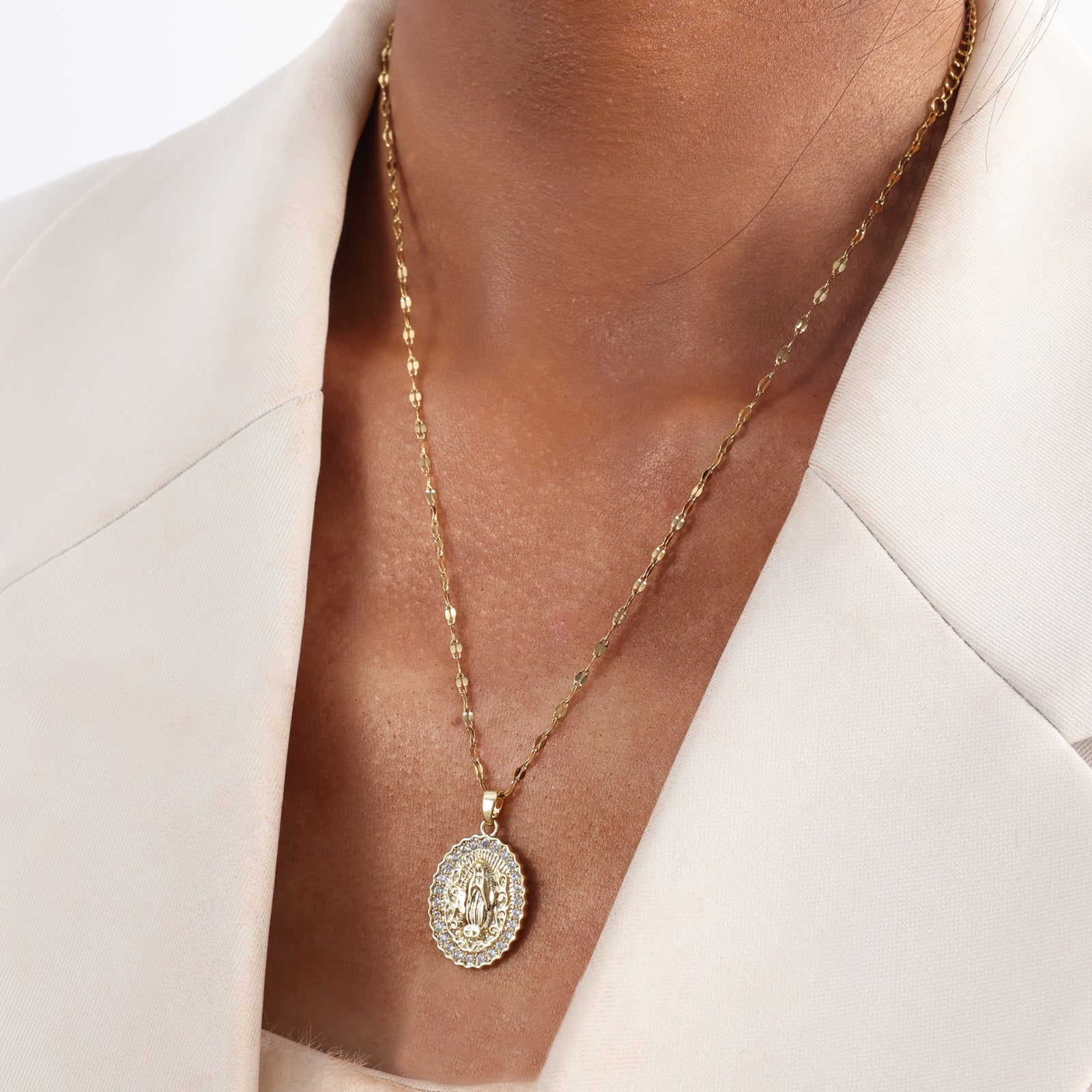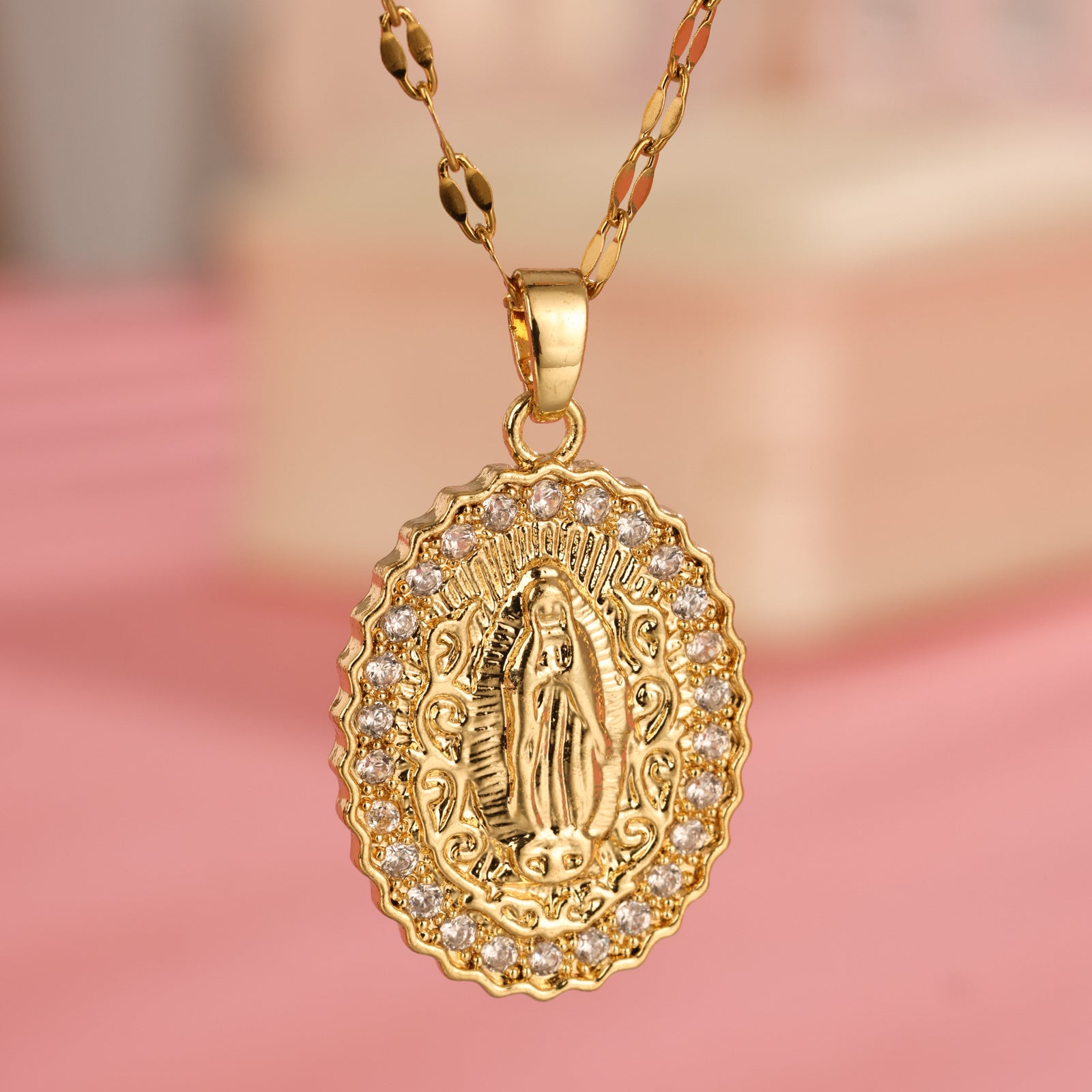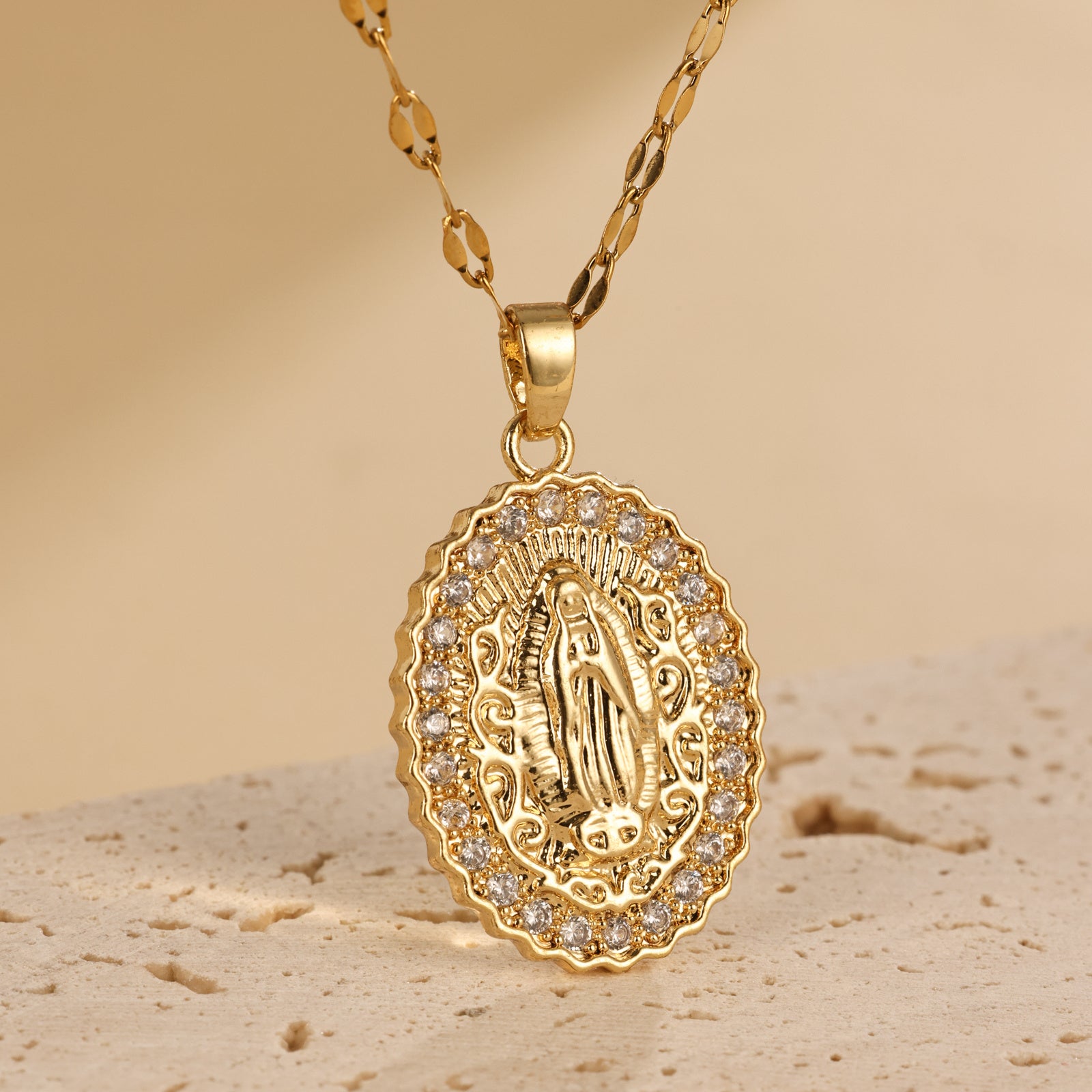 The European And American Oval Shaped Virgin Mary Pendant Necklace Exudes A Light Luxury And Niche Design Sense
