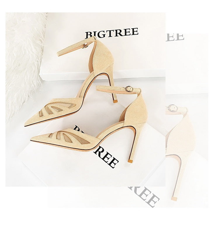 Low-cut Pointed Toe Nightclub Mesh Hollow-out Strap Sandals