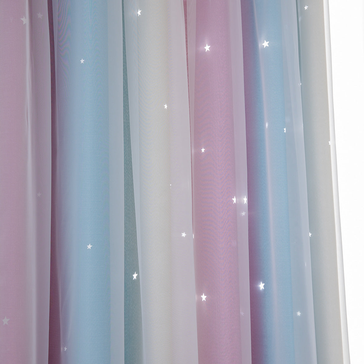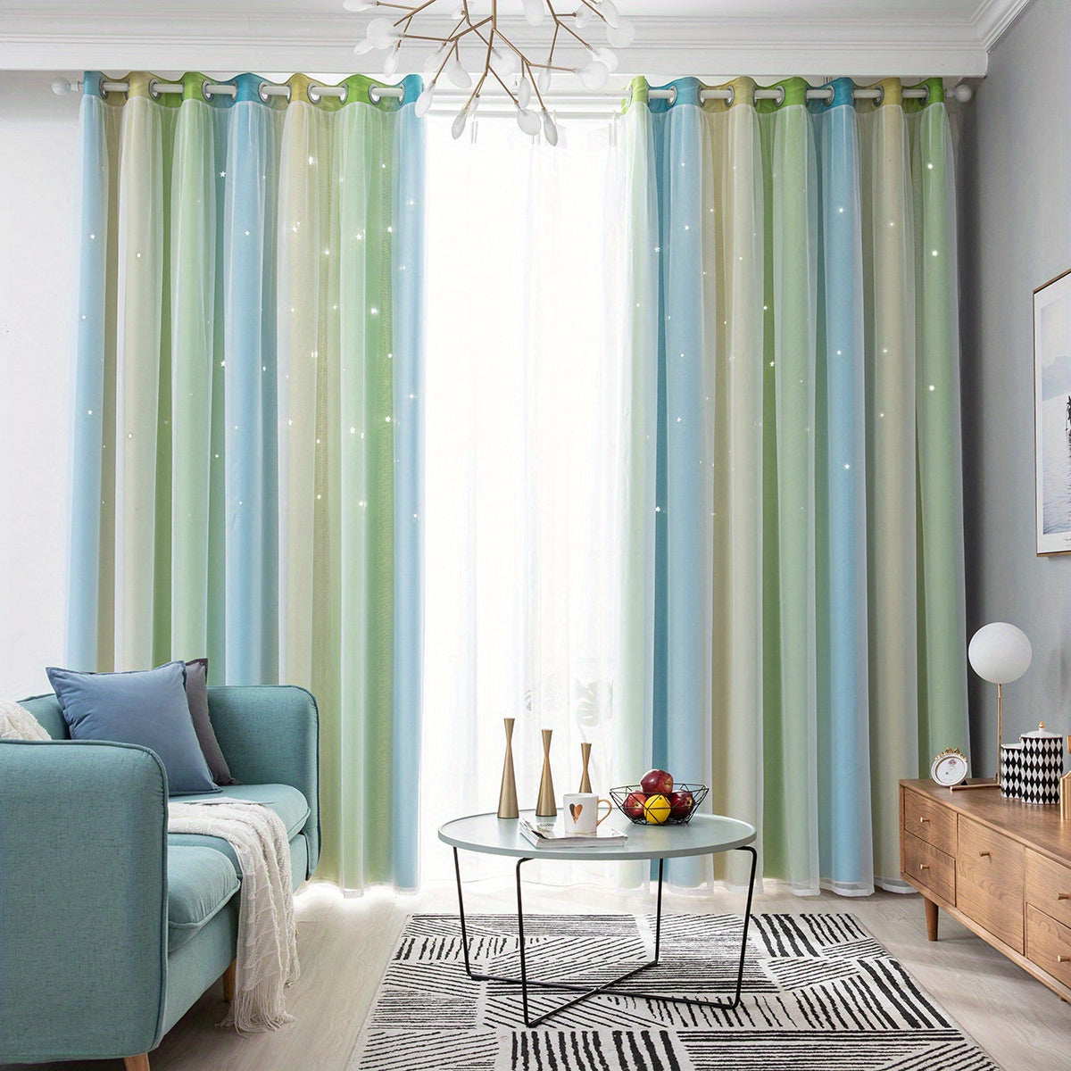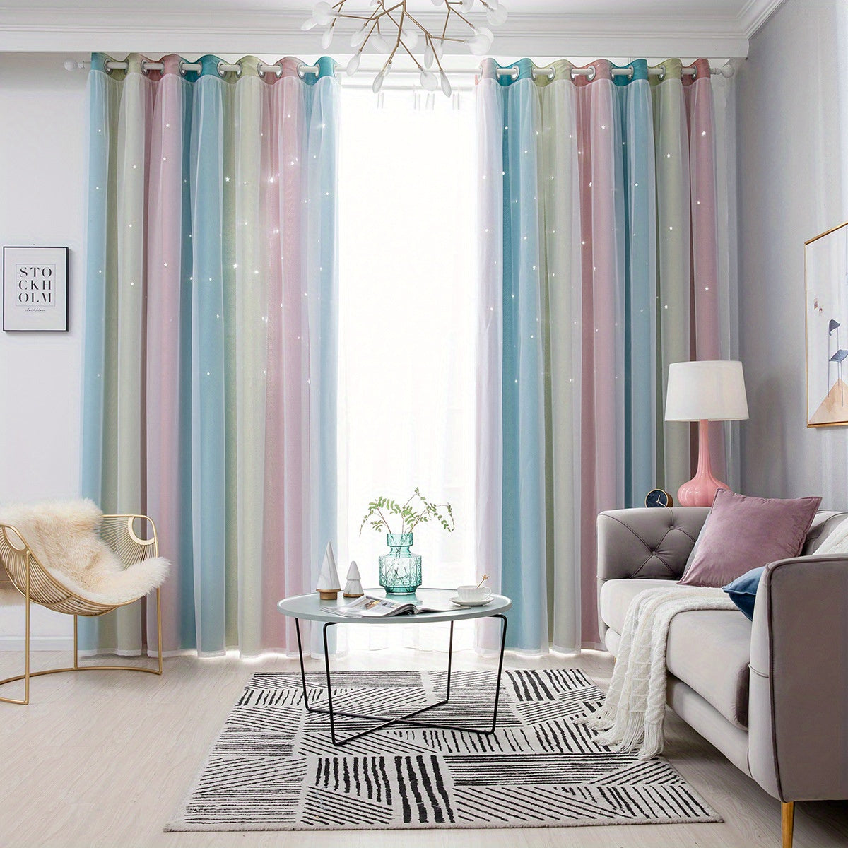 Decorative Curtains: Modern Room Decor Gradient Grey Pink Bedroom Rainbow Curtain Sheer Tulle Lined Curtain Hollow Star Design Perfect Bedroom Decor Curtain Living Room Kids Study Kids Room, Kitchen And Dining Room. This Curtain Panel Creates Magical Light And Shade That Your Family Will Love.