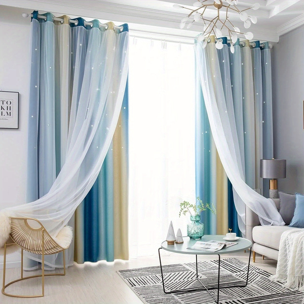 Decorative Curtains: Modern Room Decor Gradient Grey Pink Bedroom Rainbow Curtain Sheer Tulle Lined Curtain Hollow Star Design Perfect Bedroom Decor Curtain Living Room Kids Study Kids Room, Kitchen And Dining Room. This Curtain Panel Creates Magical Light And Shade That Your Family Will Love.