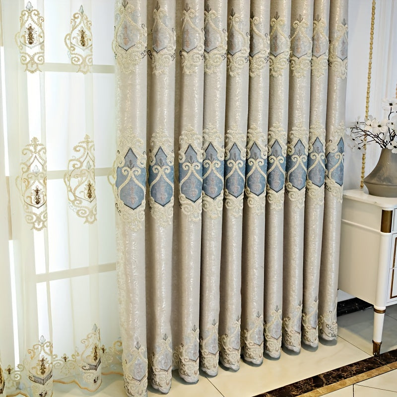 2-piece Set Of European-style Beige Two Curtains For Bedroom And Living Room, Royal Luxury Chenille Cloth Curtains, Frosted Nano Grommet Top Window Panel