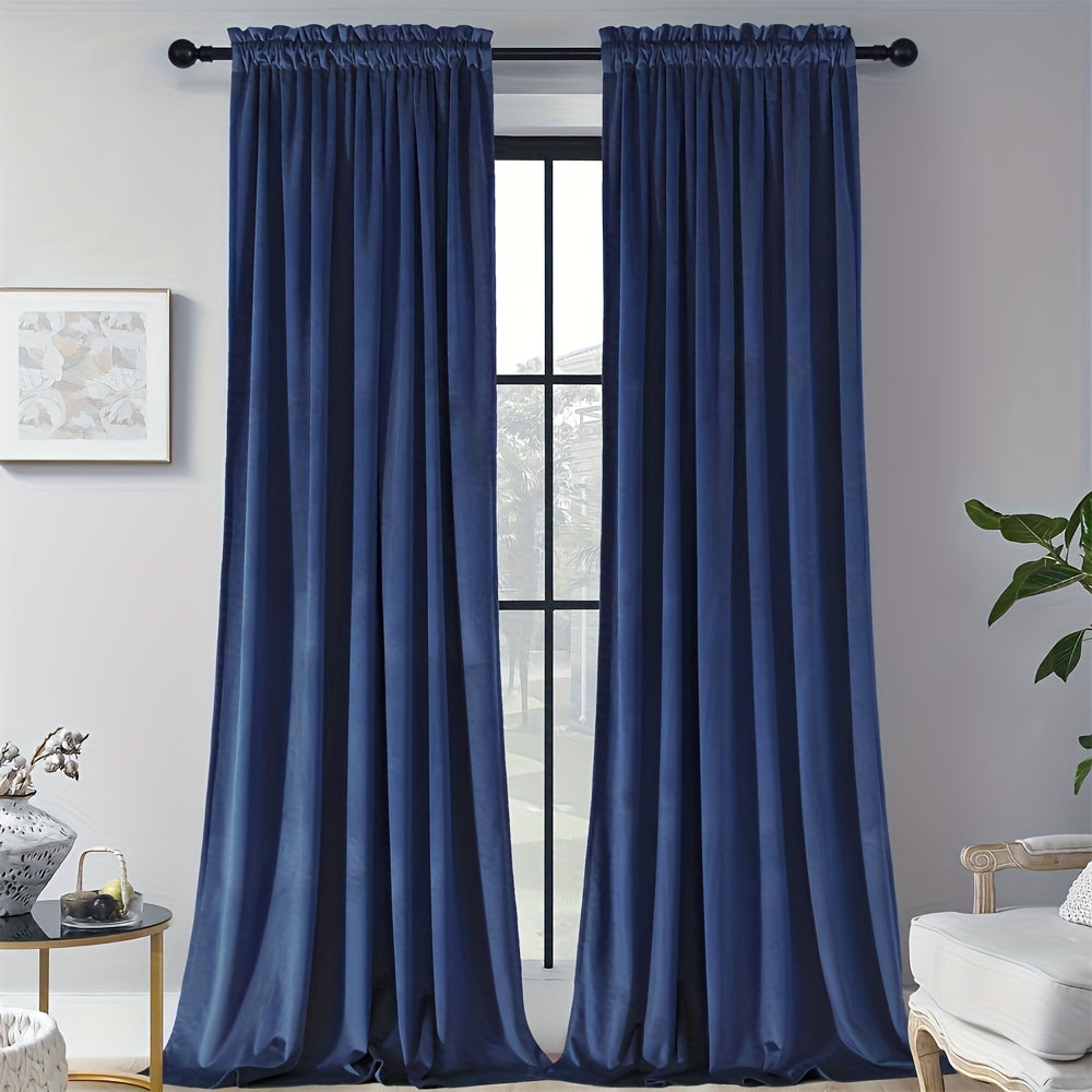 2-Piece Set Of Luxurious Super Soft Velvet Curtains - Elegant Heat Insulation For Cozy Bedrooms & Living Rooms With Stylish Rod Pocket Design
