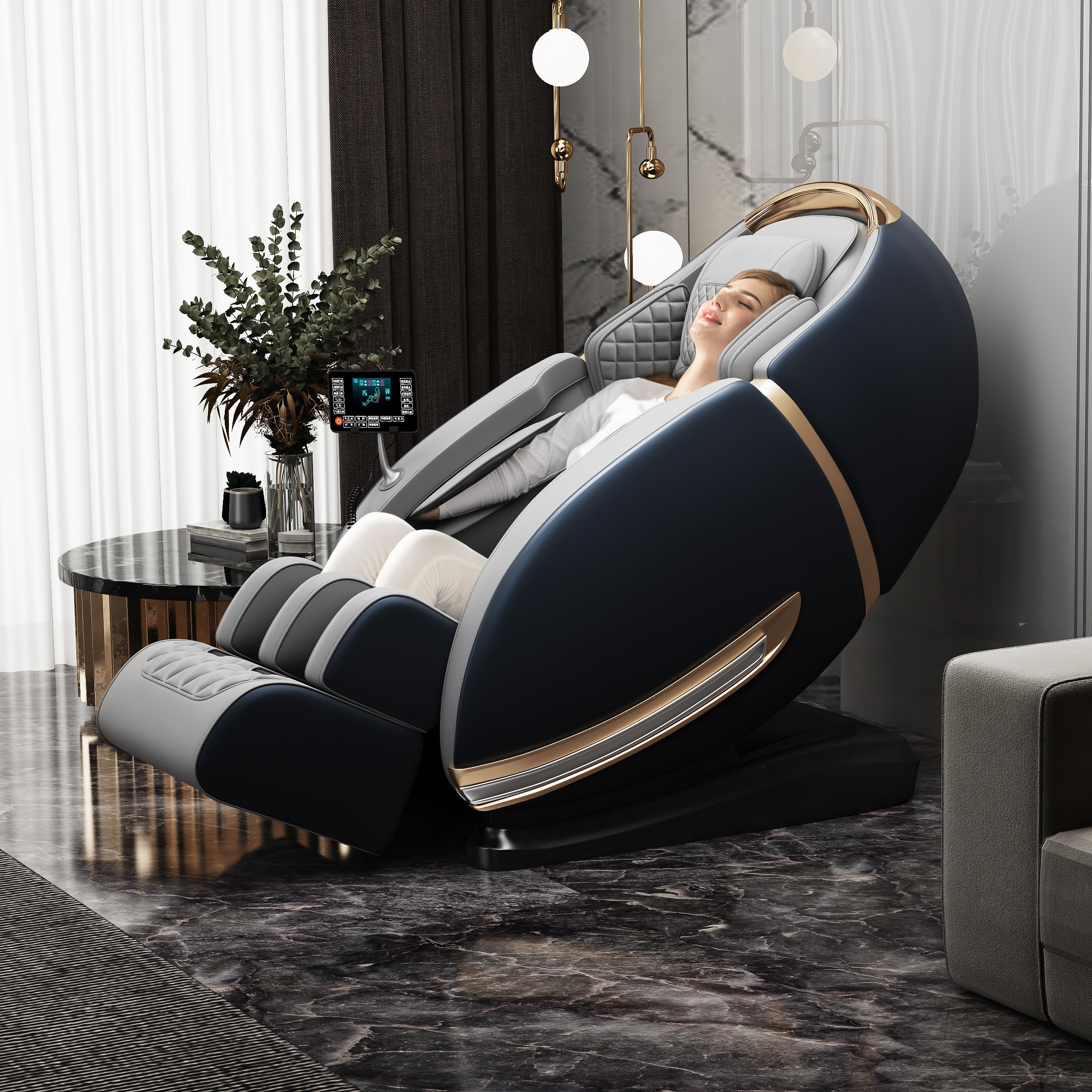 2024 Luxury 4D Full Body Massage Chair - Zero Gravity, SL Track, Deep Yoga Stretch, Foot Rollers, Waist Heating, AI Voice Control, LCD Screen - Perfect for Home, Office, and Gift Giving (Blue Gray)