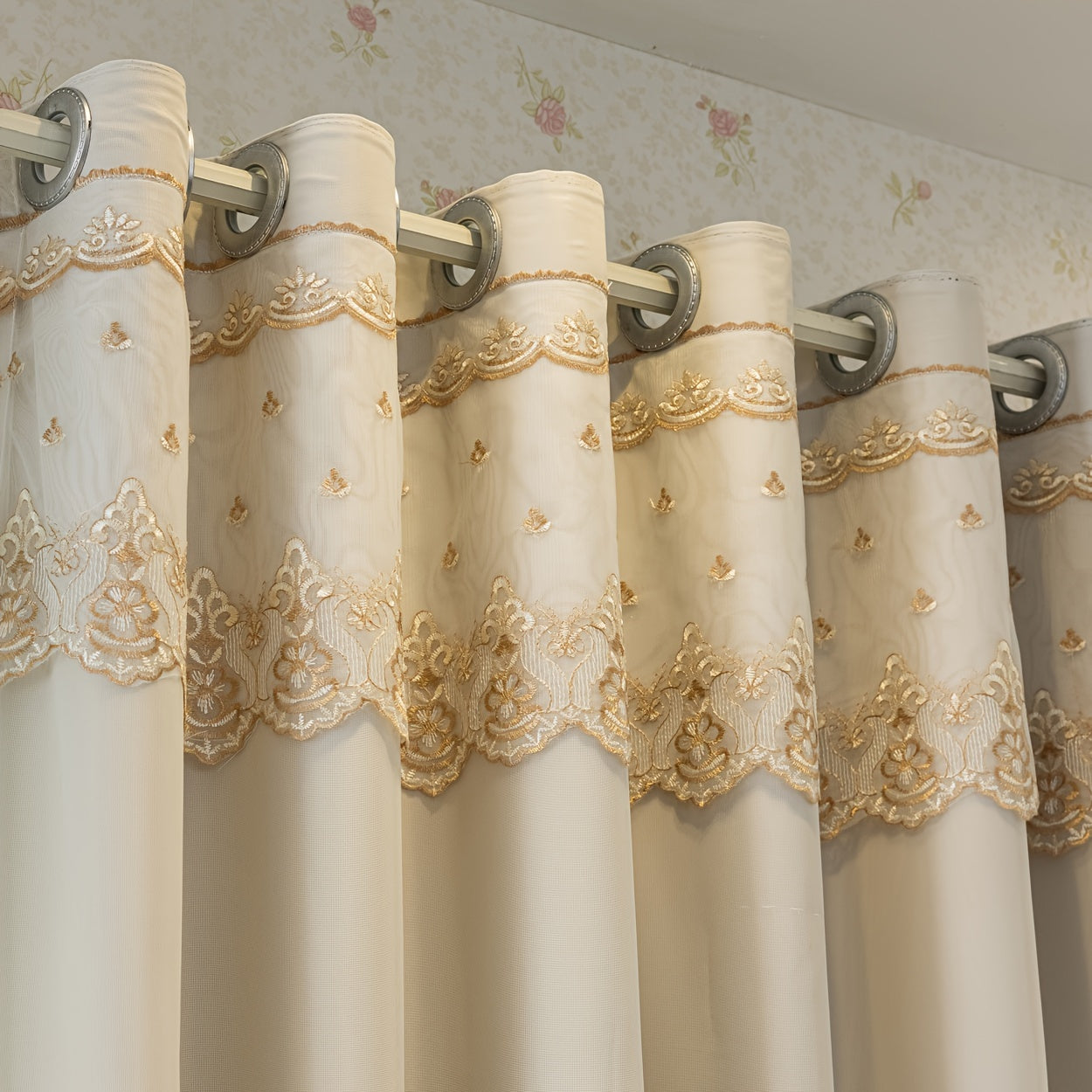 2pcDouble layered embroidered blackout curtains, living room, bedroom, dining room, kitchen, European romantic bay window curtains, embroidered curtains, home decoration