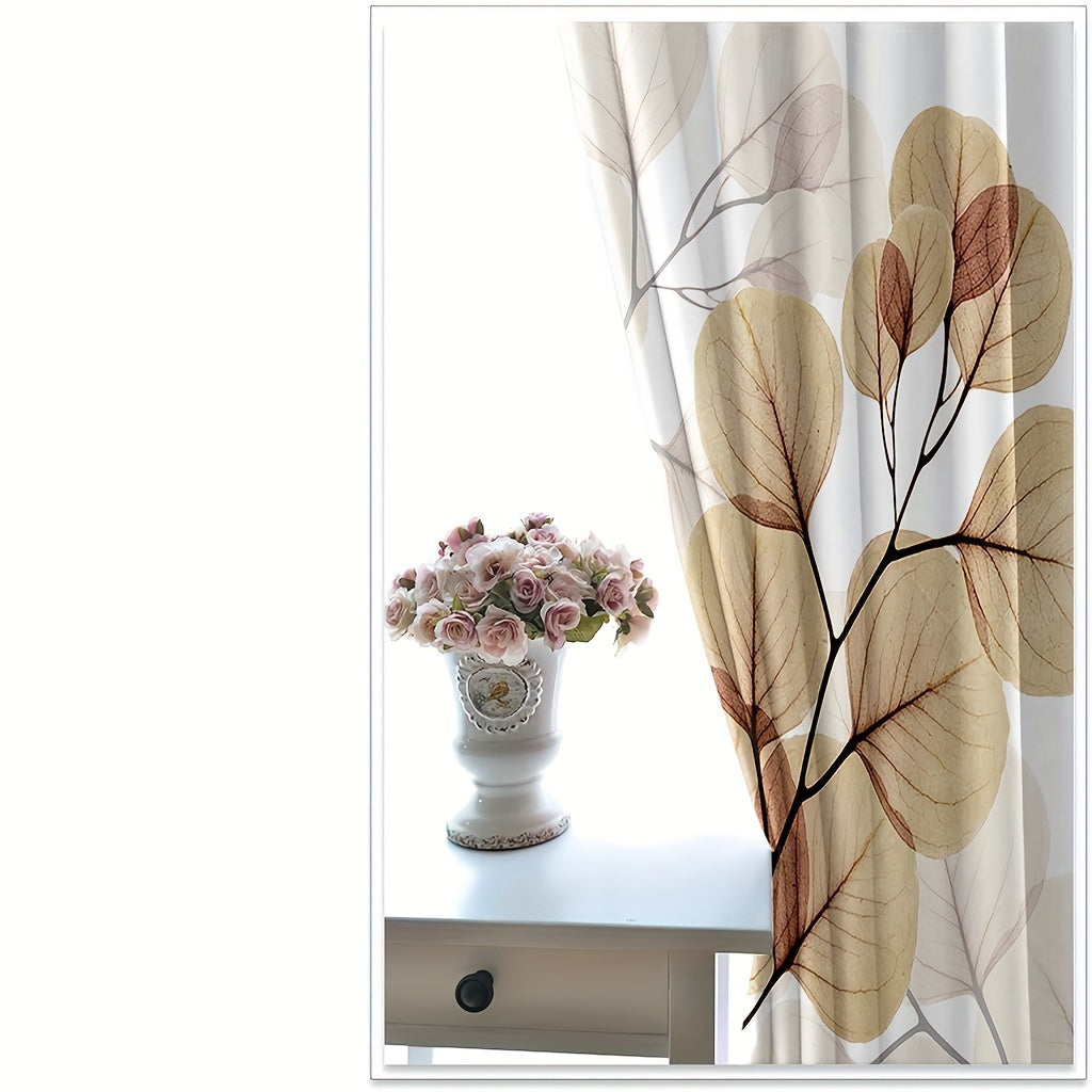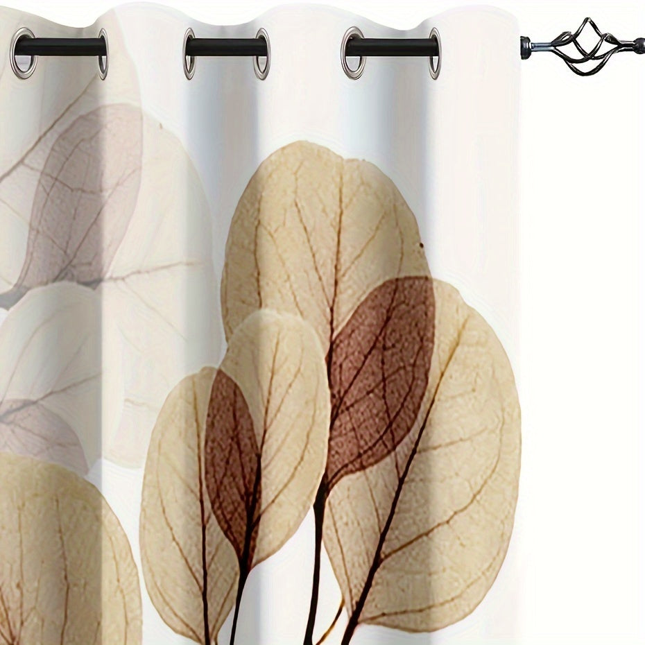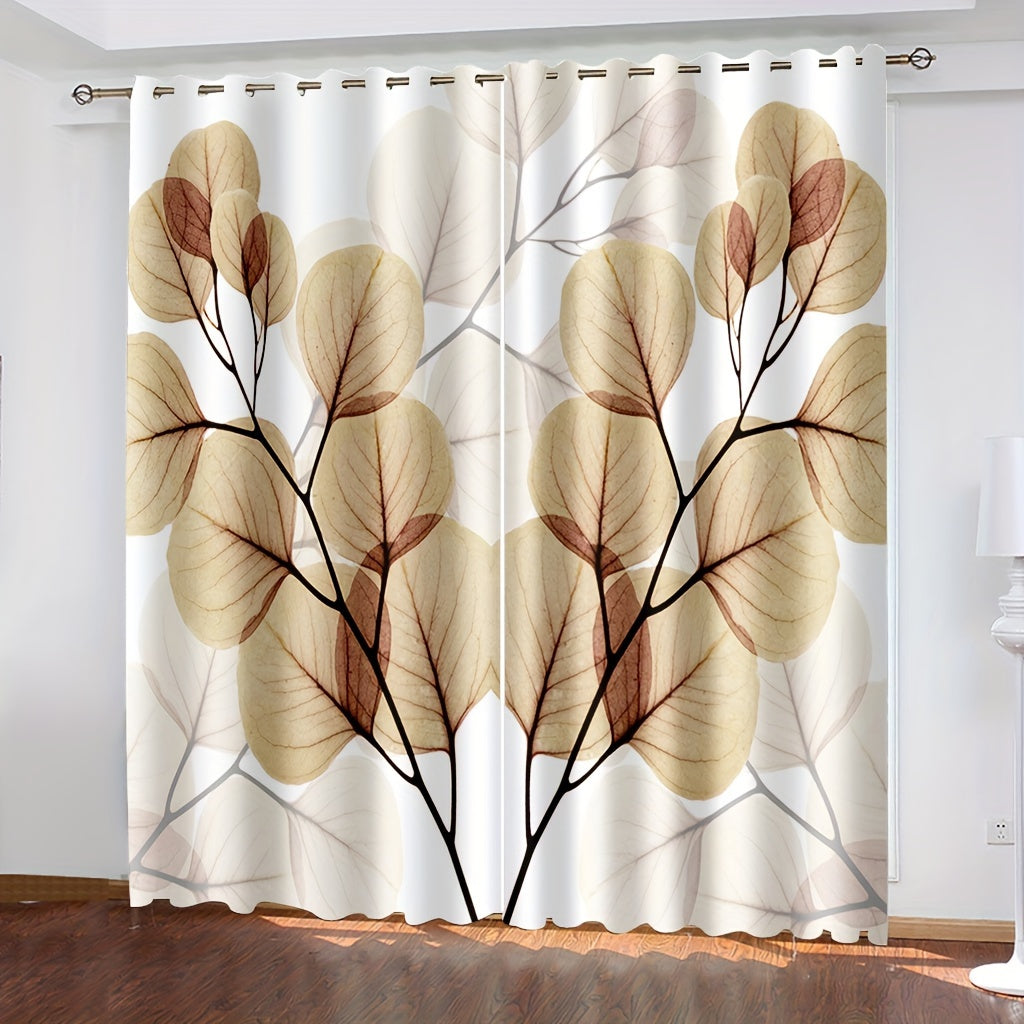 2pcs Leaf Window Curtains, Brown Leaves Branches Blocking Curtain With Grommet Top, Window Drapes For Bedroom Living Room Office Home Decor