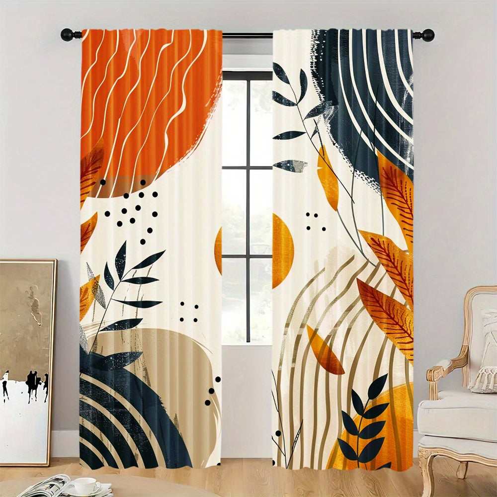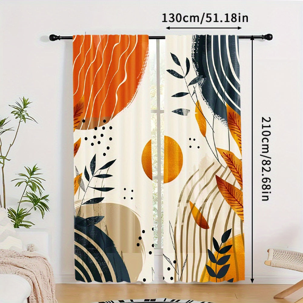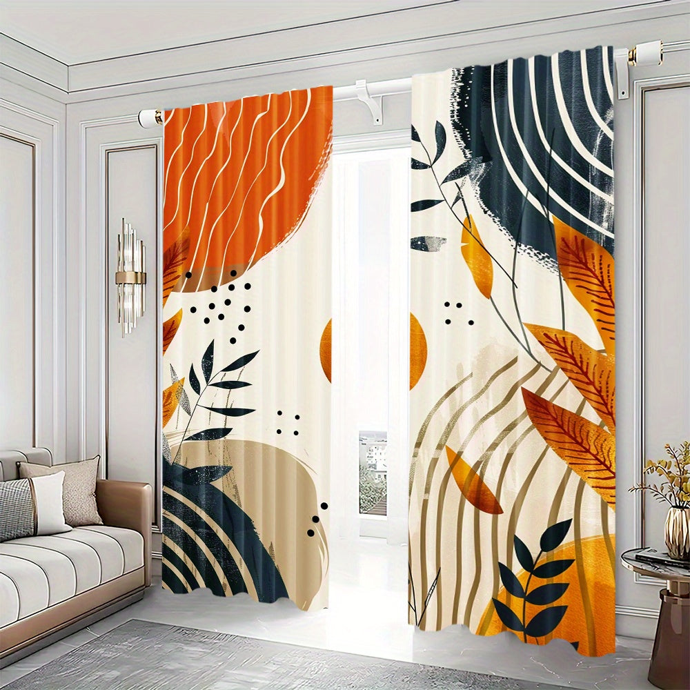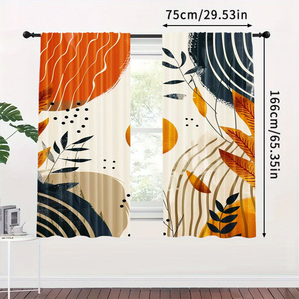 Bohemian Abstract Leaf Tropical Plant Blackout Curtains - 2Pcs Rod Pocket Woven Polyester Drapes, 120-140g Fabric Weight, Art Deco Style for Bedroom & Various Rooms, Privacy Enhancing, Machine Washable