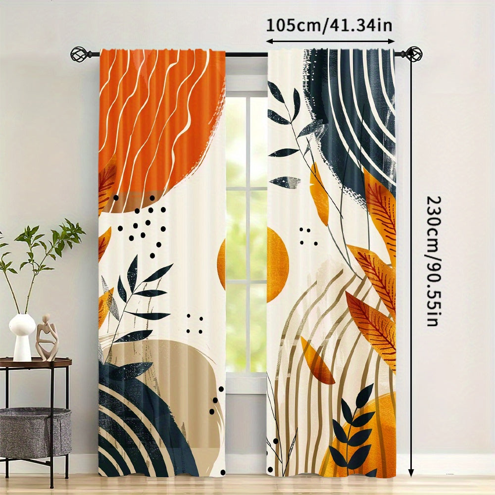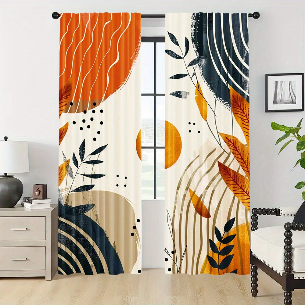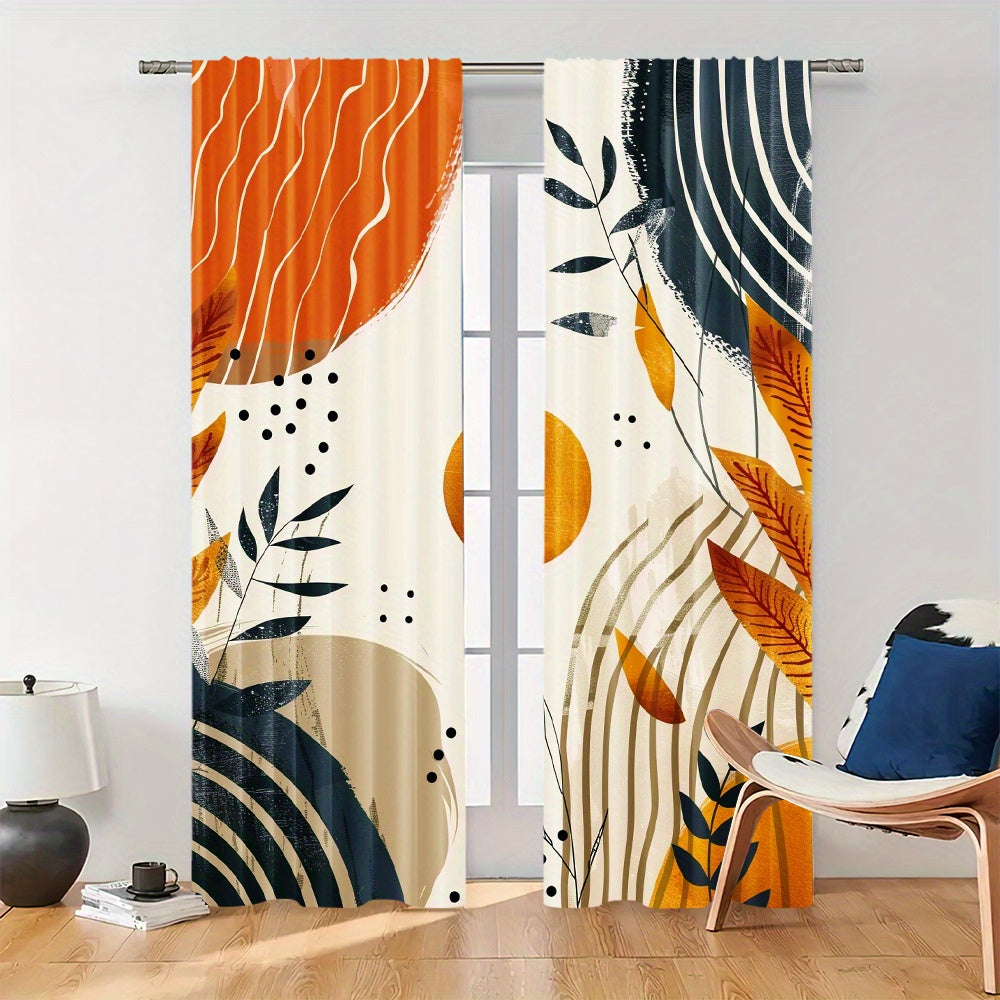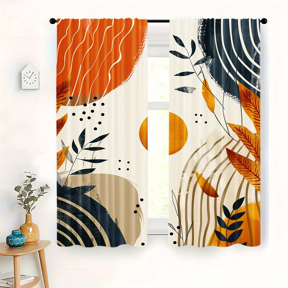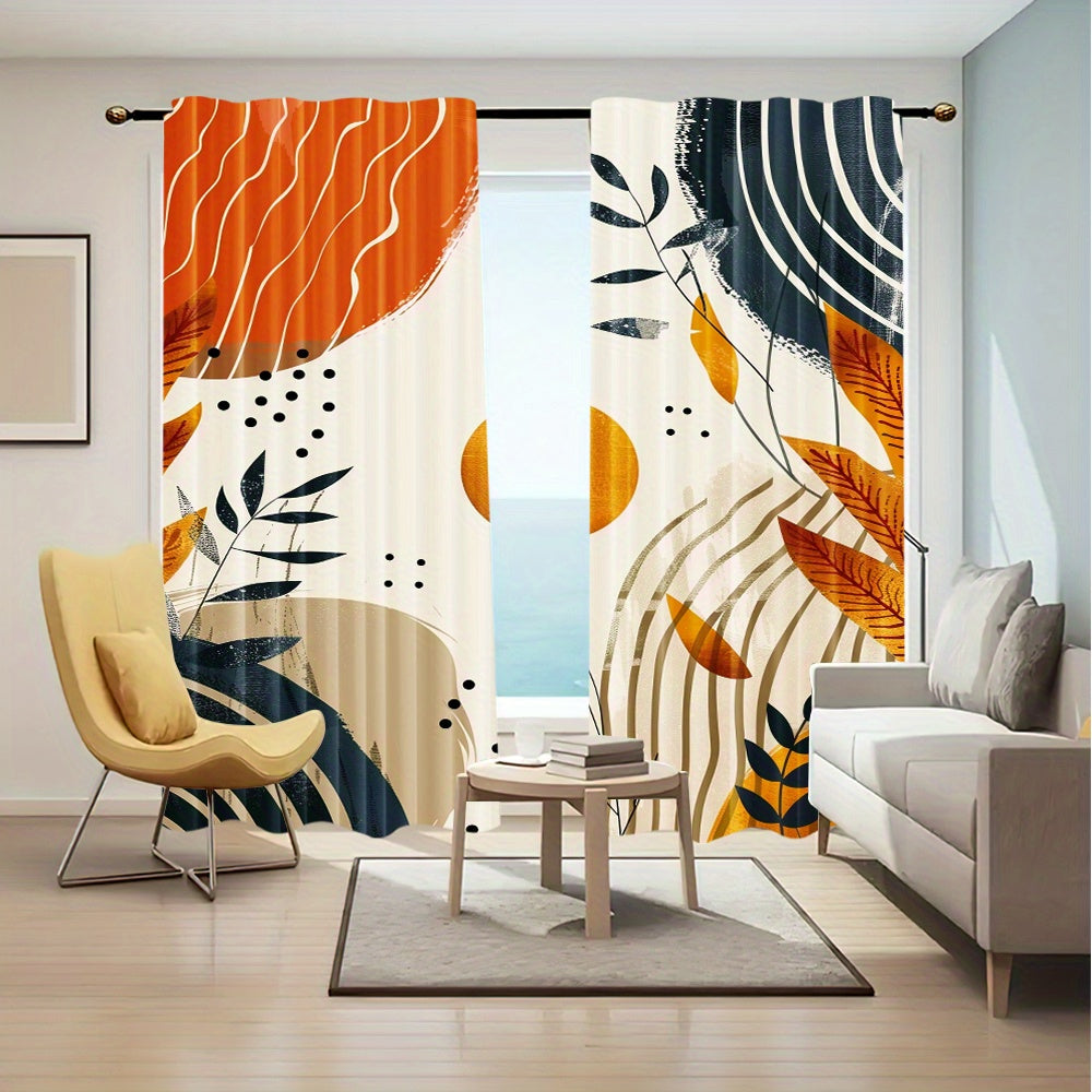 Bohemian Abstract Leaf Tropical Plant Blackout Curtains - 2Pcs Rod Pocket Woven Polyester Drapes, 120-140g Fabric Weight, Art Deco Style for Bedroom & Various Rooms, Privacy Enhancing, Machine Washable