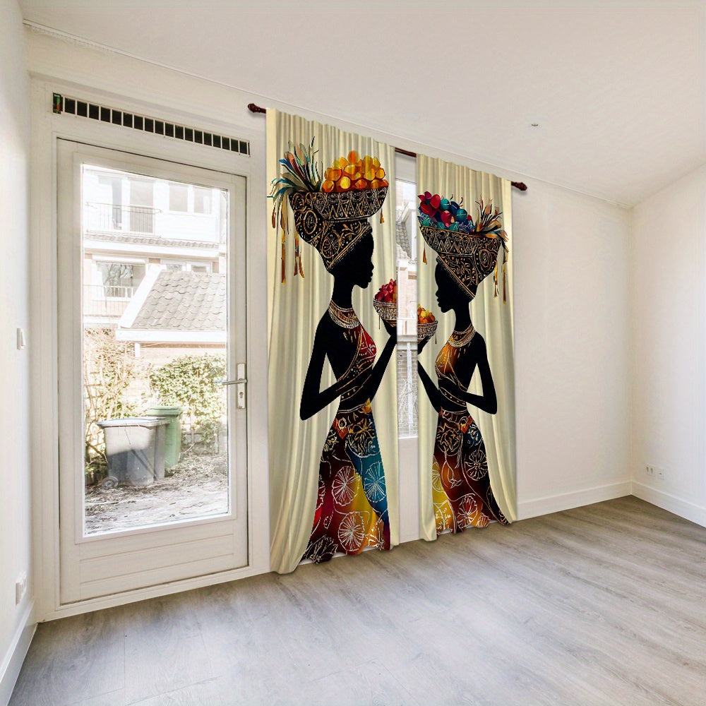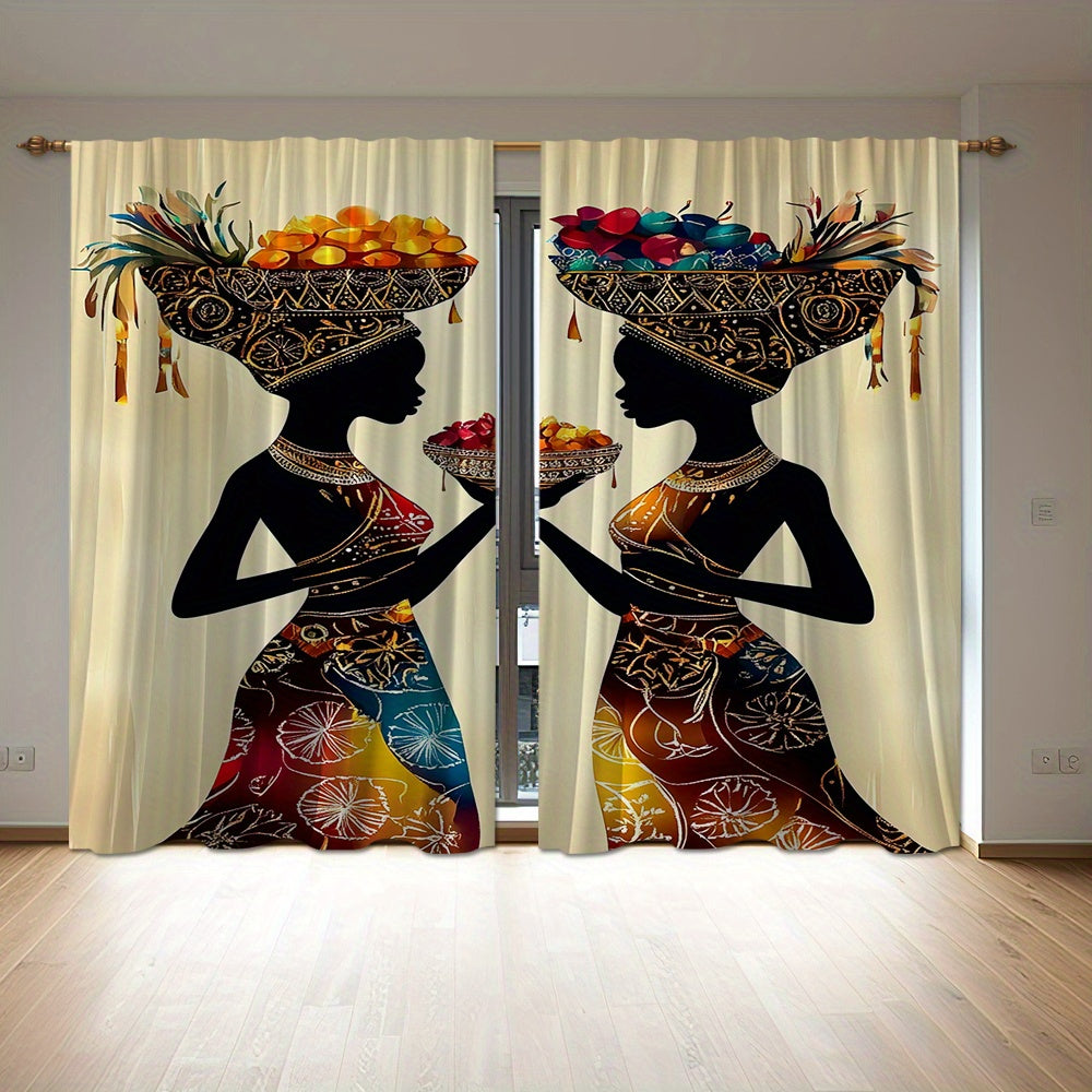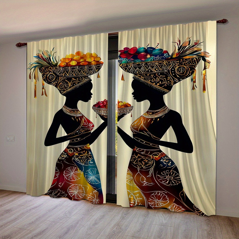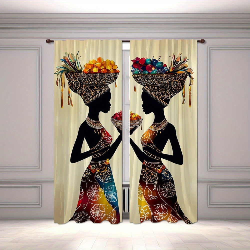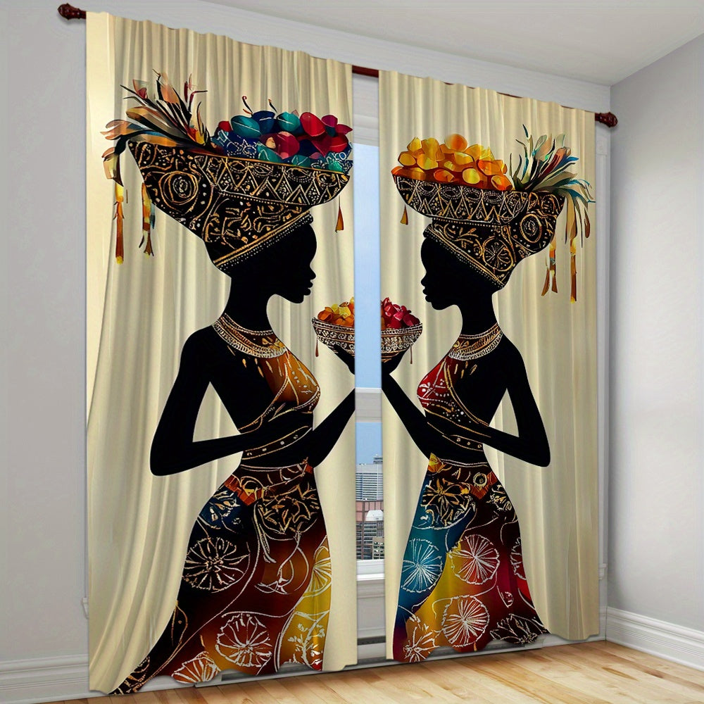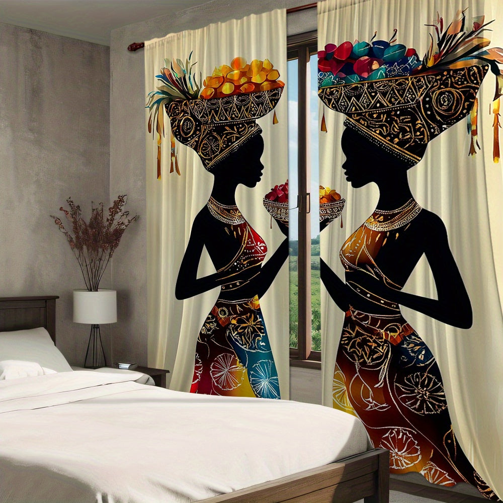 Bohemian African Women Print Blackout Curtains Set of 2, Rod Pocket Window Drapes, Digital Print Polyester Panels for Living Room Bedroom Home Decor, 14+ Age Group – Exquisite Ethnic Art Design (Rod Not Included)