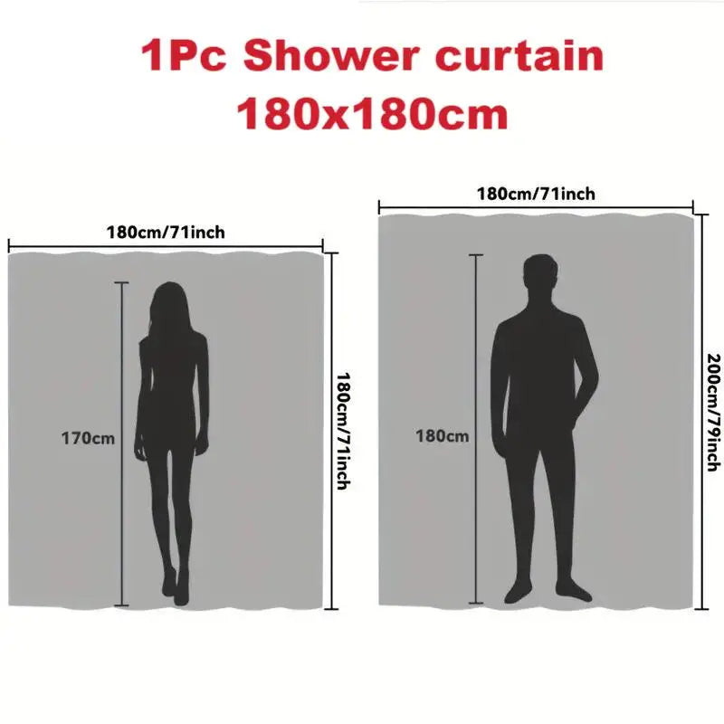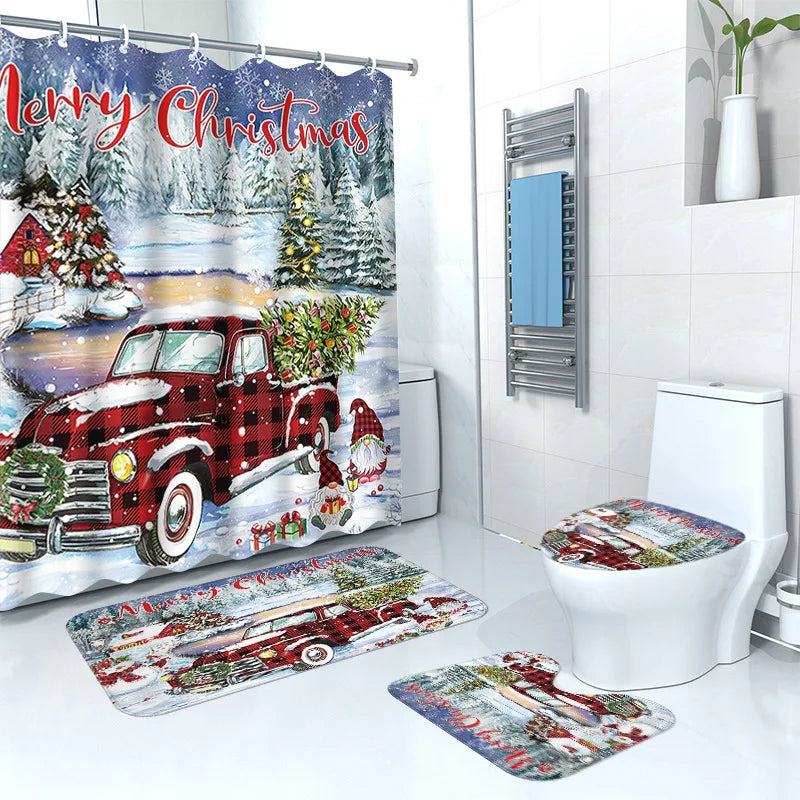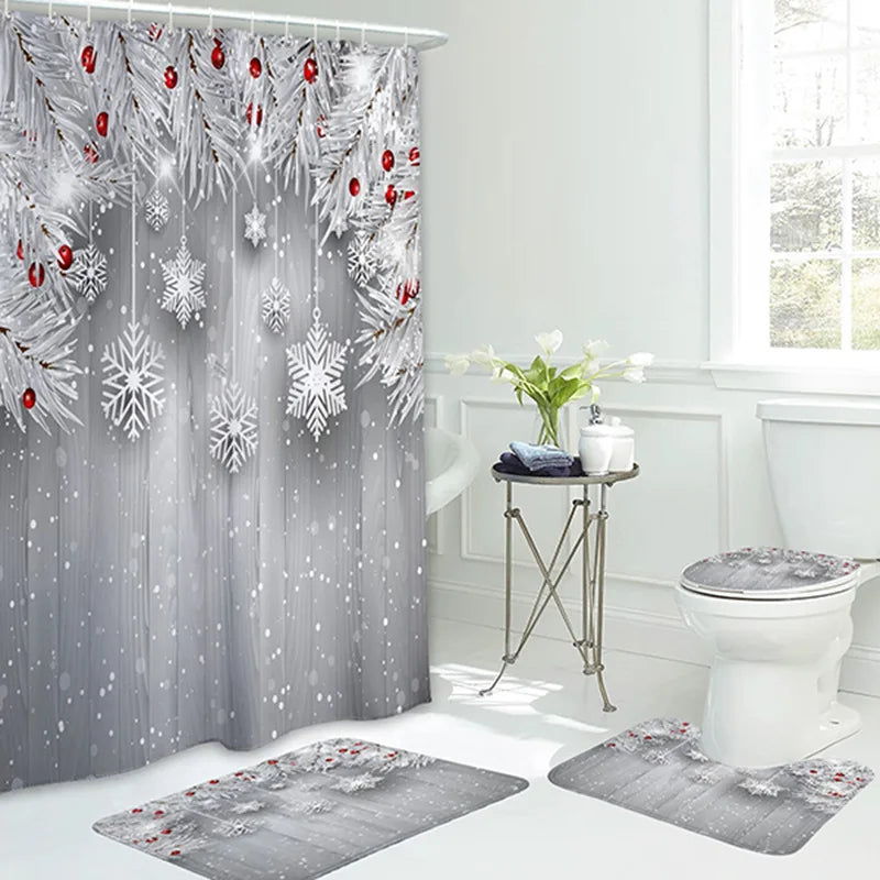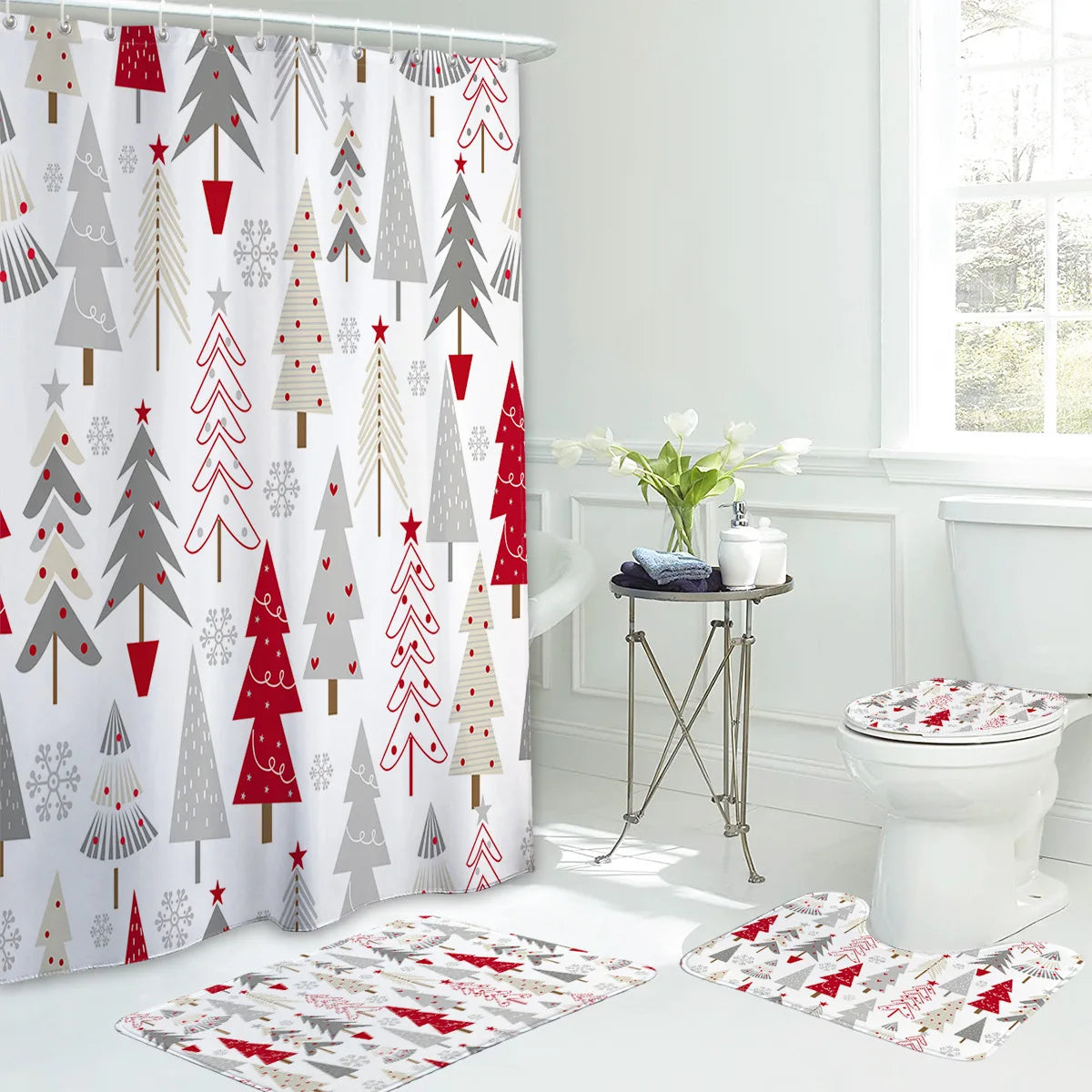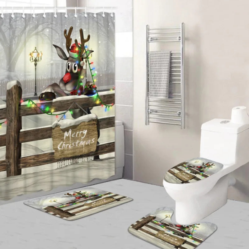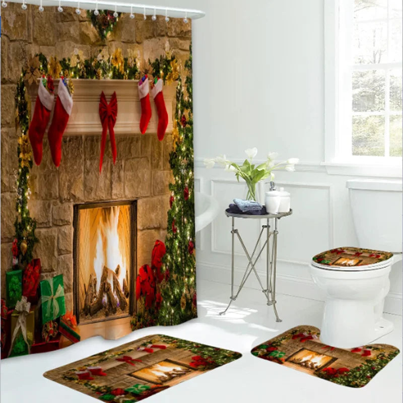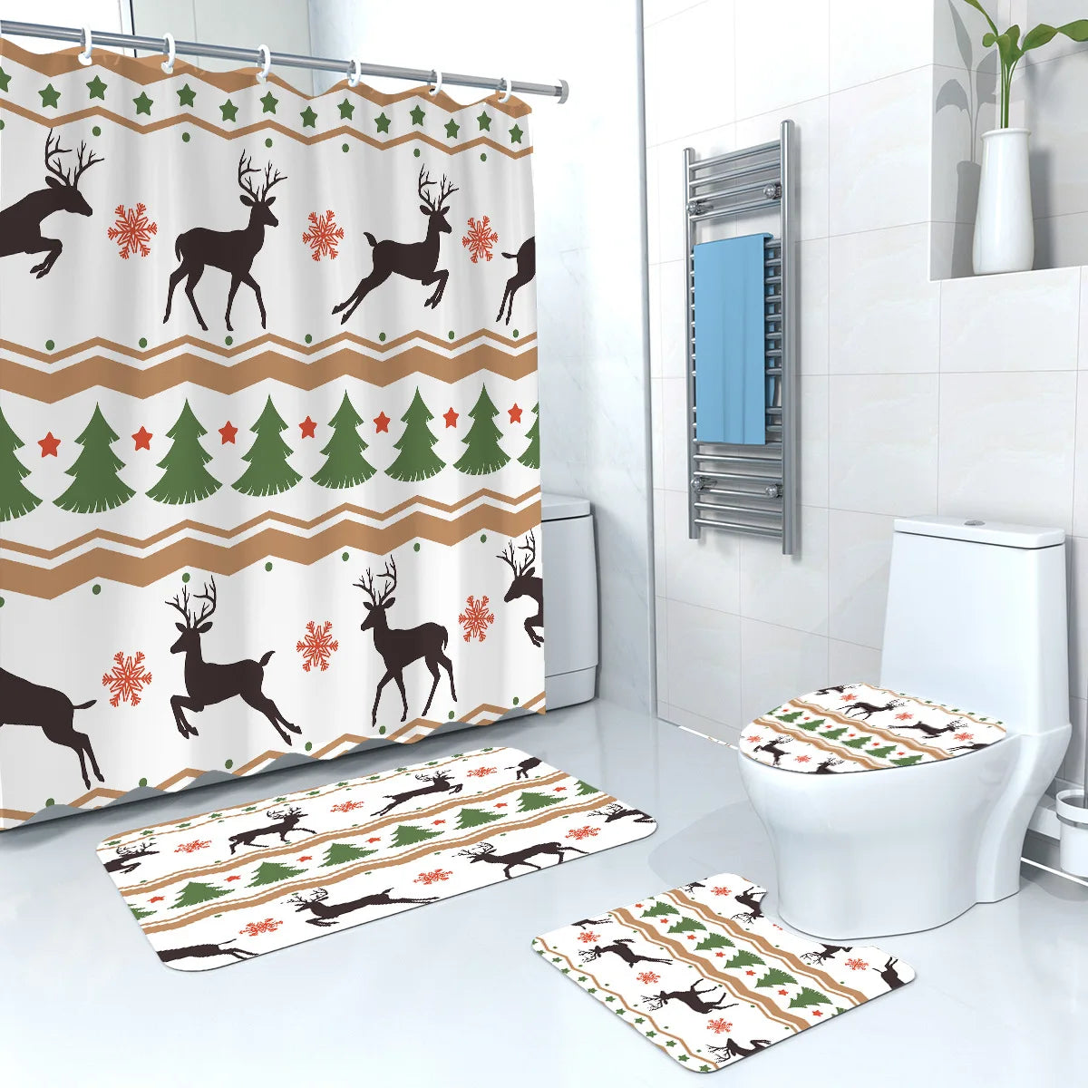 Cartoon Navidad Merry Christmas Shower Curtain Set with Bath Mat Anti-slip U-Carpet Bathroom Partition Waterproof Home Decor