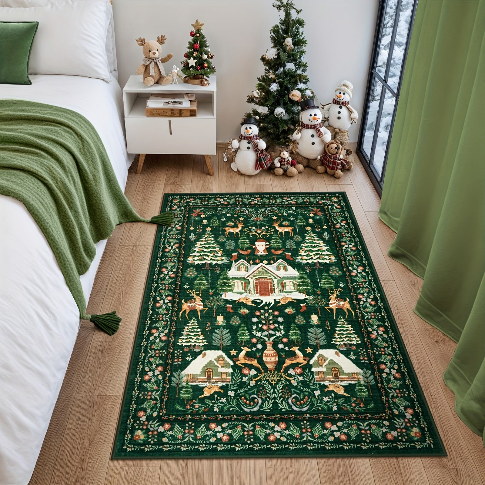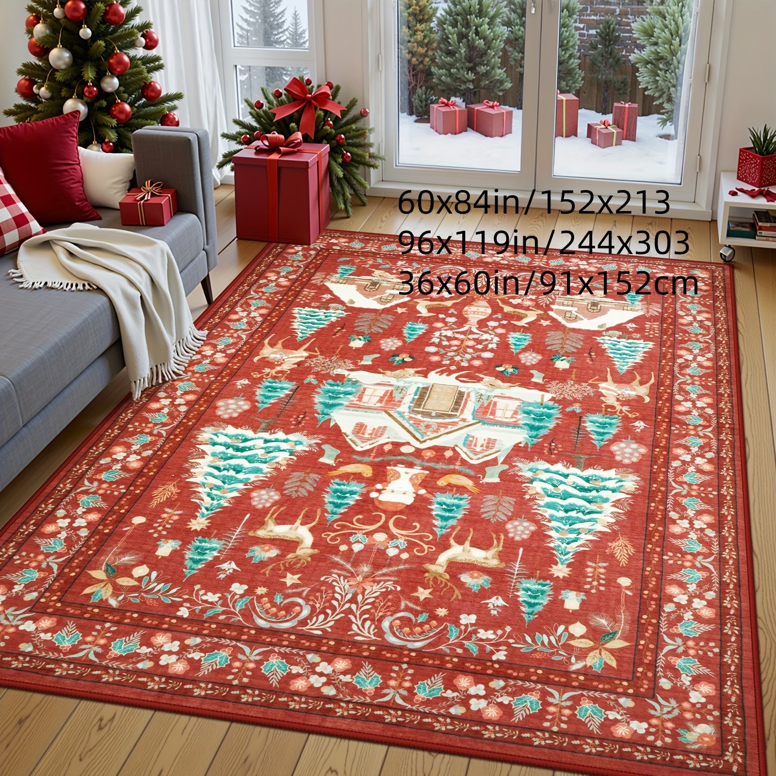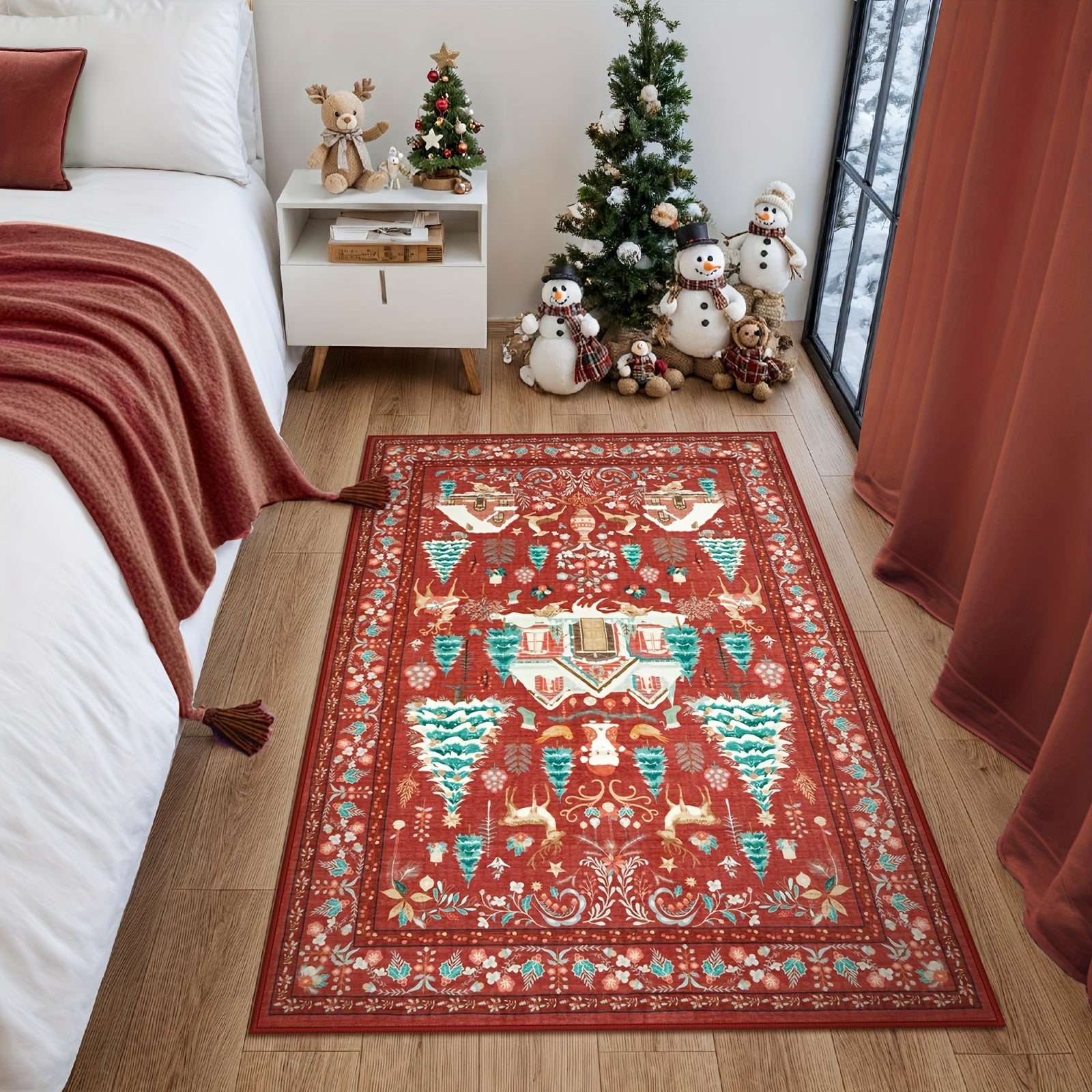 Christmas Area/Runner Rugs For Living Room, Washable Rug Carpet, Non-Slip Low Pile Soft Retro European Christmas Garden Floor Mat.