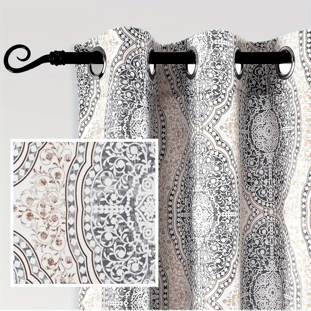 Curtains for Bedroom Room Darkening Curtain Medallion Drapes for Living Room Damask Pattern Thermal Window Treatments Grommet 2 Panels