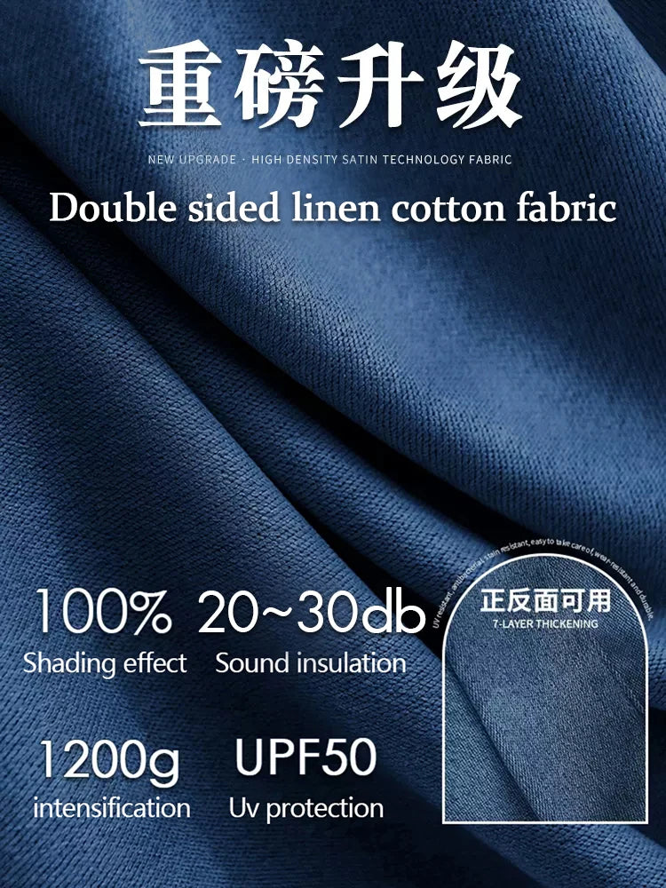 Super Strong Sound Insulation Fully Blackout bedroom Curtain Double sided linen cotton Sunshade living room decorative curtains