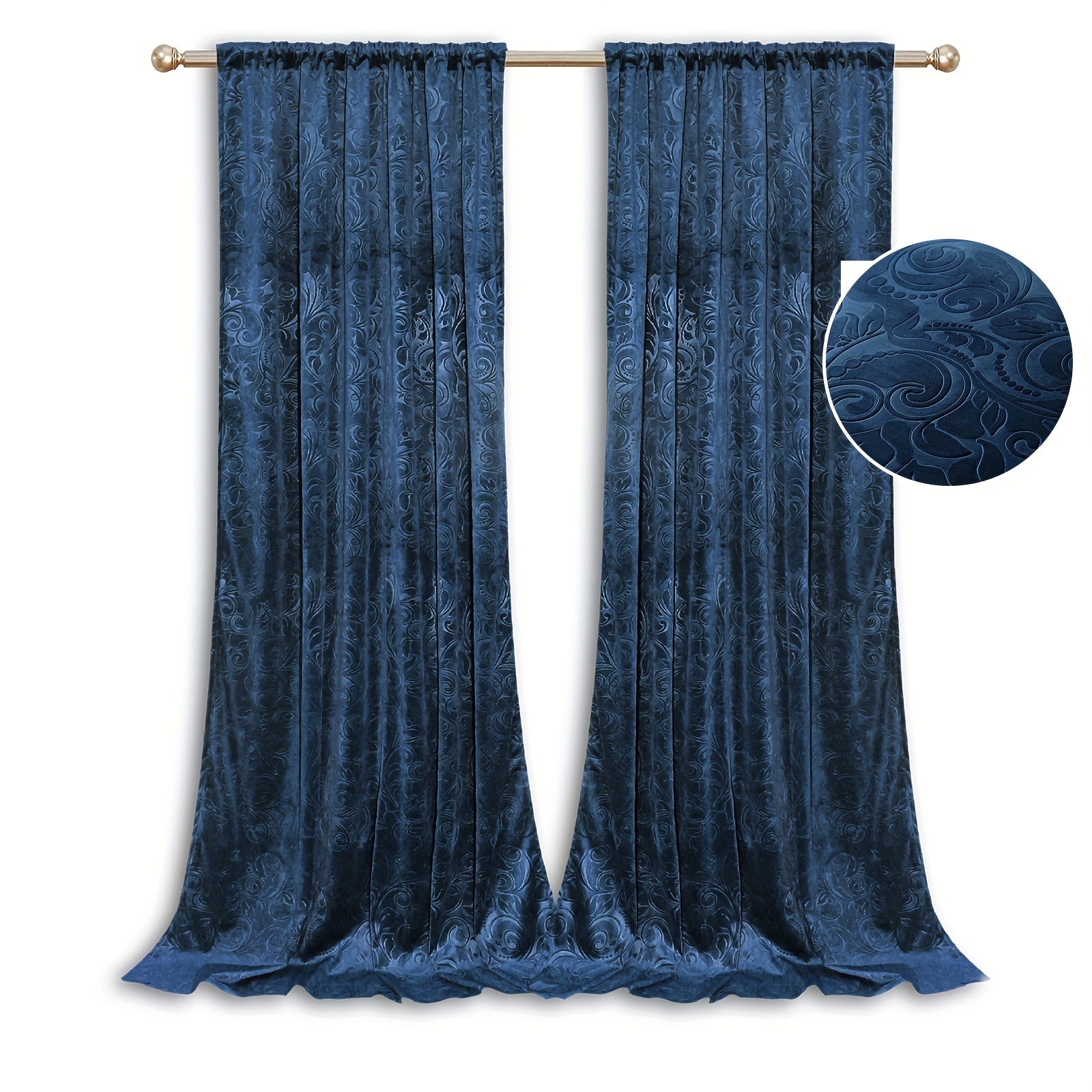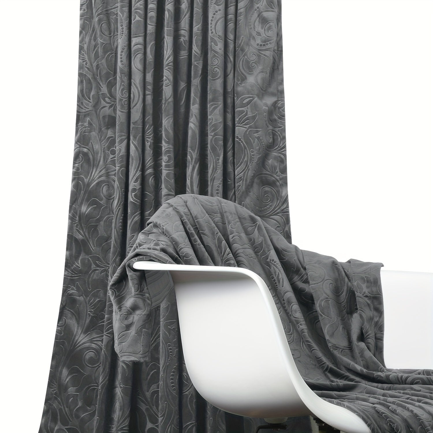 2 Panels Luxury Crushed Velvet Curtain Floral Damask Pattern Thicken Window Curtain Darkening Drapes Solid Thermal Isolate Light Heat Blocking Curtain Rod Pocket Back Tap Clip Pleat Hook Pin Hook Heading Living Room Bedroom