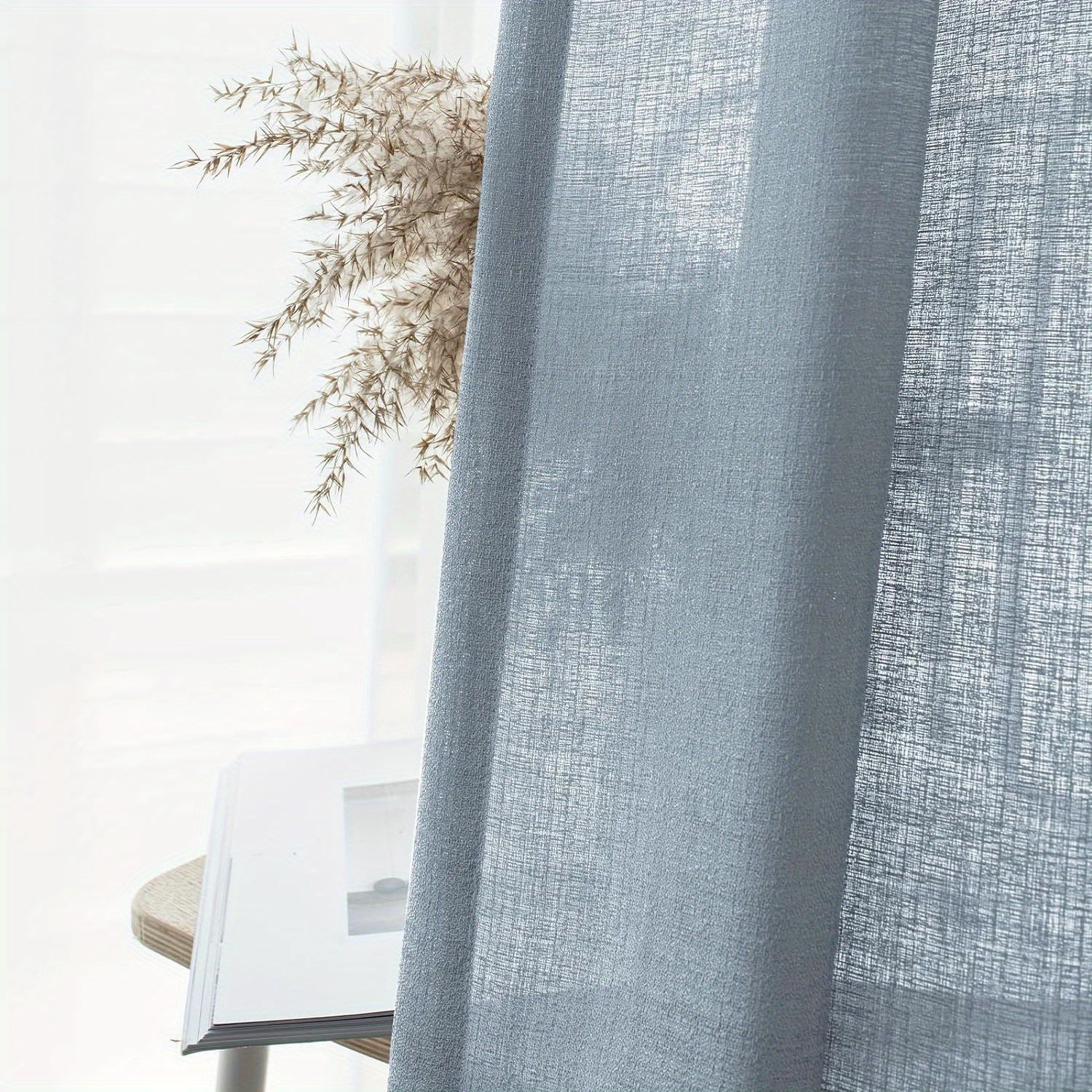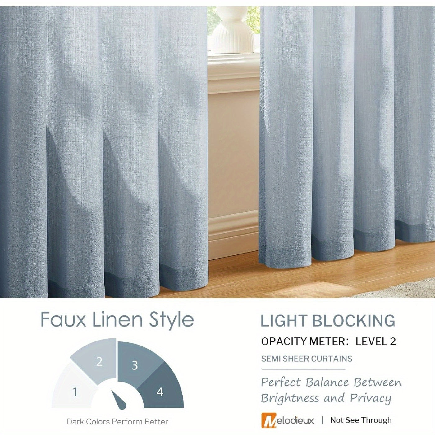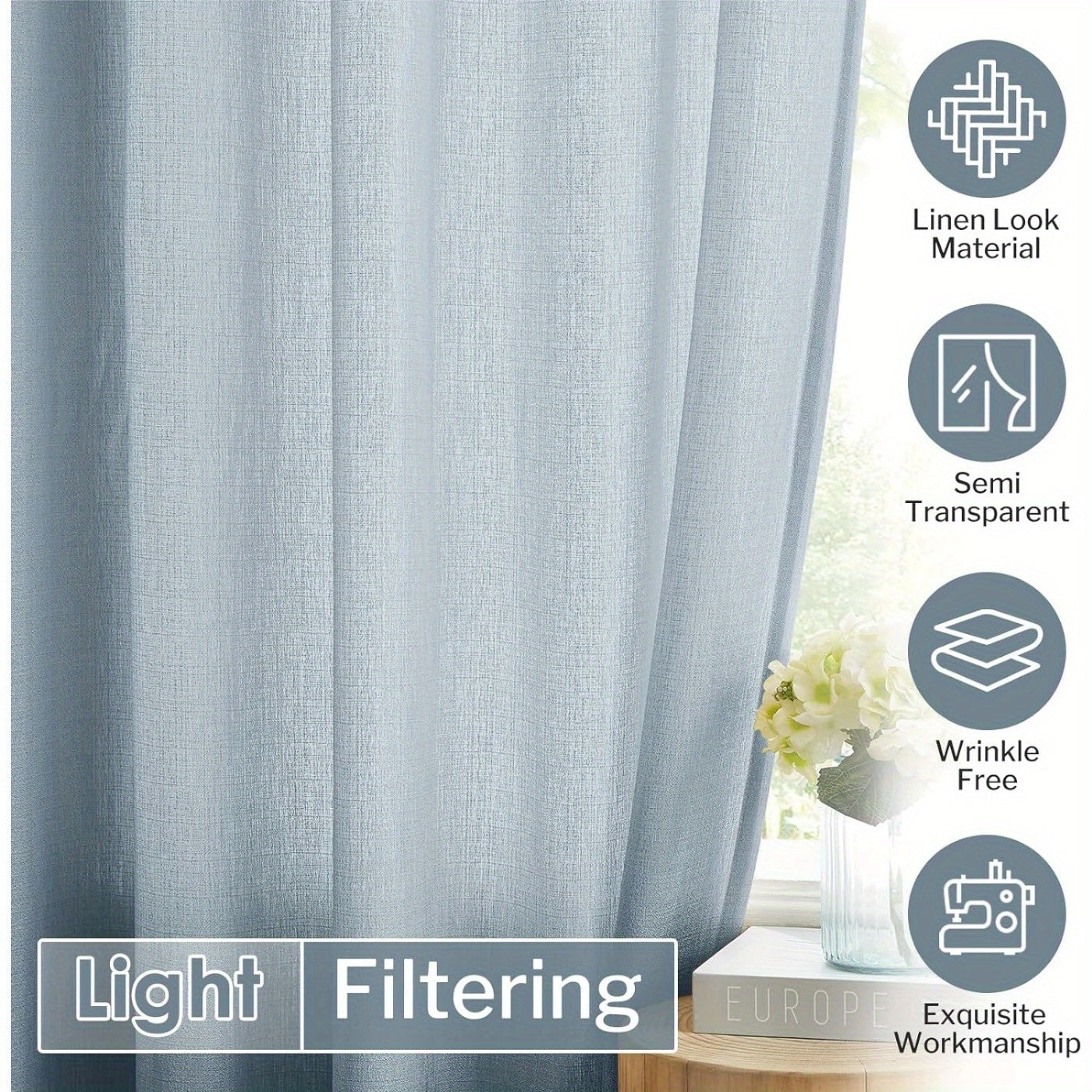 2pcs Dusty Blue Linen Look Rod Pocket Sheer Drapes Semi Sheer Curtains Light Filtering Privacy Curtains for Bedroom Kitchen Small Windows