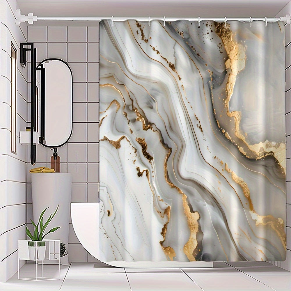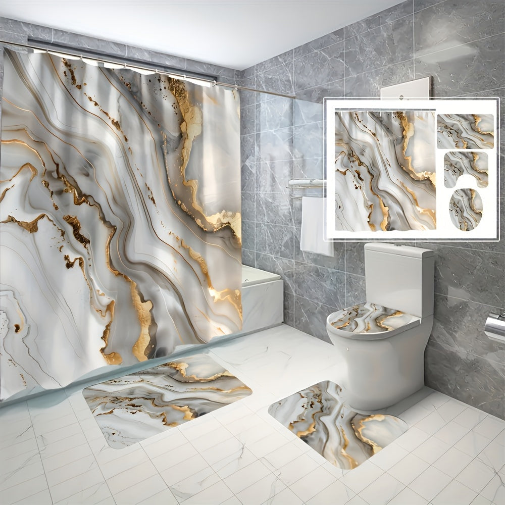 4pcs Marble Patterned Bathroom Curtains, Digital 3D Printing Waterproof Bathroom Curtain Set, Non Perforated Bathroom Curtains