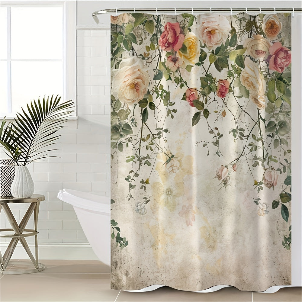 4pcs Rose Rose Bathroom Curtains Digital 3D Printing Waterproof Bathroom Curtains Set Bathroom Curtains Non Perforated Bathroom Curtains