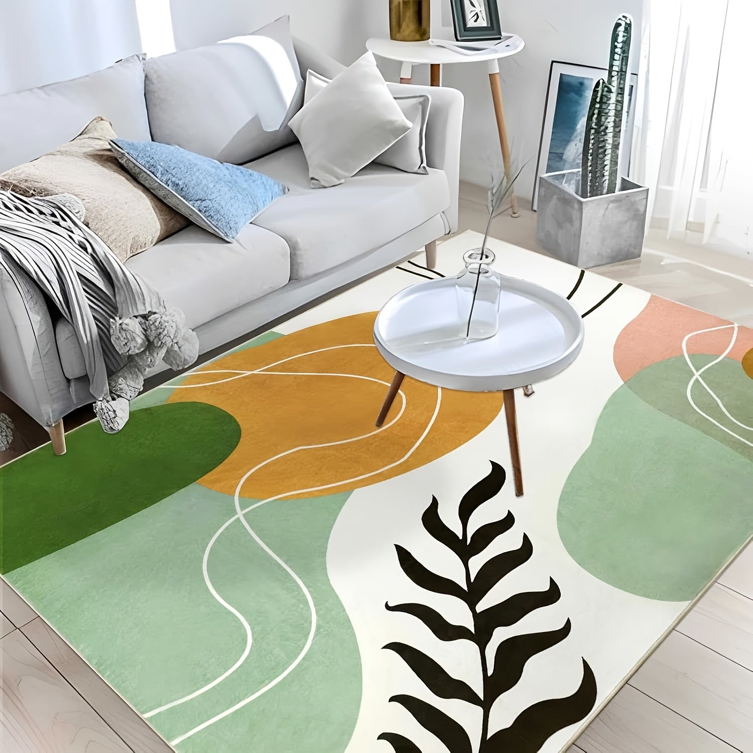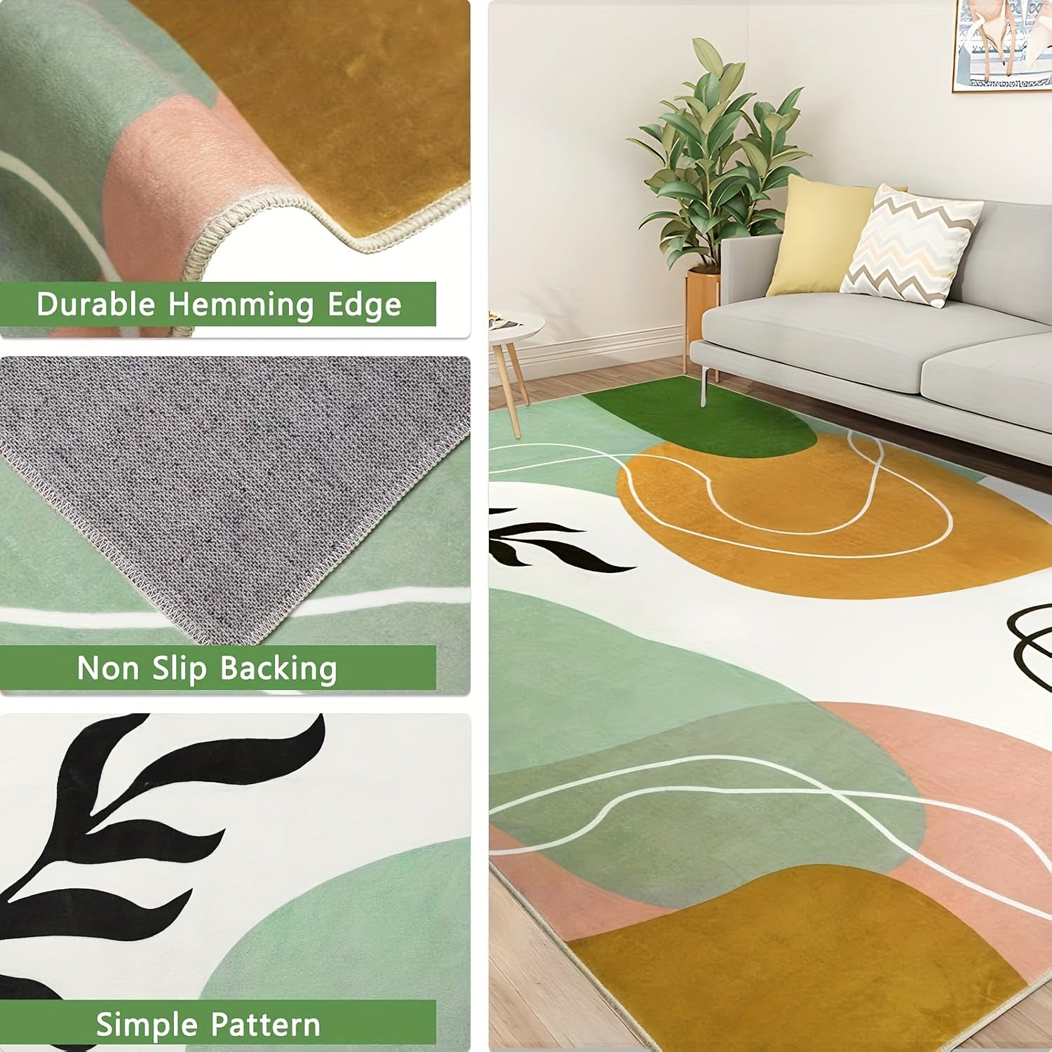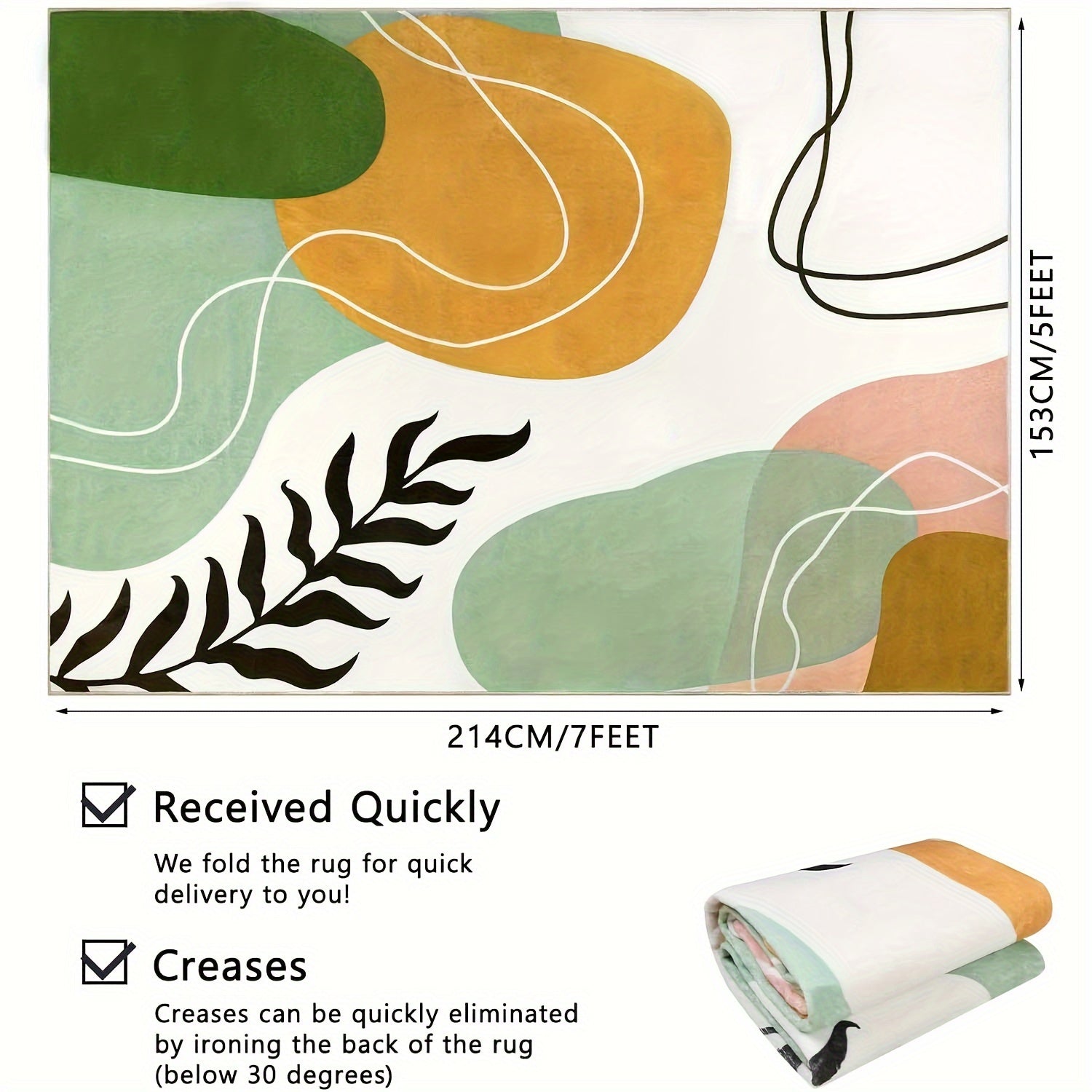 5x7 Washable Rug Boho Area Rug Abstract Living Room Rug, Mid Century Modern Non-Slip Carpet Low Pile Large Rugs for Living Room, Bedroom, Green