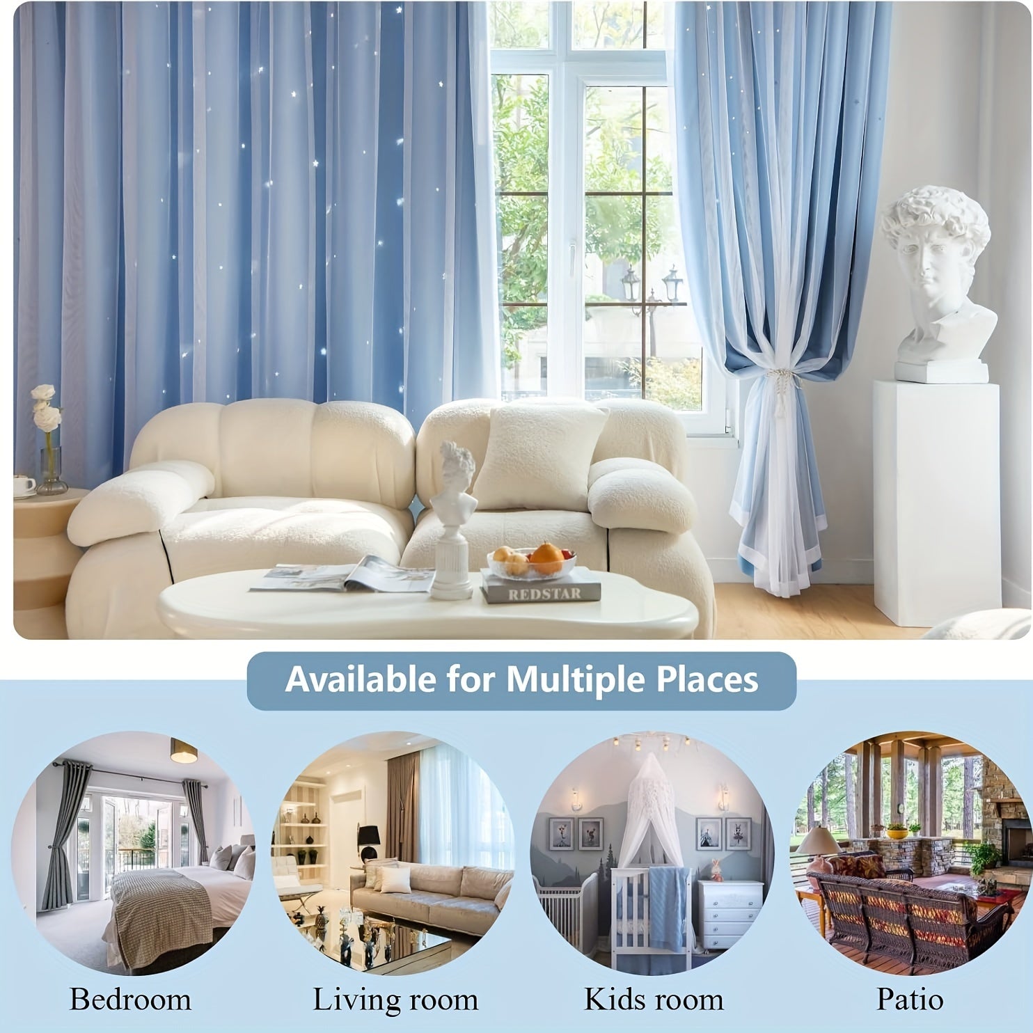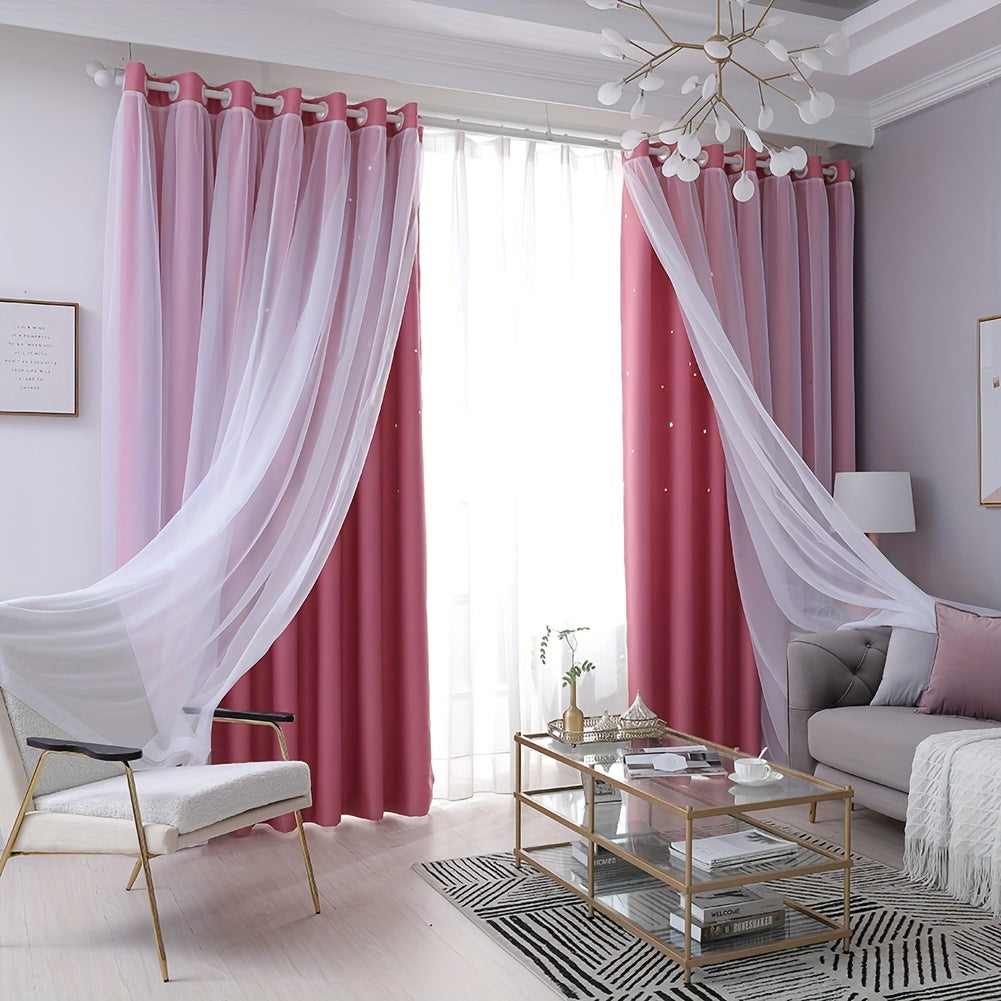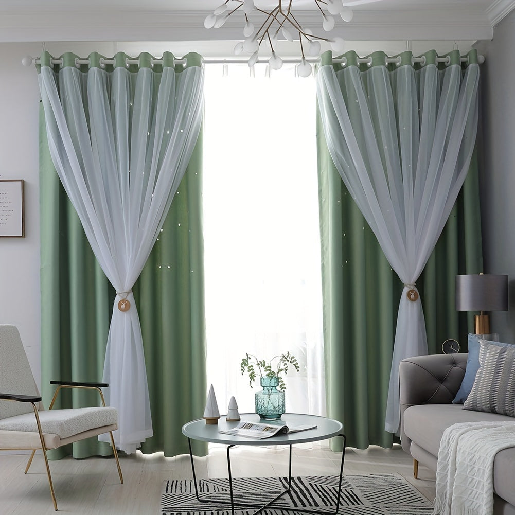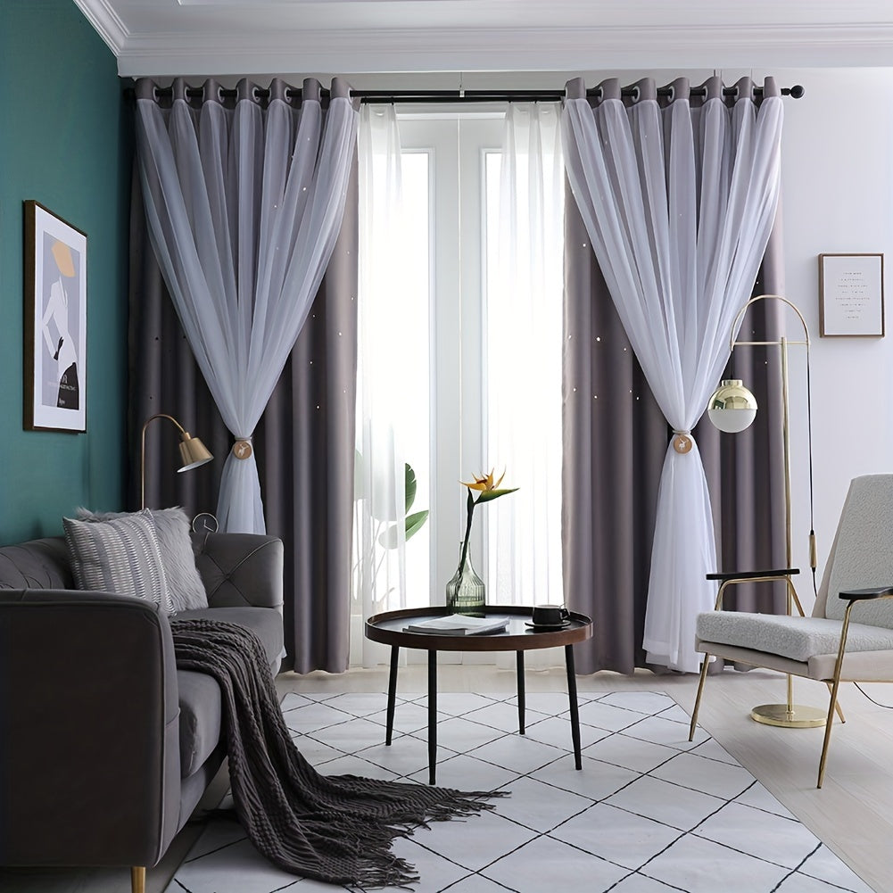 6 Pcs 42x84 Inch Stars Blackout Curtains For Bedroom Living Room Window Drape Solid Blue Star Cutout Curtains Tulle Overlay Curtain Double Layer Cut Out Curtains