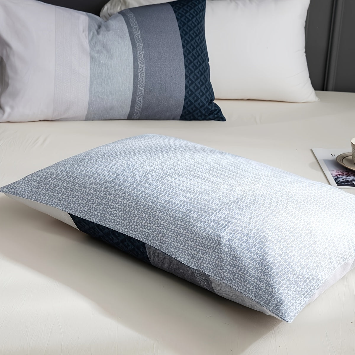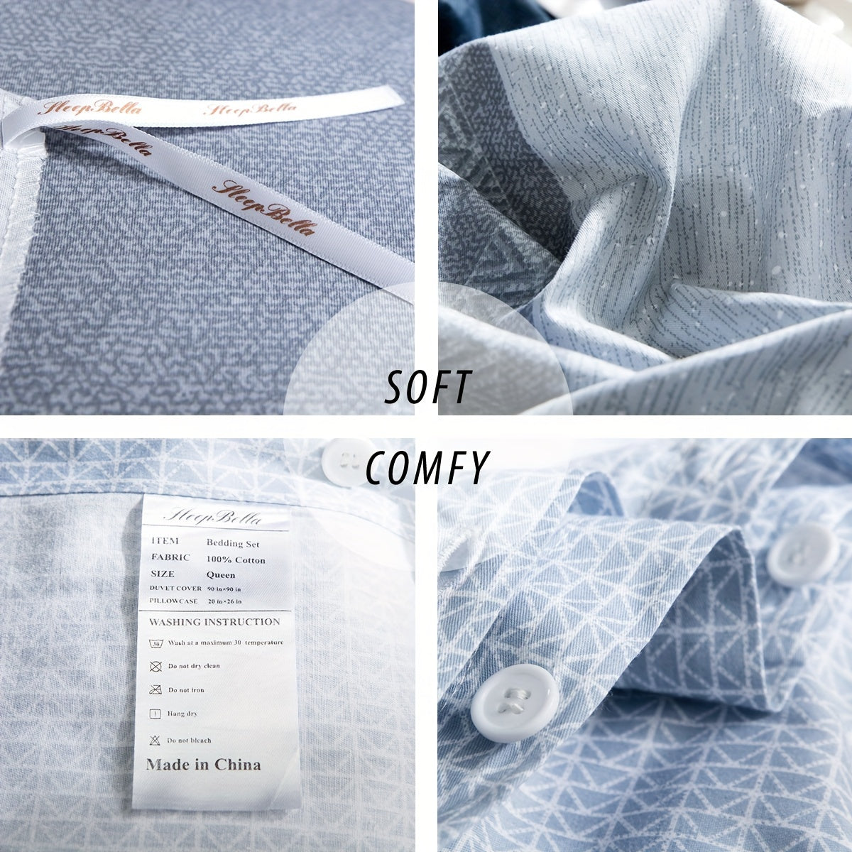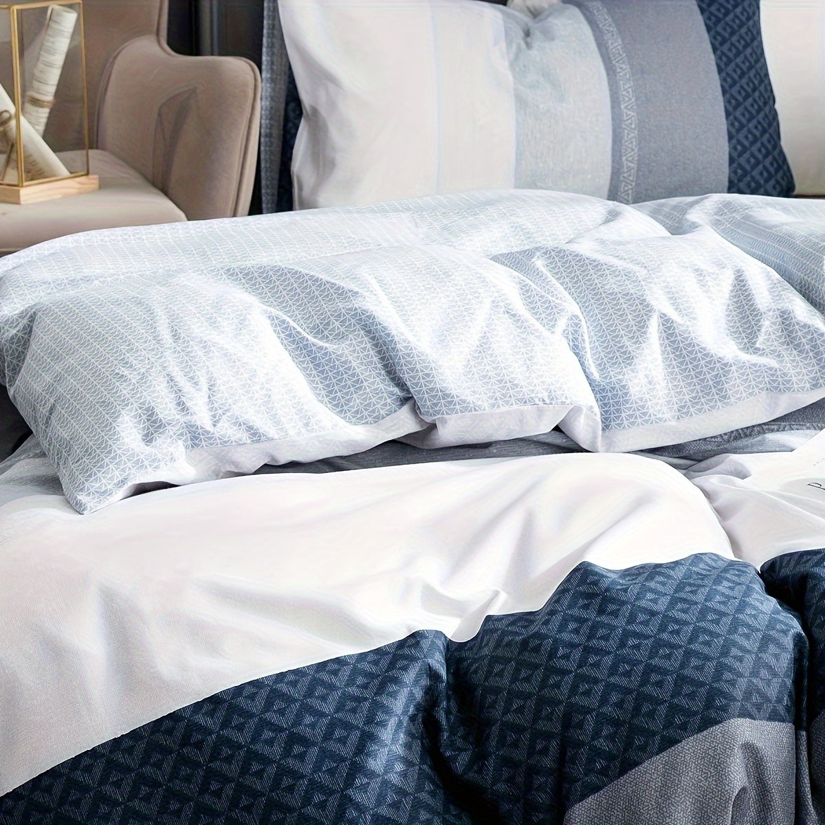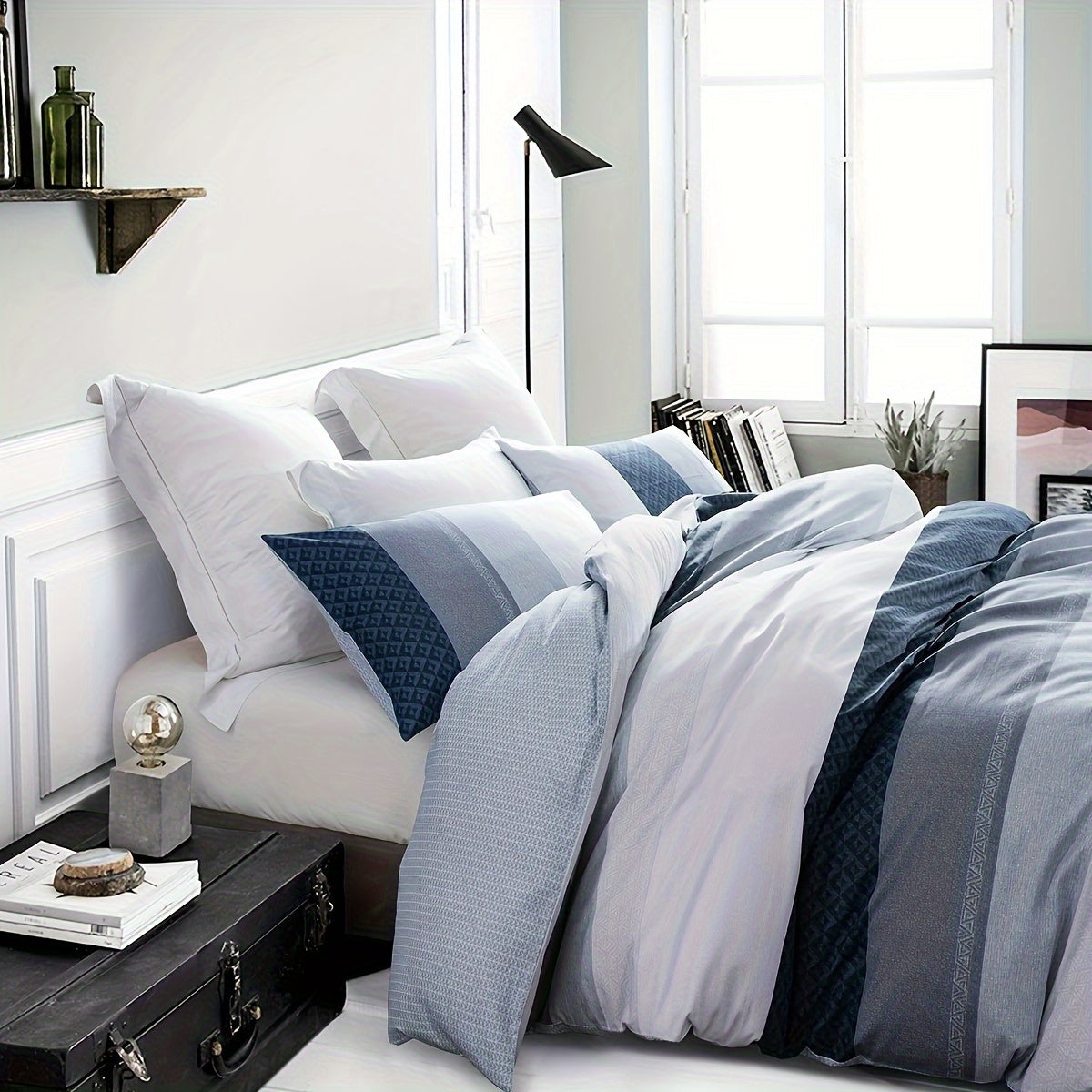 600 Thread Count SLEEPBELLA Luxury Duvet Cover Set - Soft, Breathable, Reversible, and Stylish White and Navy Striped Patchwork Comforter Cover Set with Quilt Cover for a Comfortable Sleep Experience