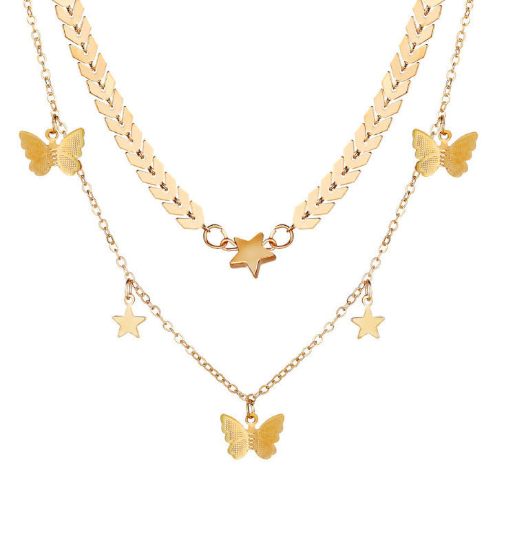 Clavicle Chain Sequined Star Butterfly Necklace Chain Necklace