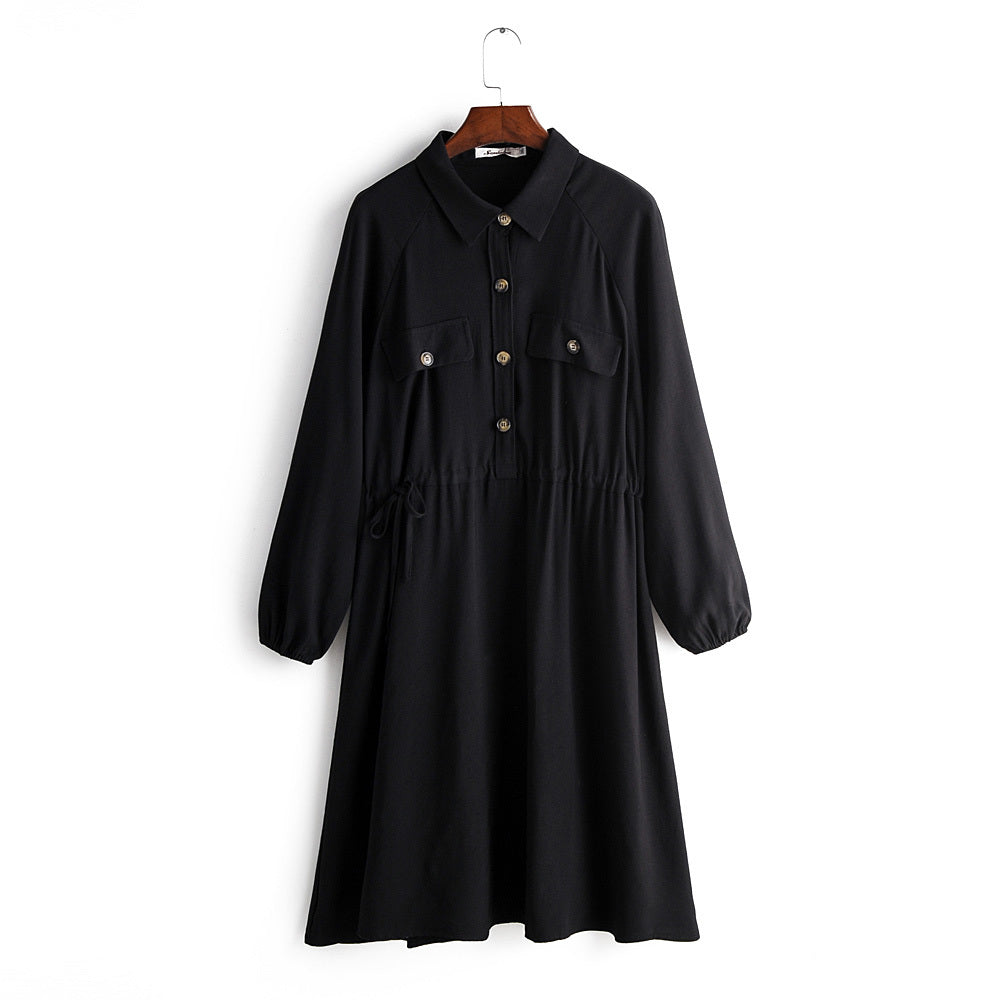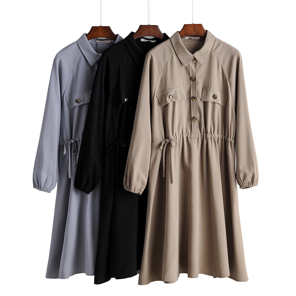 Dress Plus Size Fat MM Retro Fashion Lapel Waist Long Skirt Large Swing Skirt