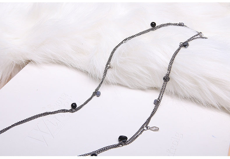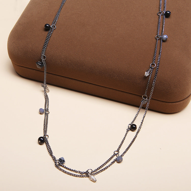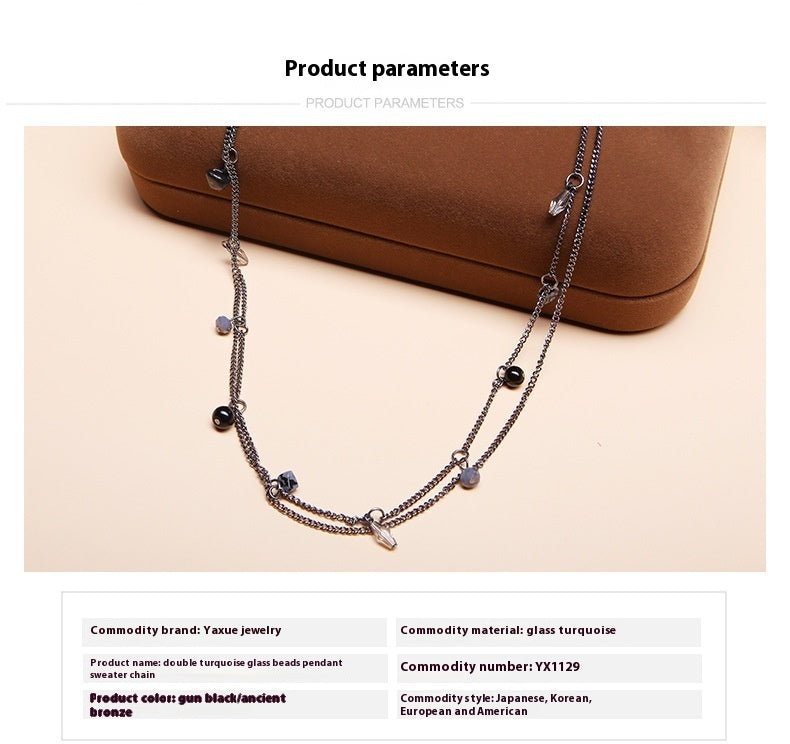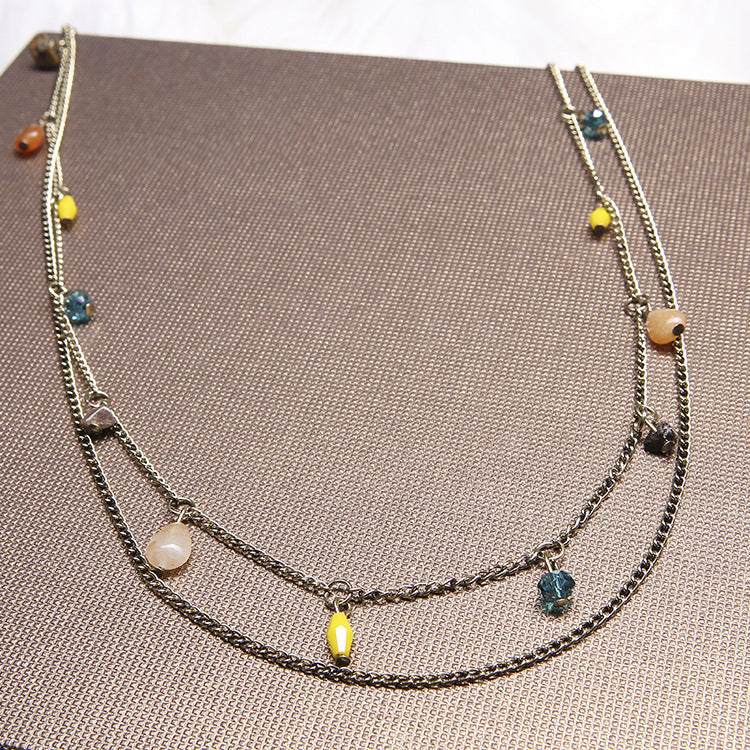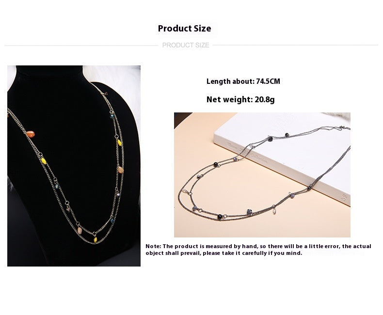 European And American Colorful Stone Pendant Necklace Sweater Double-layer Chain Environmental Protection Electroplating
