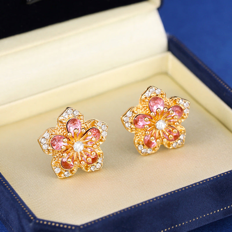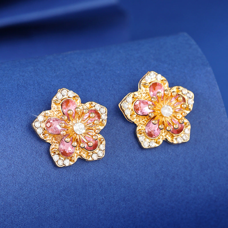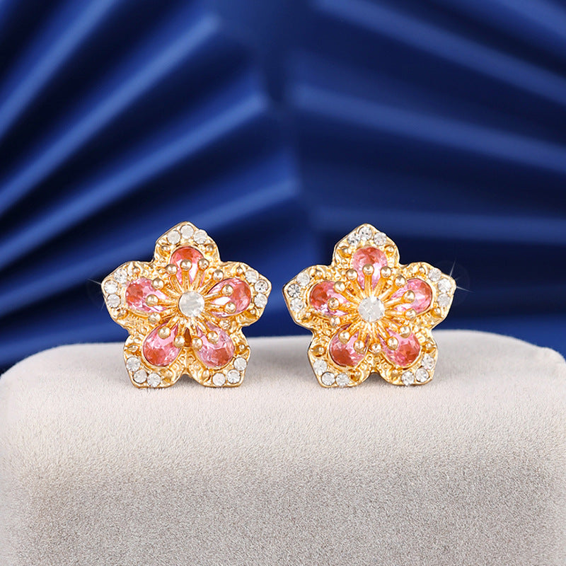 Fashion Inlaid Color Diamond Flower Stud Earrings For Women