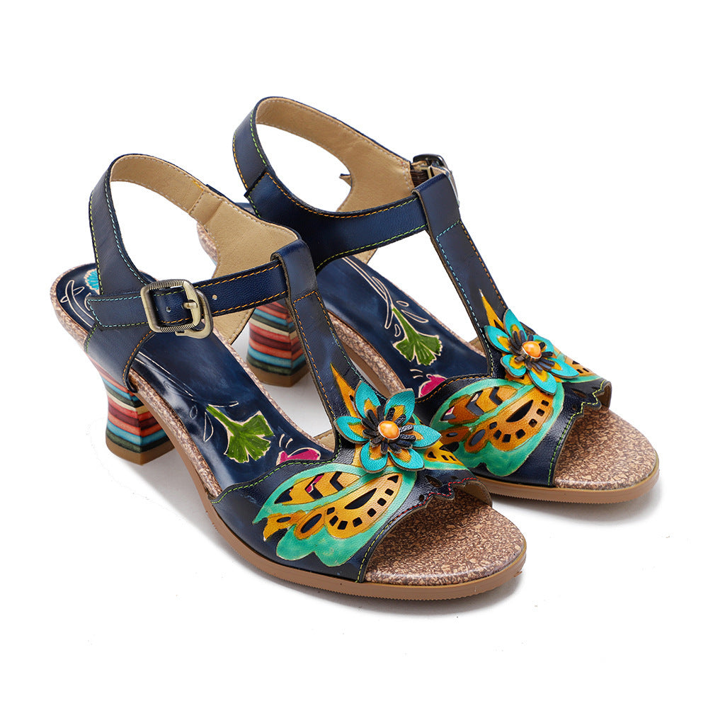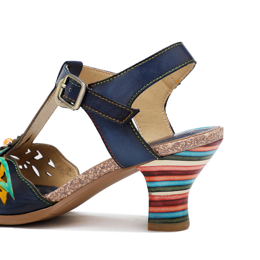 Genuine Leather Hand-rub Color Retro Contrast Color Rainbow Heel Comfortable Wine Glass Heel High Heel Sandals