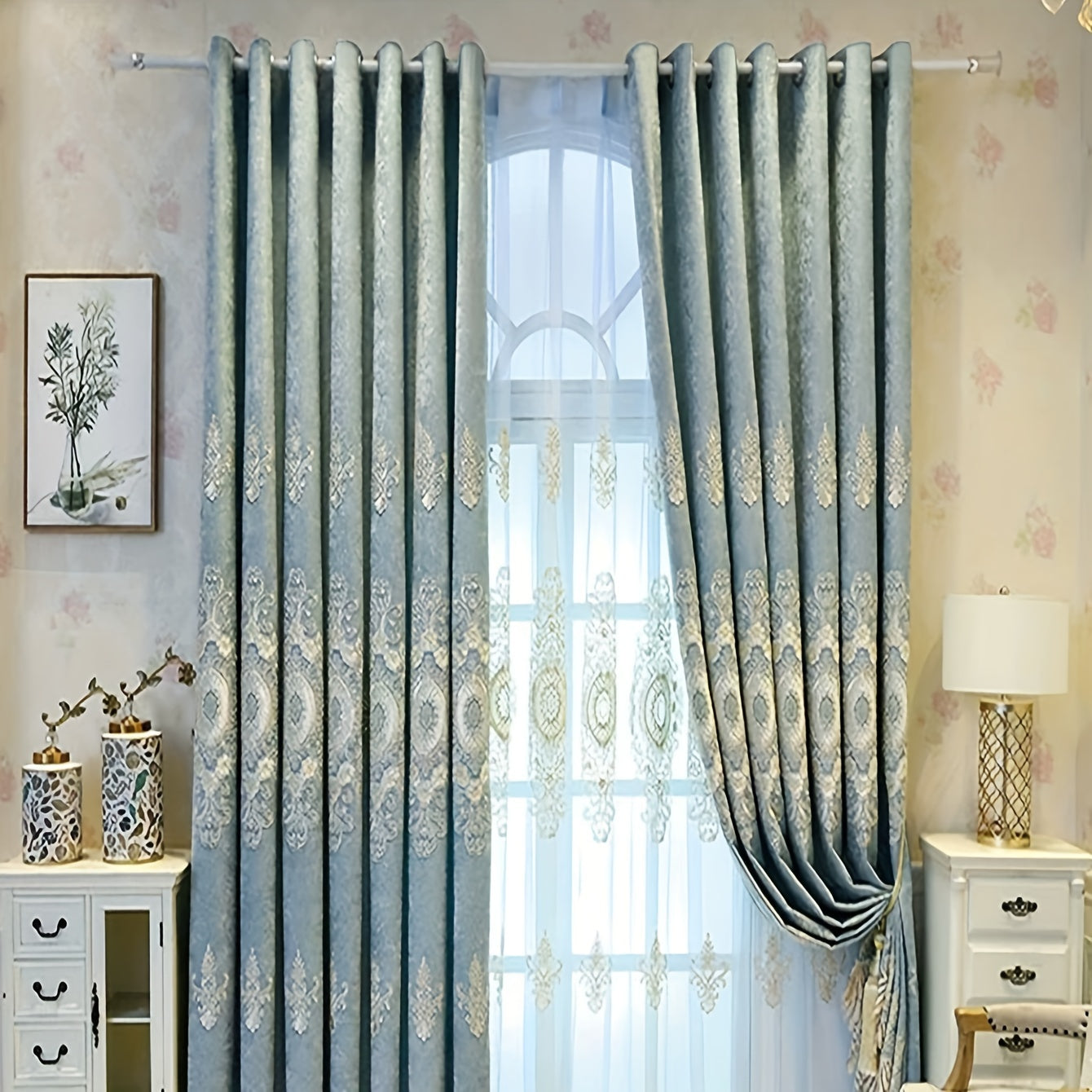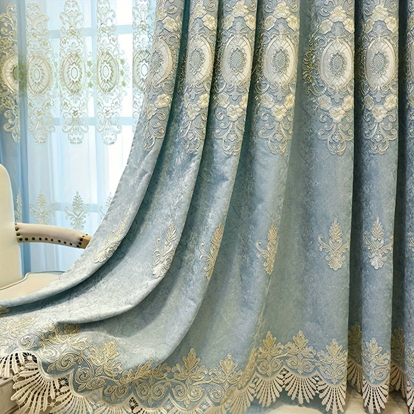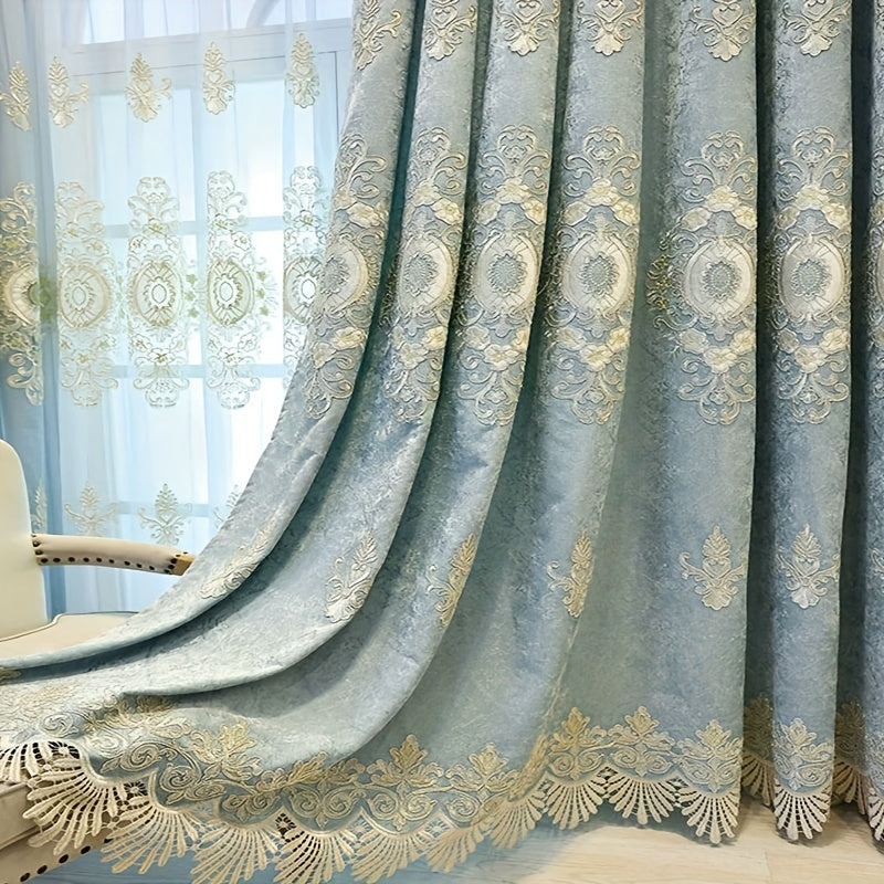 Luxury Thick Chenille Blackout Embroidered Curtains For Bedroom Living Room, Elegant Window Treatments Curtains, Curtains Perforated Processing