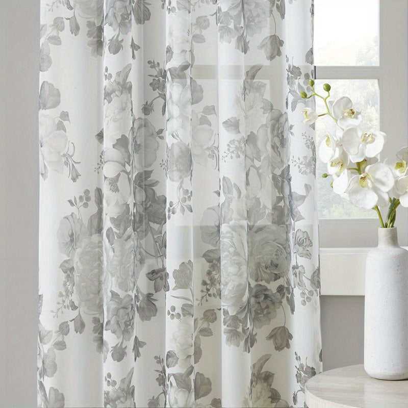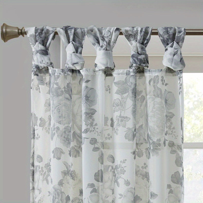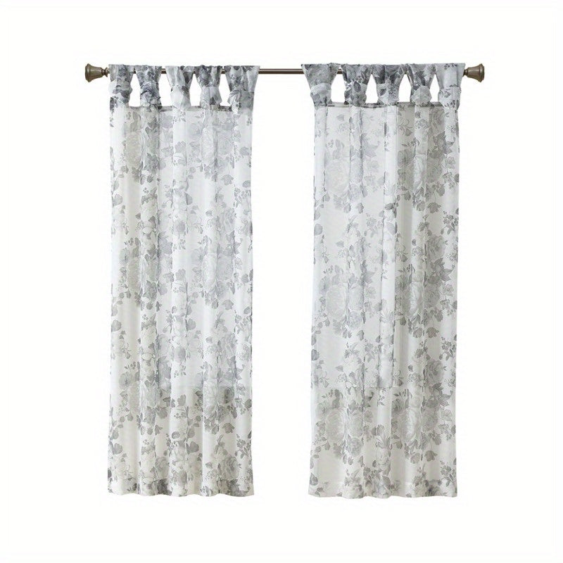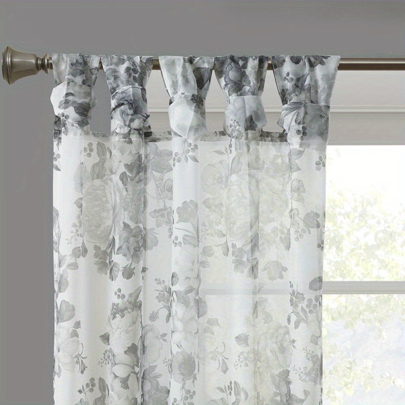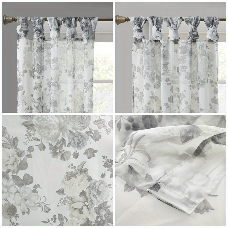 Printed Floral Twist Tab Top Voile Sheer Curtain (Only 1 Pc Panel)