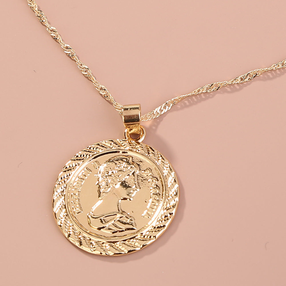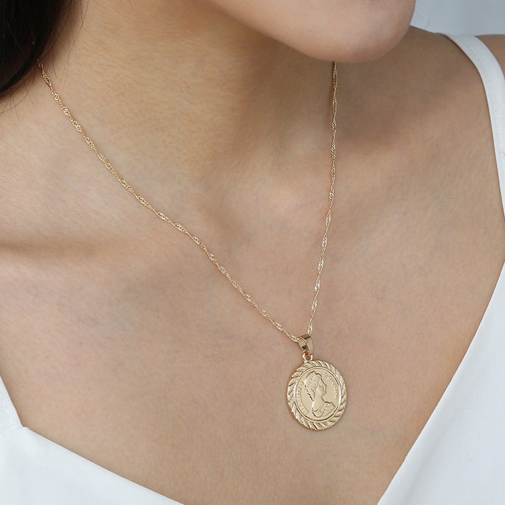 Round Coin Pendant Necklace Portrait Pendant Exquisite Necklace