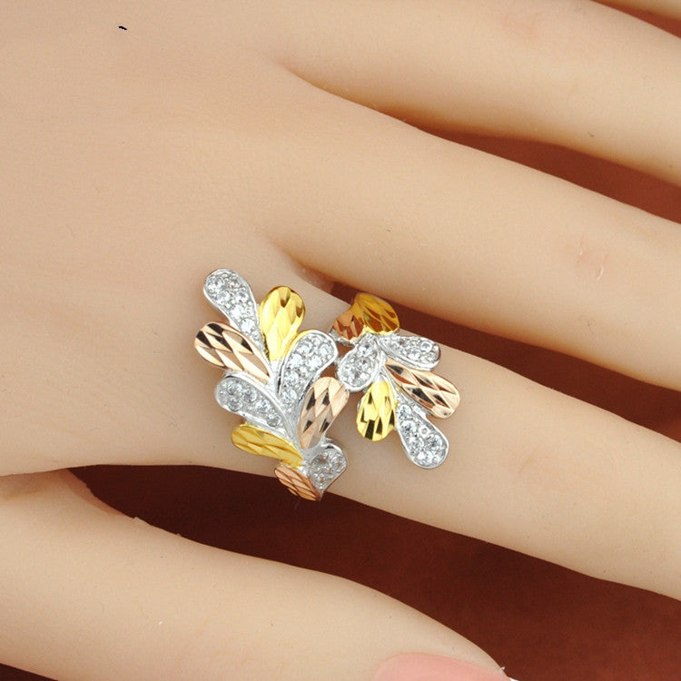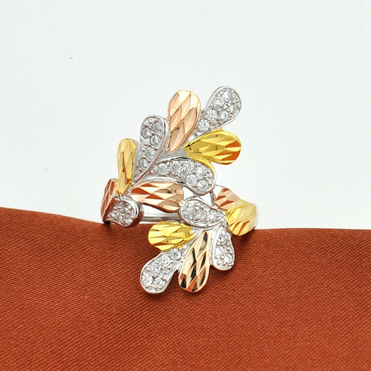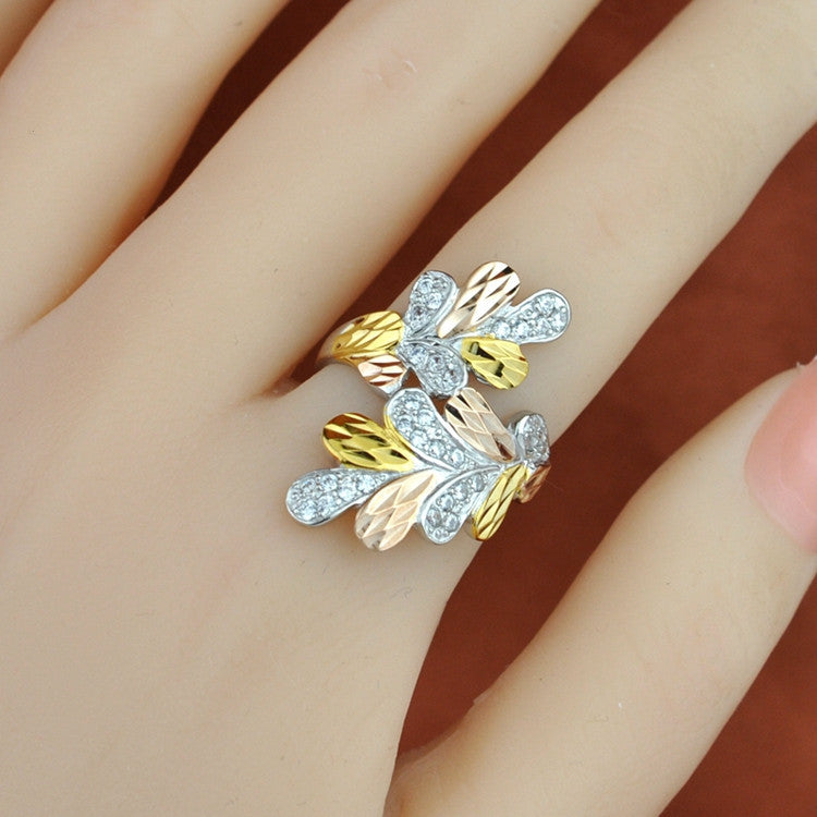 Sterling Silver Color Silver Ring Color Gold Ring Index Finger Leaf Ring