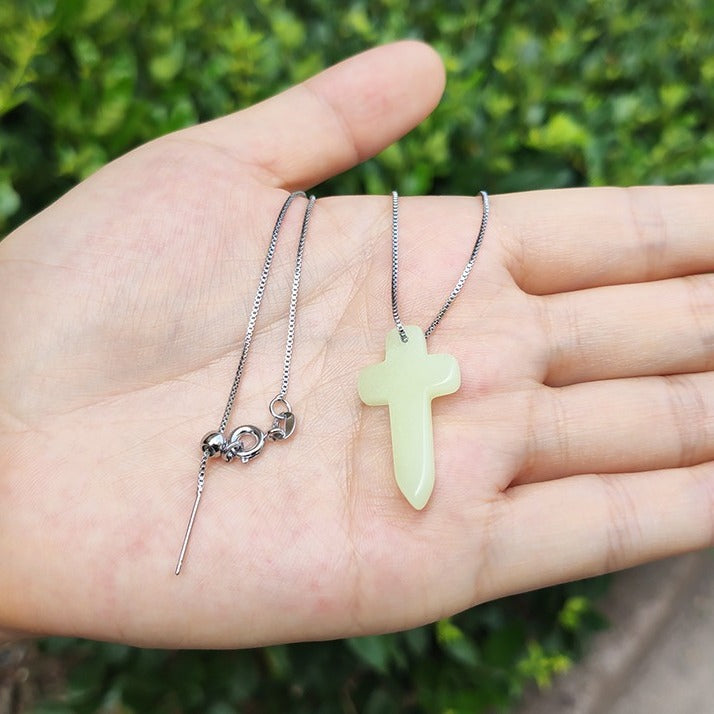 Wearable Beads Chain Needle Cross Copper Silver Plated Necklace